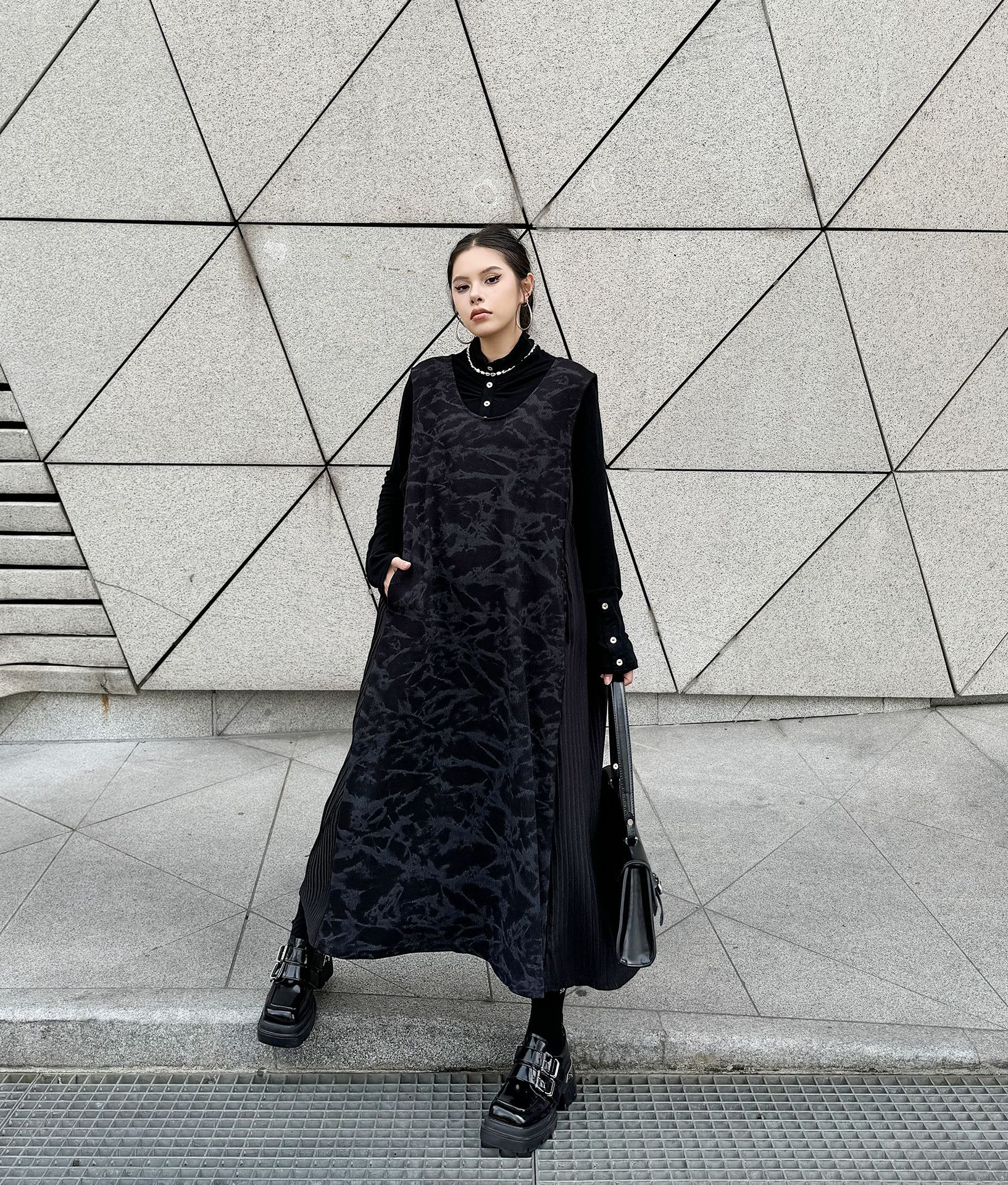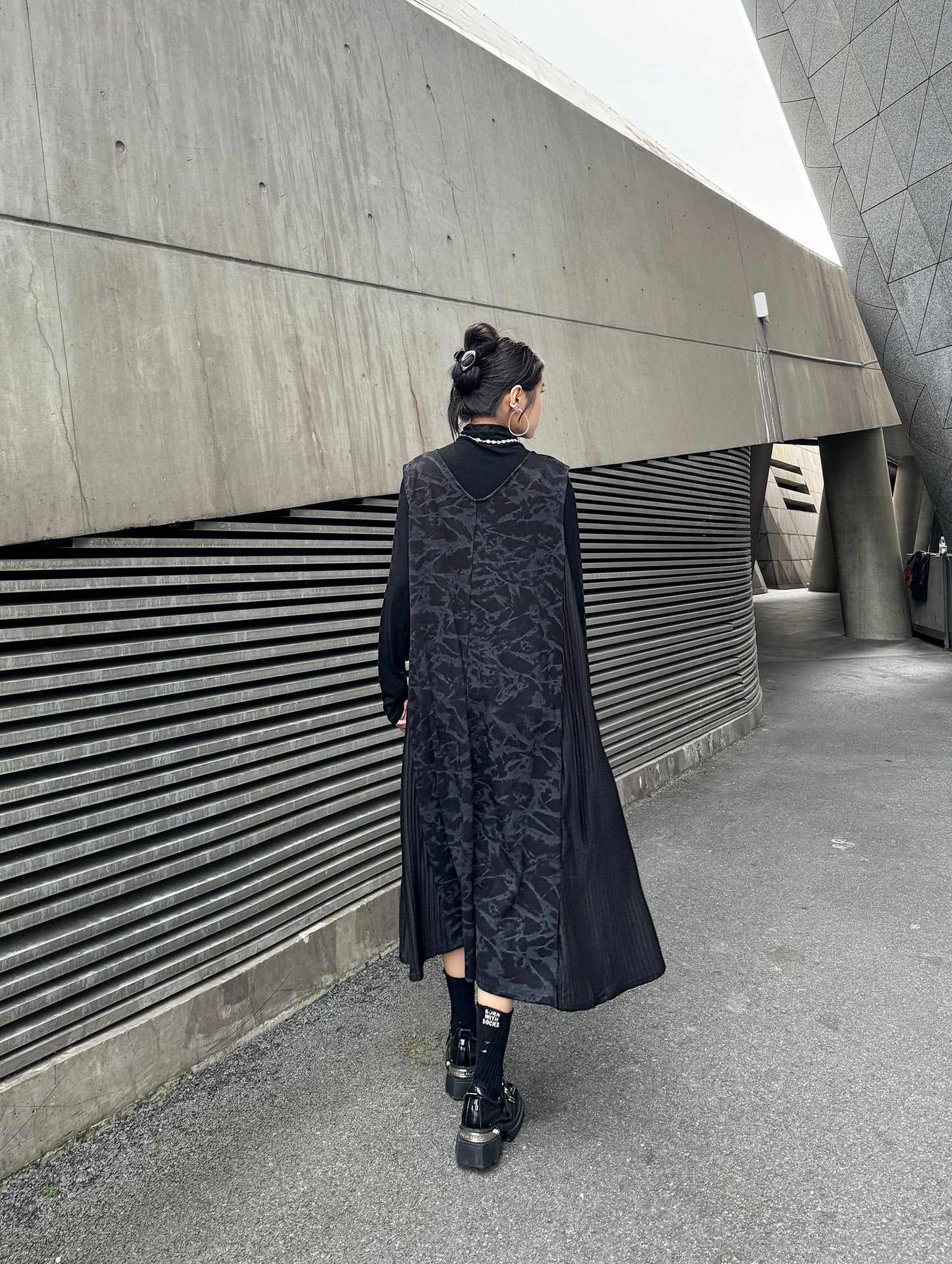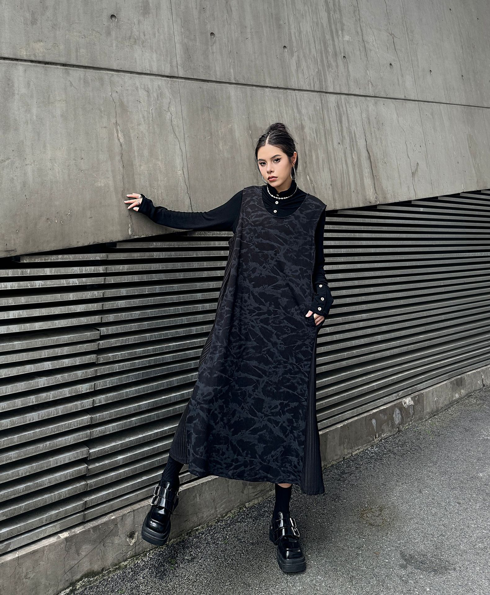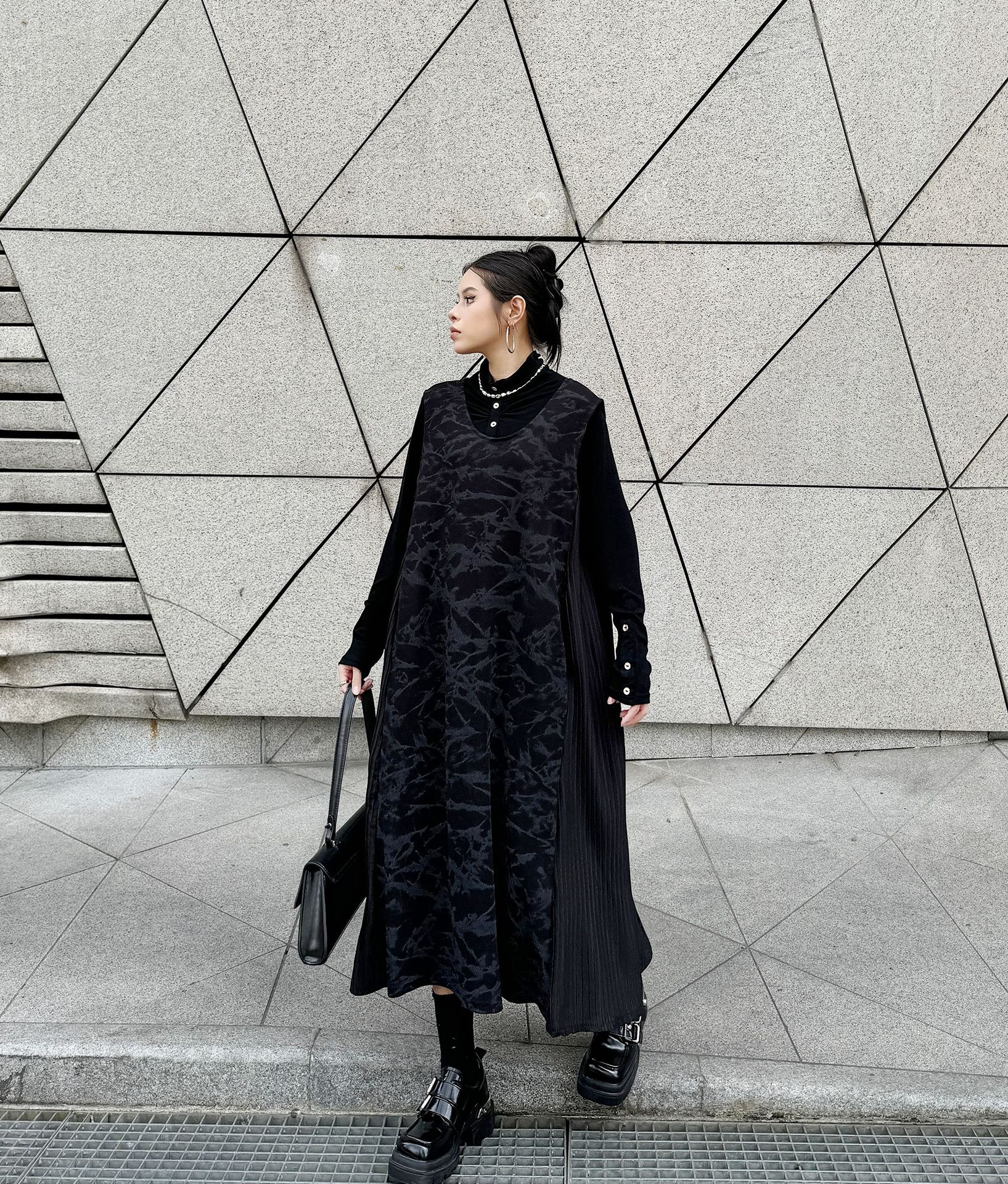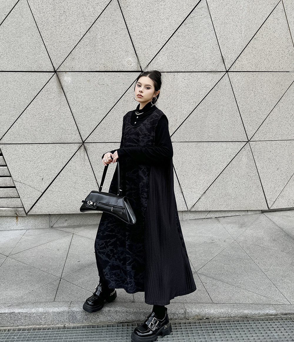 【ワンピース】春秋 プリーツノースリーブ V ネック ドレス 着痩せ ワンピース【AHシリーズ】