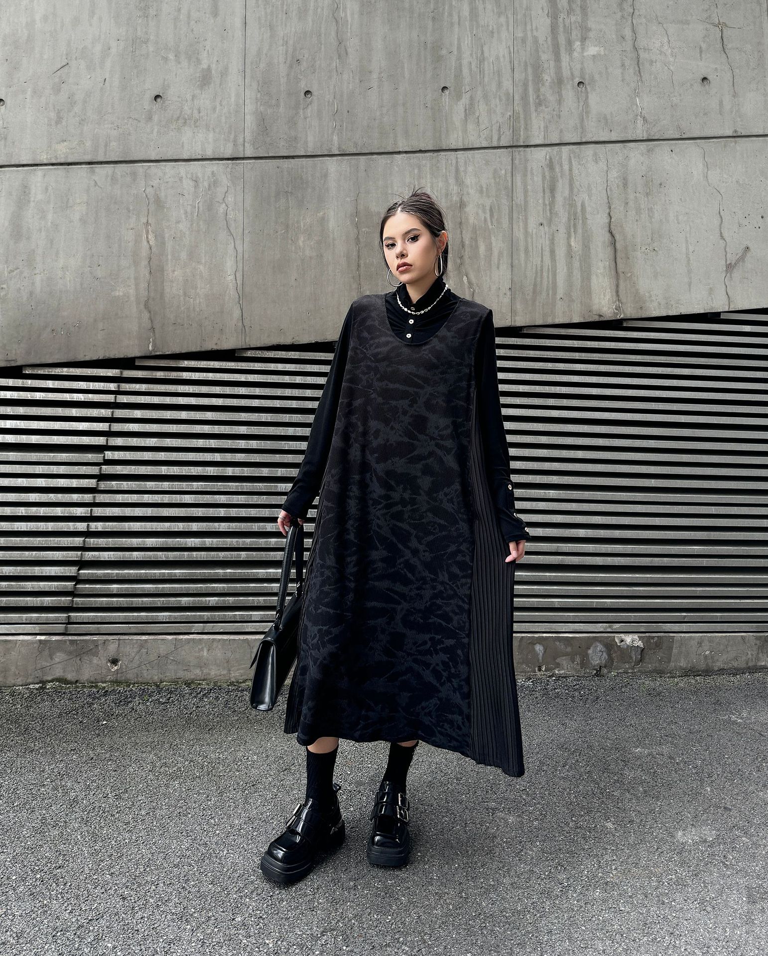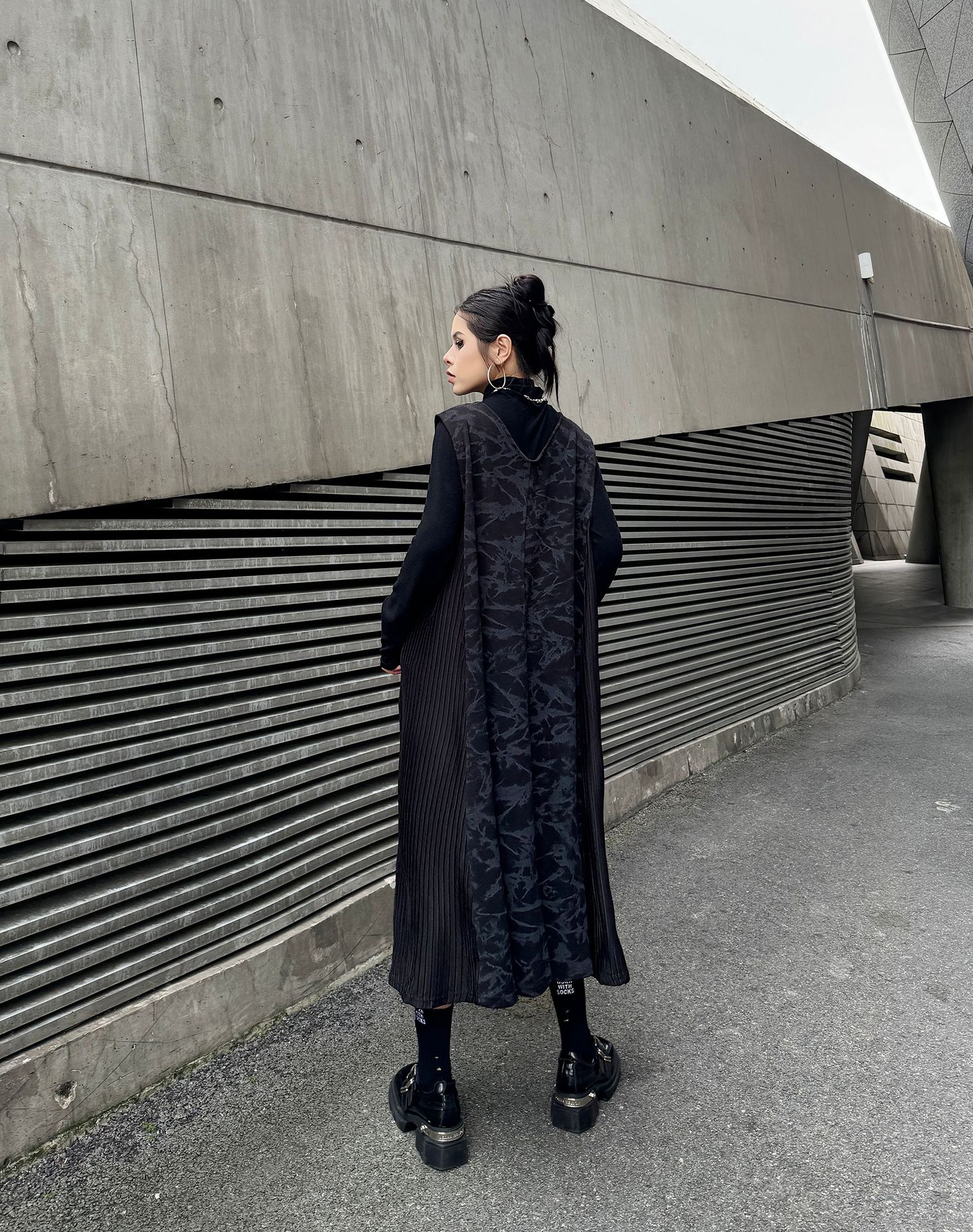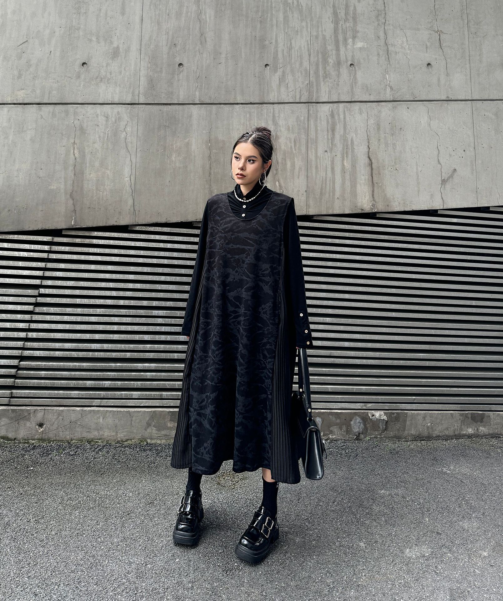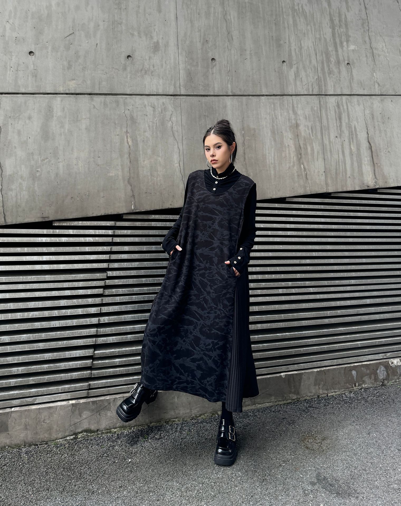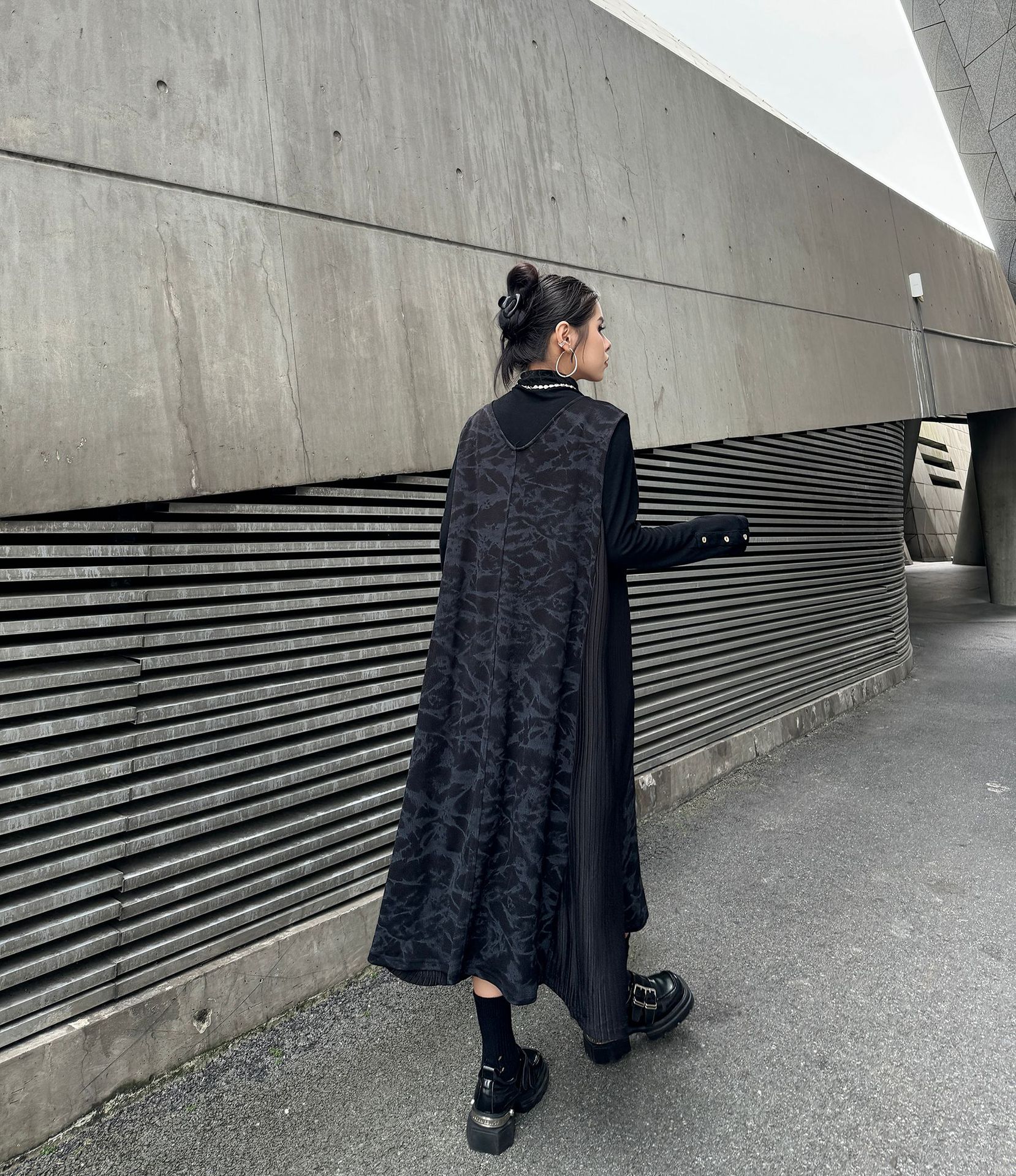 【ワンピース】春秋 プリーツノースリーブ V ネック ドレス 着痩せ ワンピース【AHシリーズ】