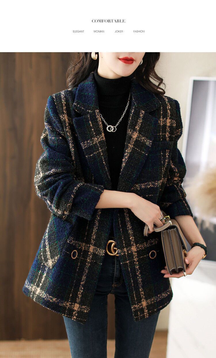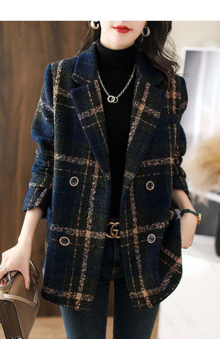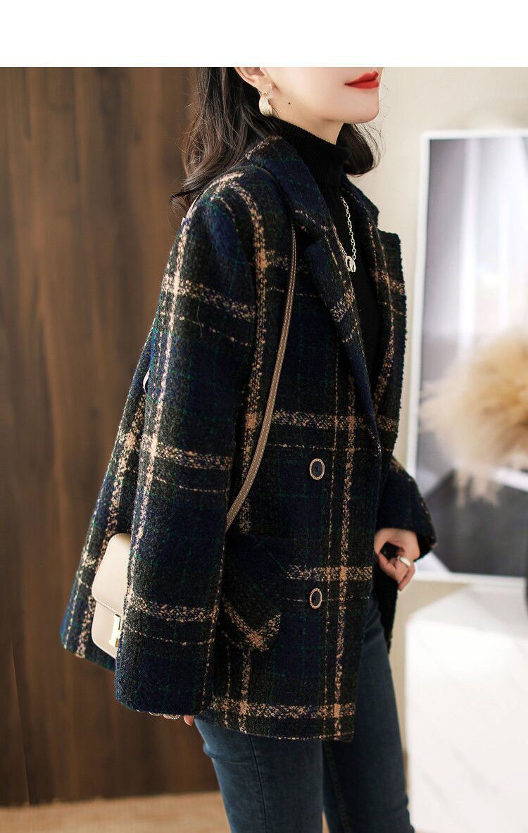【アウター】秋冬 レトロ チェック柄 厚手 スーツジャケット