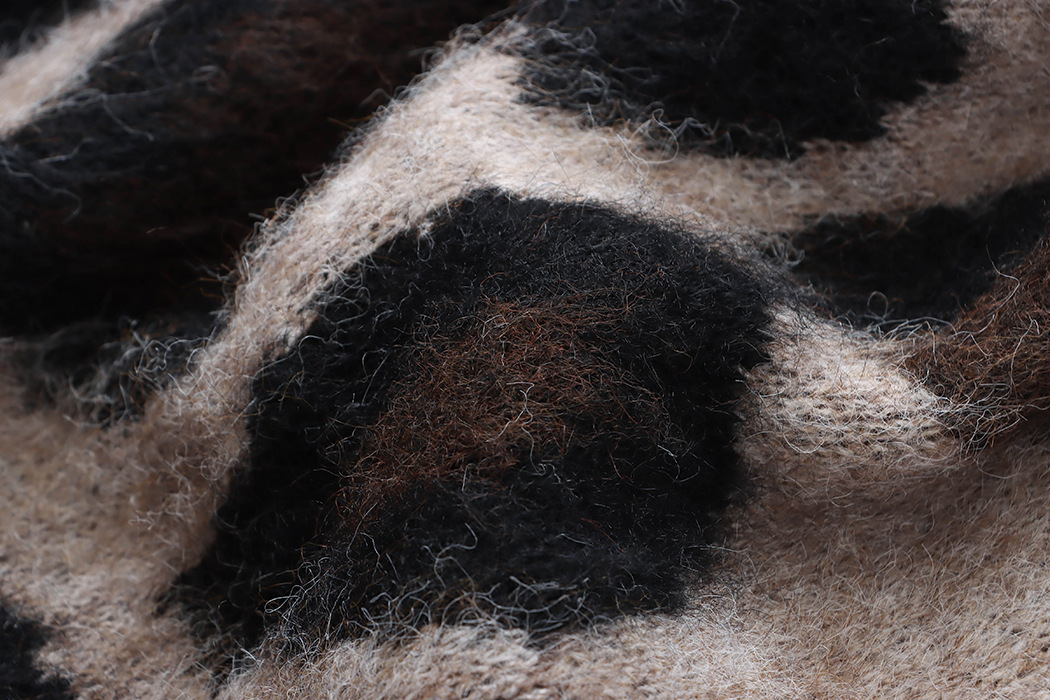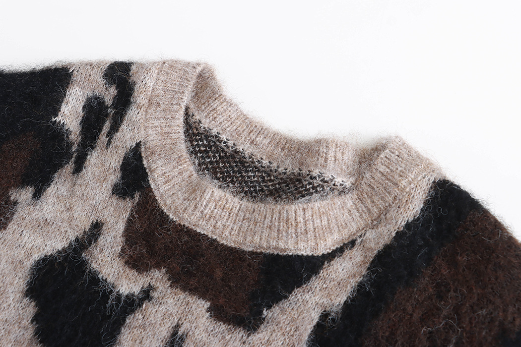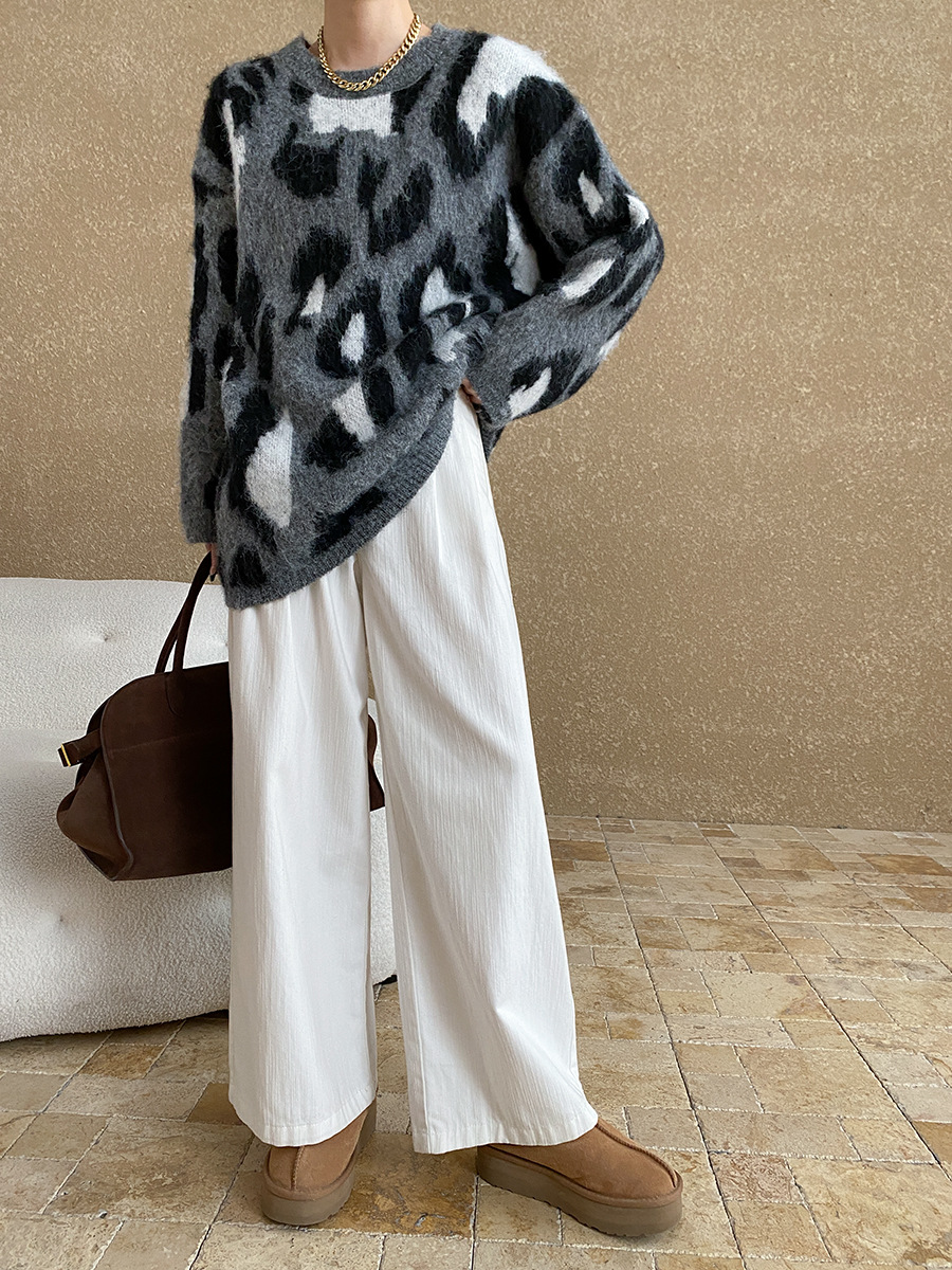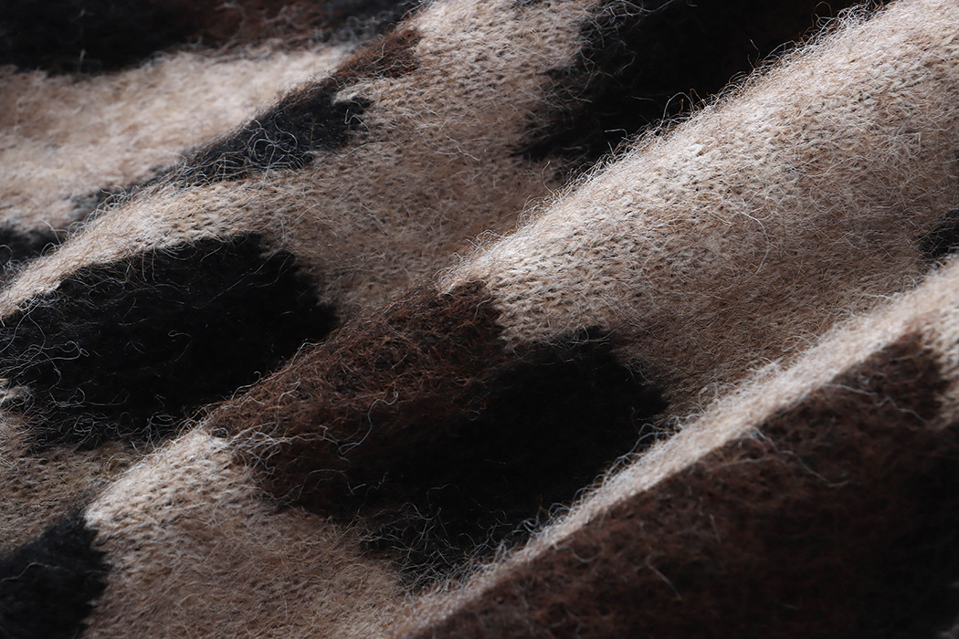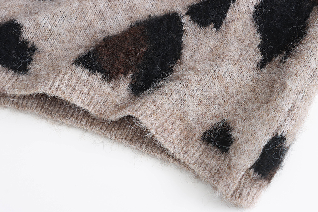 【トップス】レトロ 豹柄 猫 ゆったり ラウンドネック ニットセーター【FCシリーズ】
