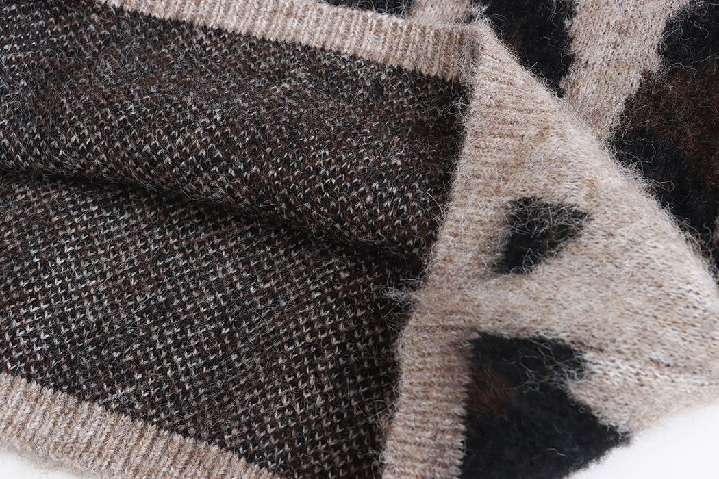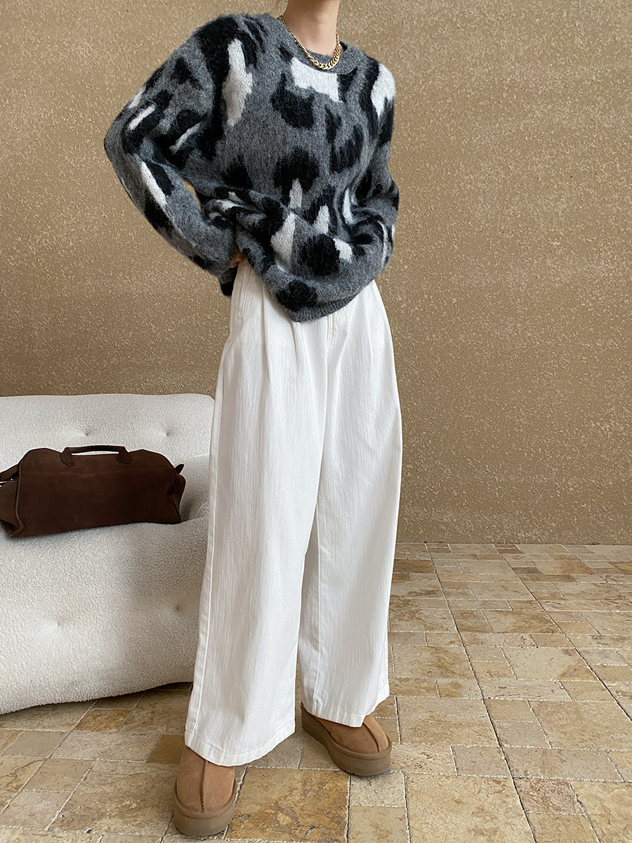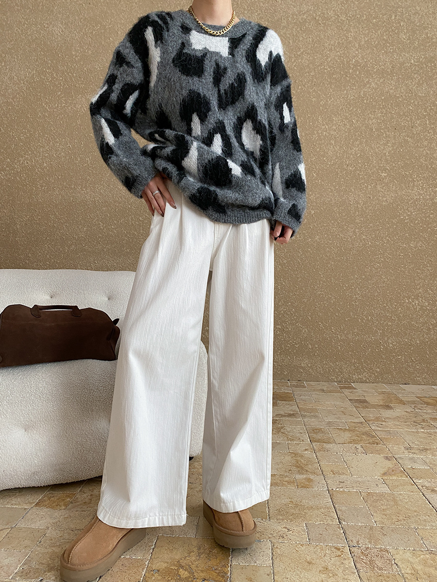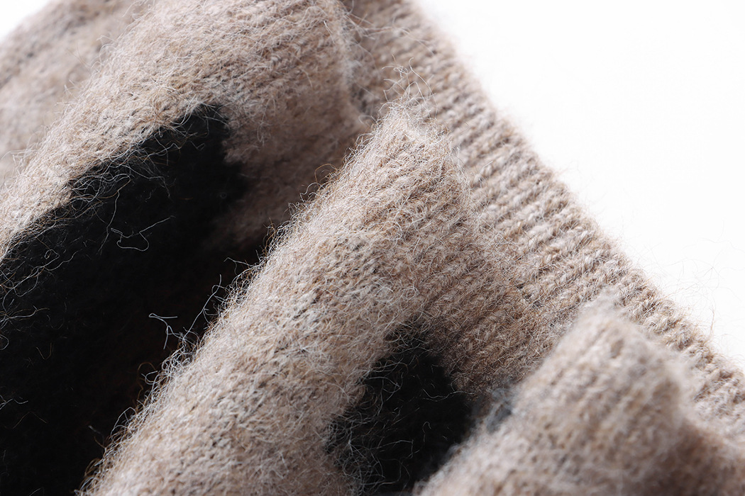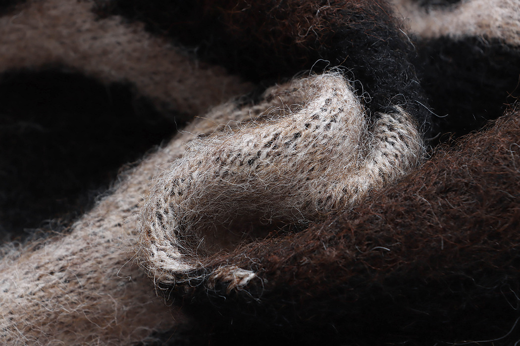 【トップス】レトロ 豹柄 猫 ゆったり ラウンドネック ニットセーター【FCシリーズ】