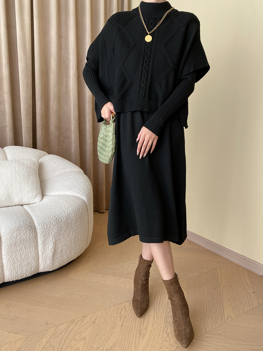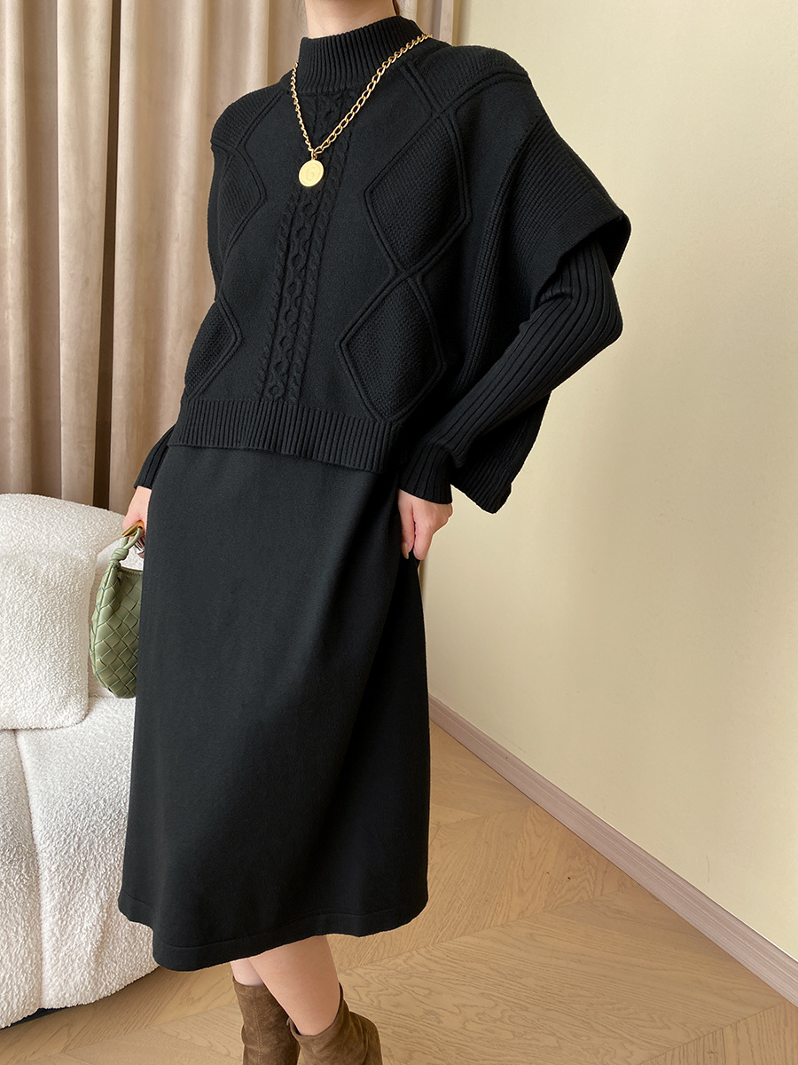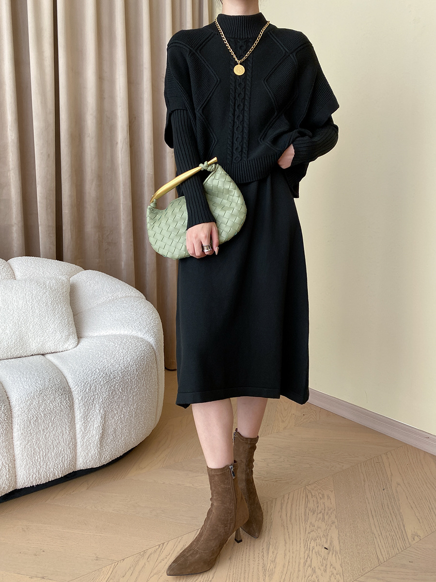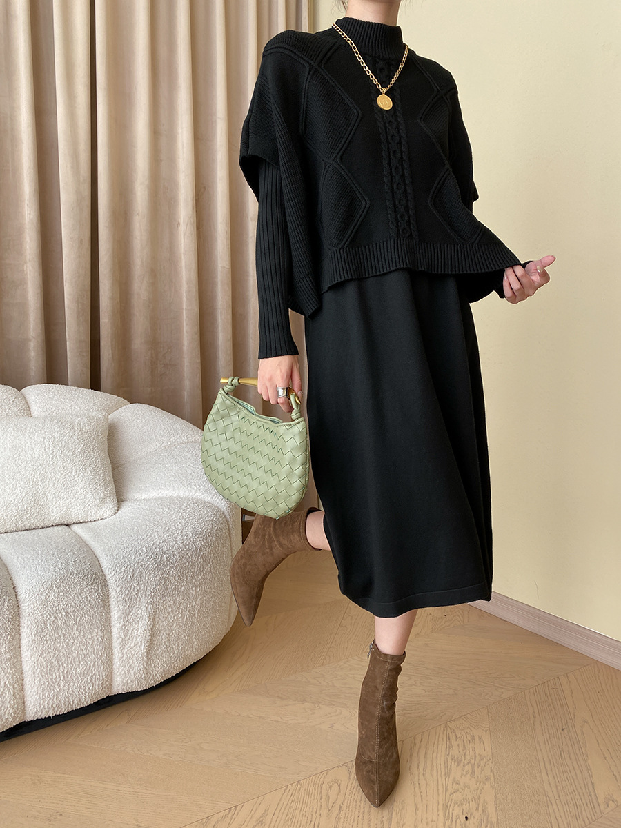 【セットアップ】春秋冬 モードな雰囲気を纏う 合わせやすい 長袖ワンピースセット