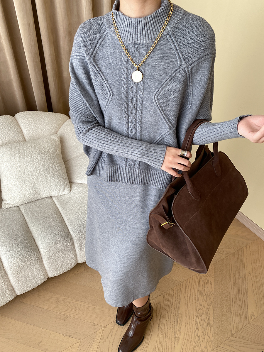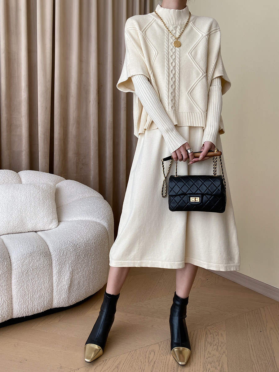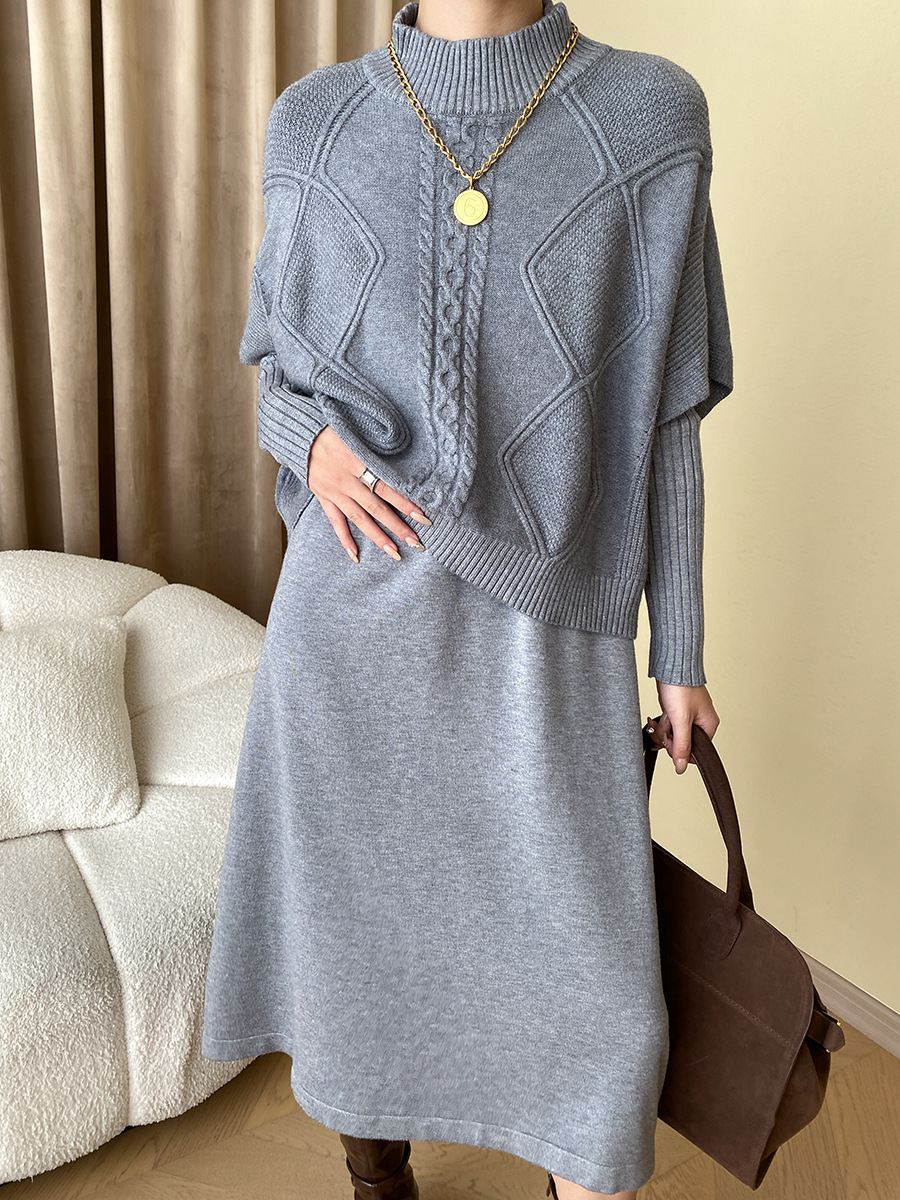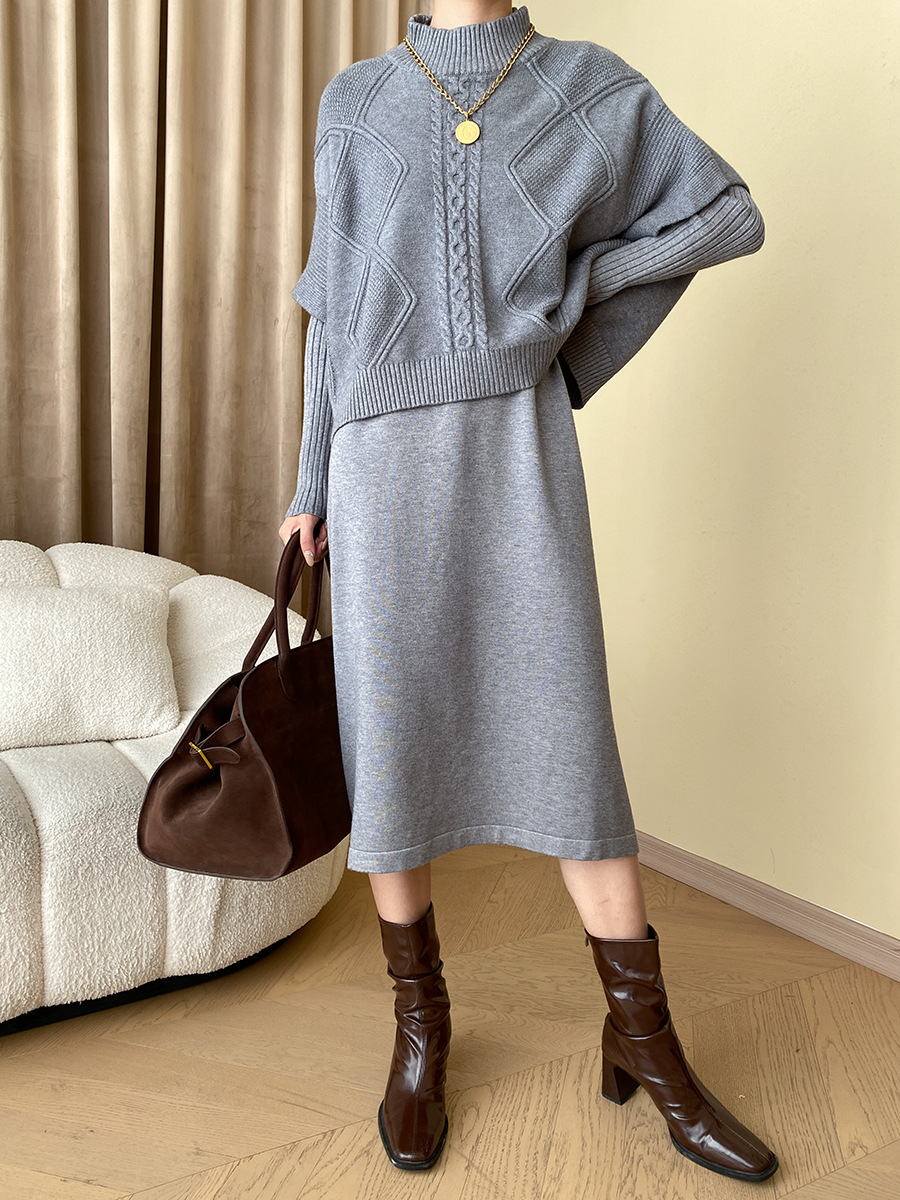 【セットアップ】春秋冬 モードな雰囲気を纏う 合わせやすい 長袖ワンピースセット