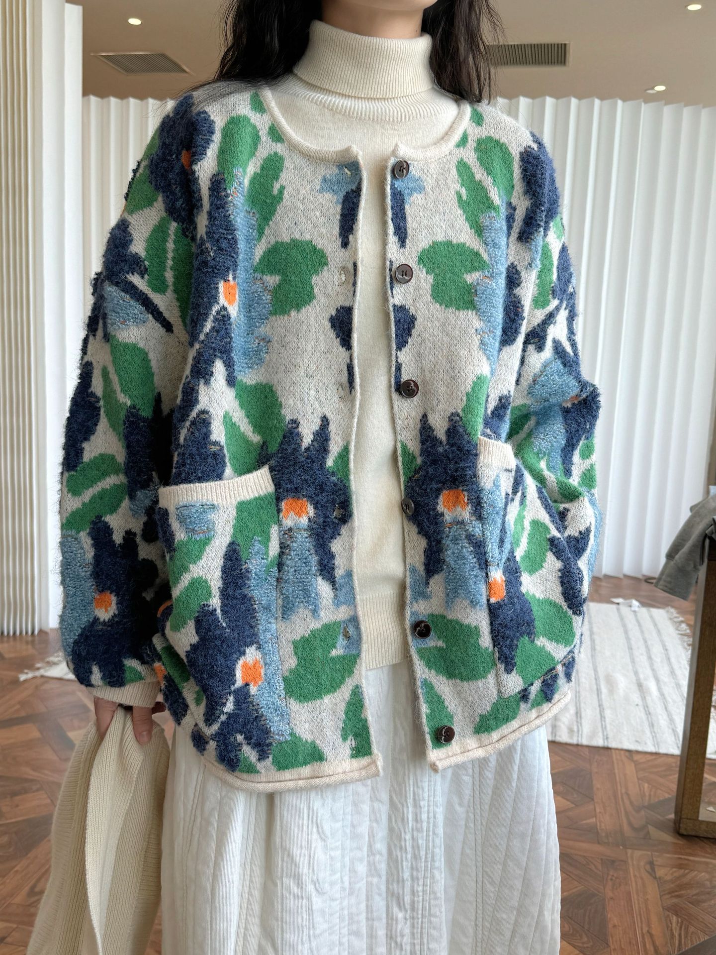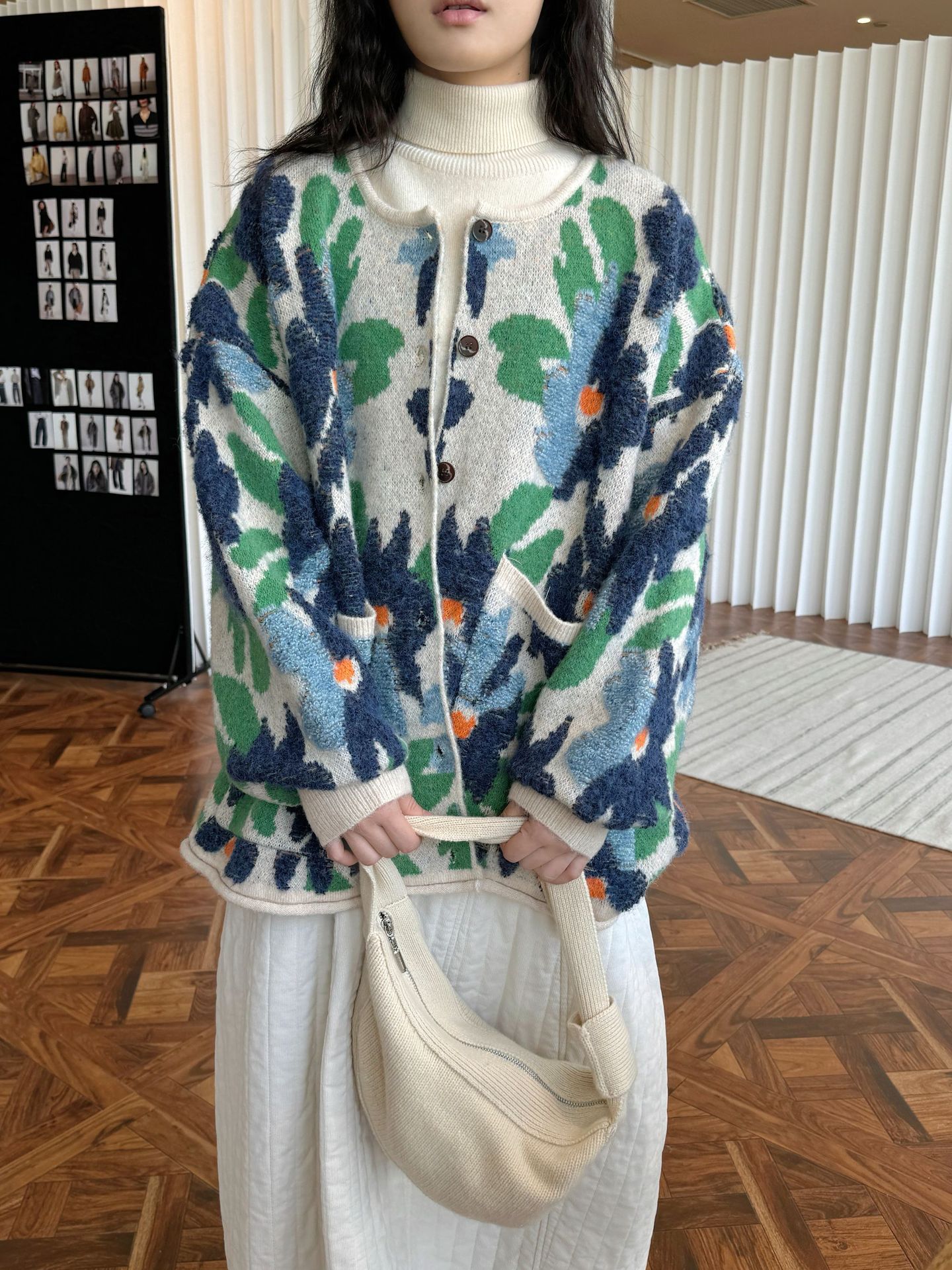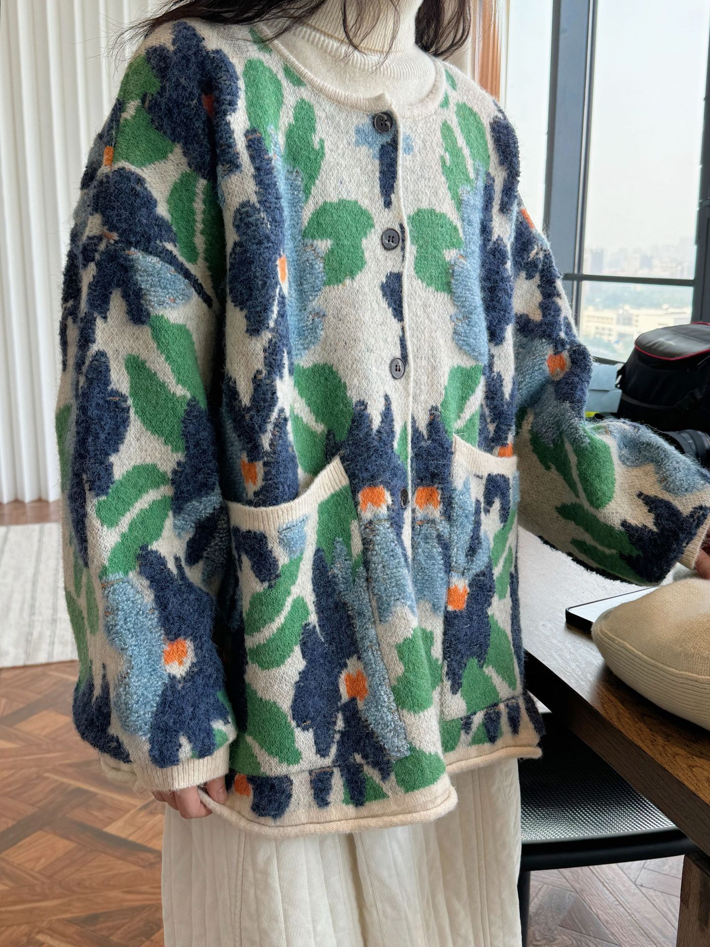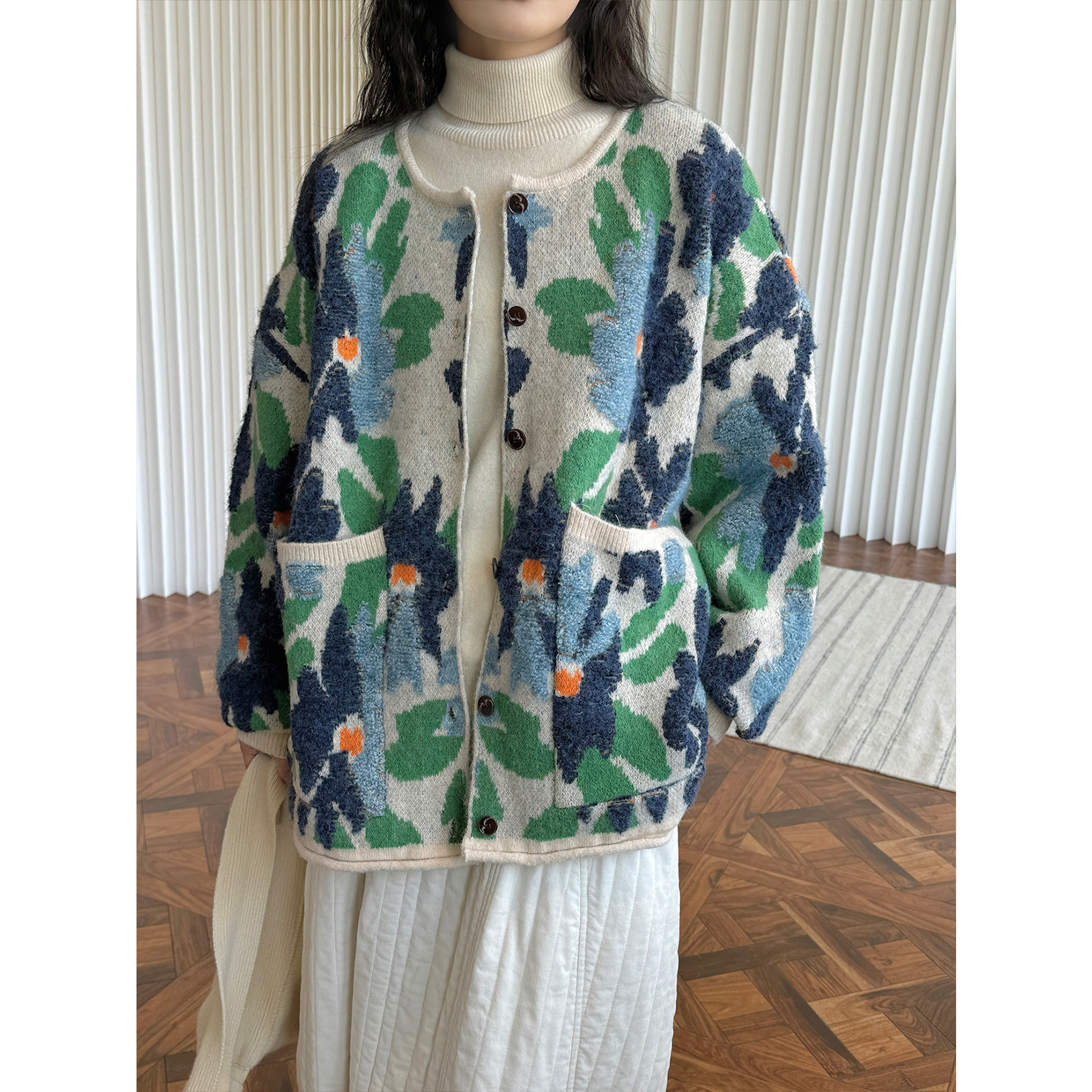 【アウター】日系 レトロ 若見え 着痩せ 春秋 花柄 ウール カーディガン【SNシリーズ】