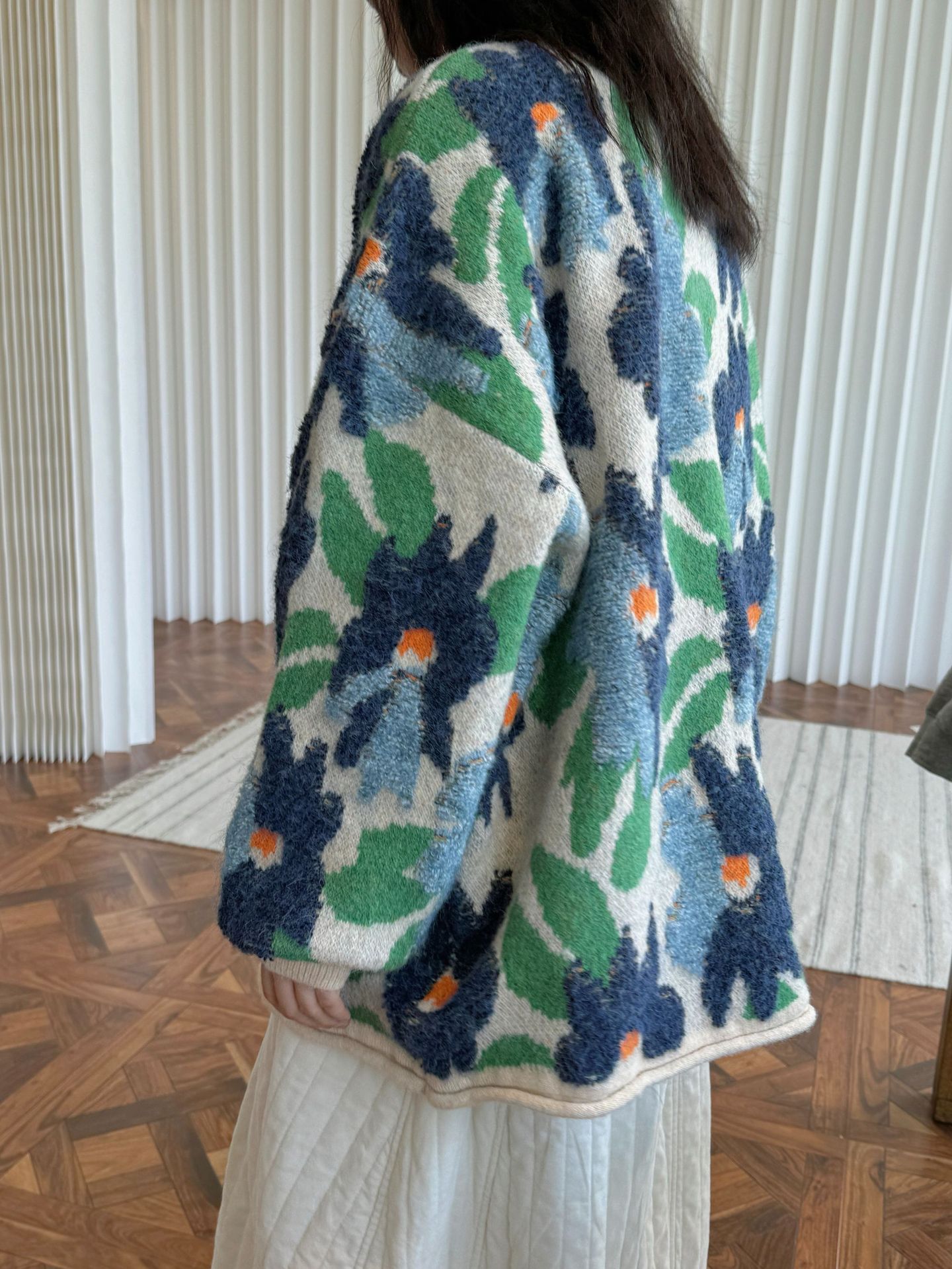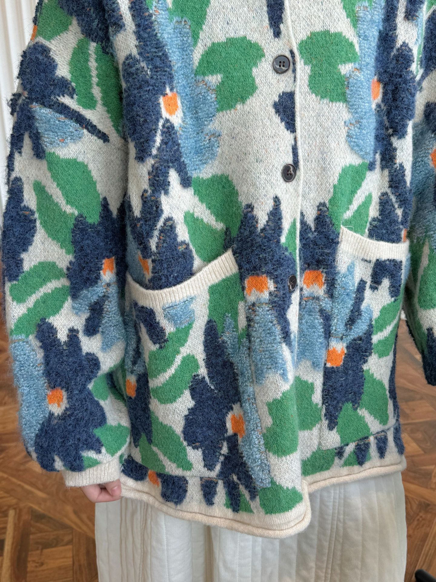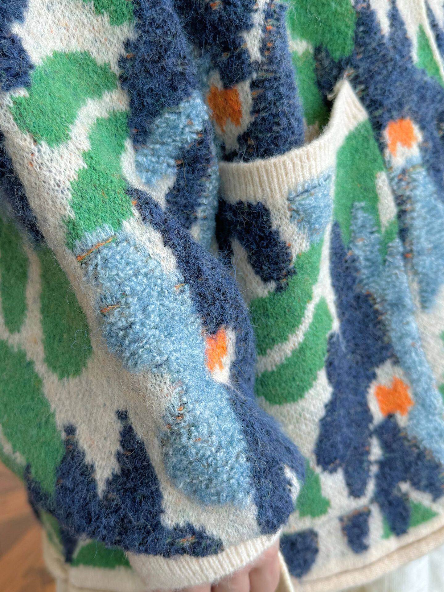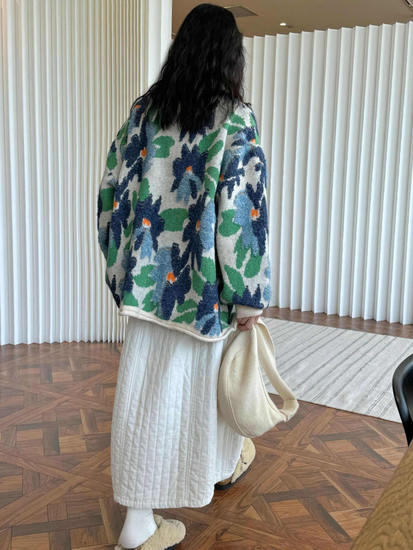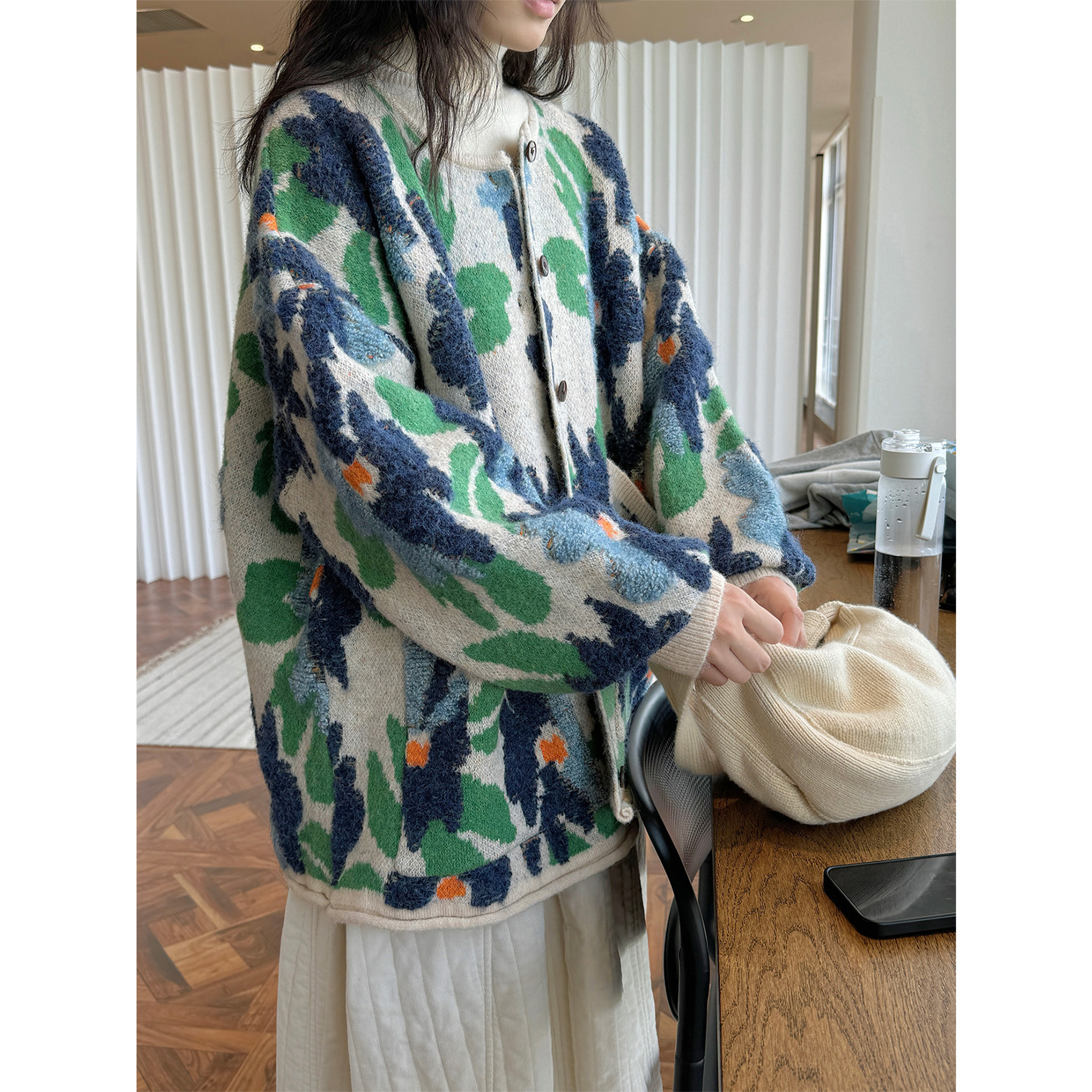 【アウター】日系 レトロ 若見え 着痩せ 春秋 花柄 ウール カーディガン【SNシリーズ】