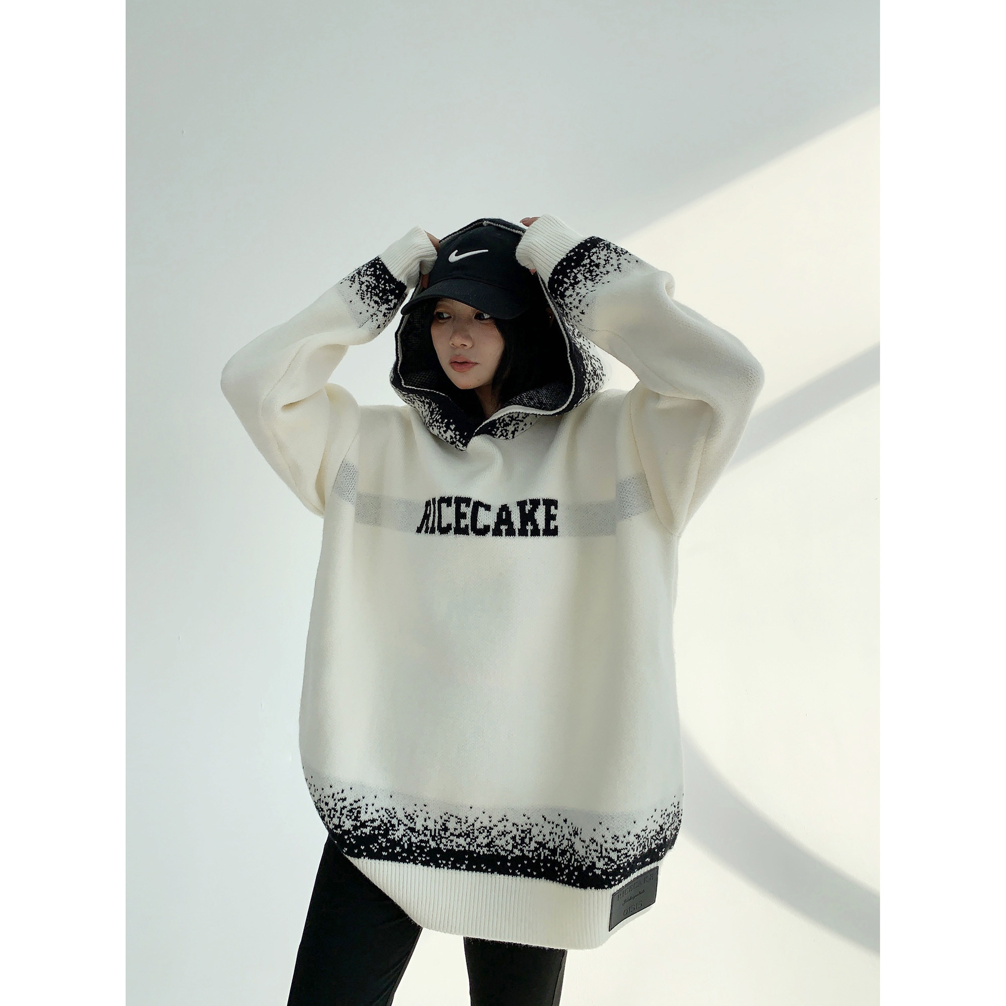 【トップス】アメリカンレトロ 猫柄ジャカード クルーネック ニット レディース 秋 ゆったり ルーズ シンプル 着回し セーター【FCシリーズ】