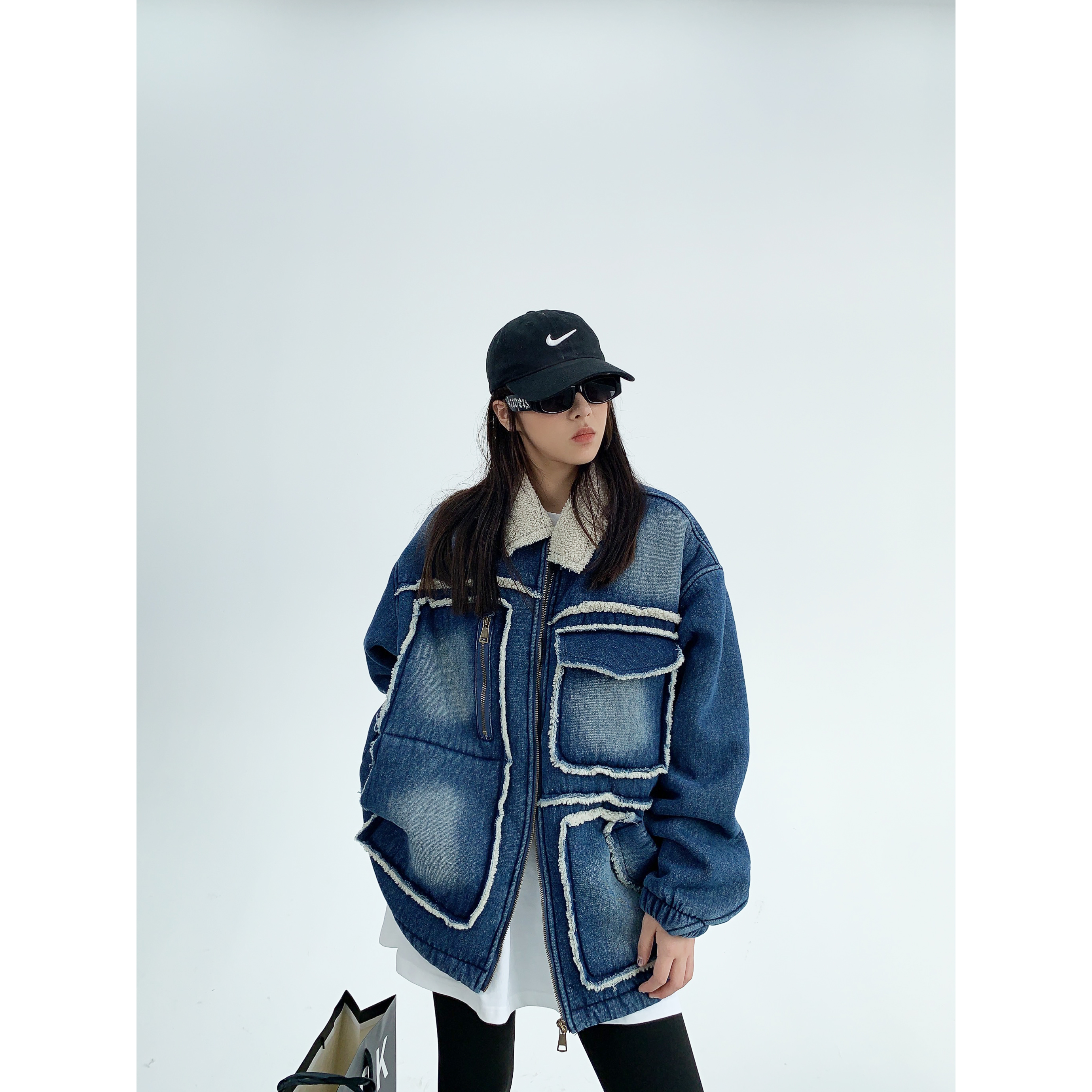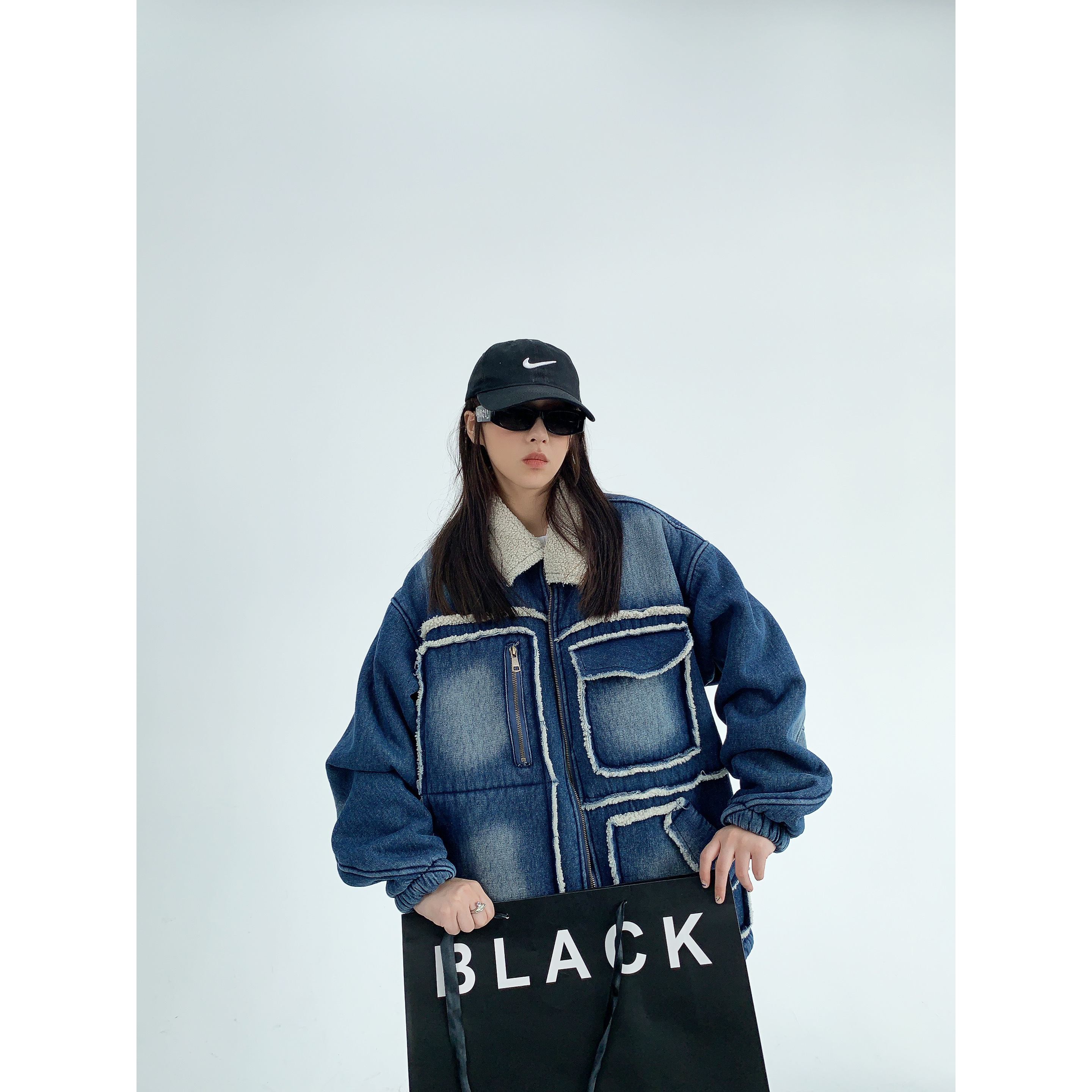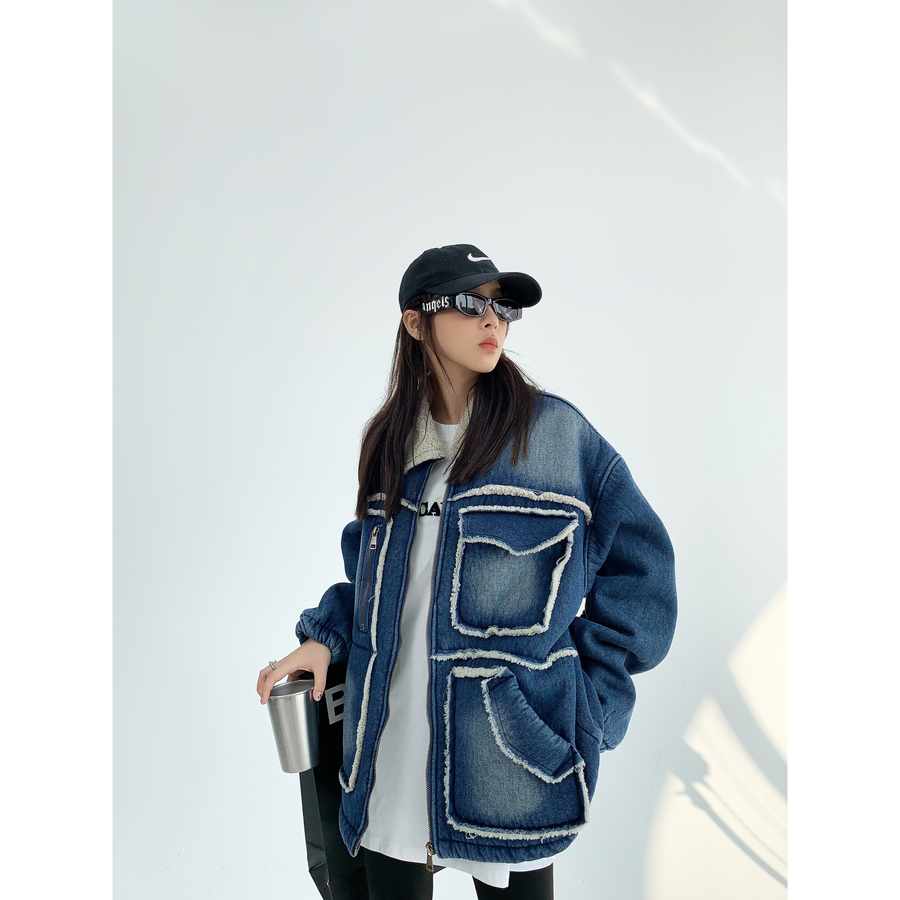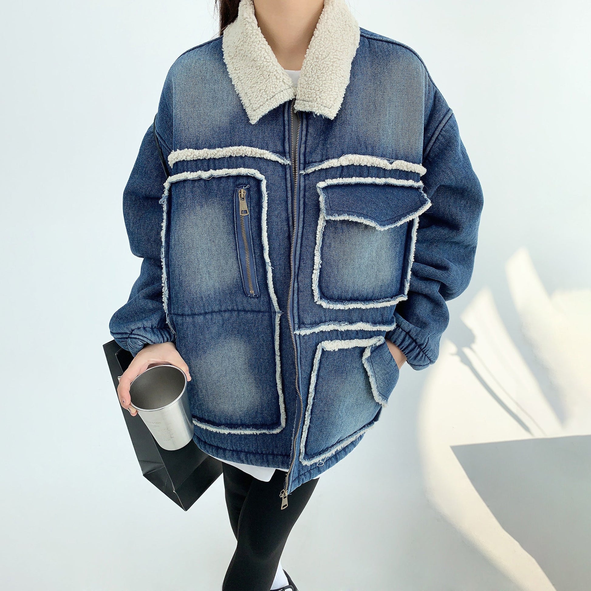 【商品名】【アウター】アメリカ カップル服 ゆったり レトロ ダメージデニム ラムウール ジャケット