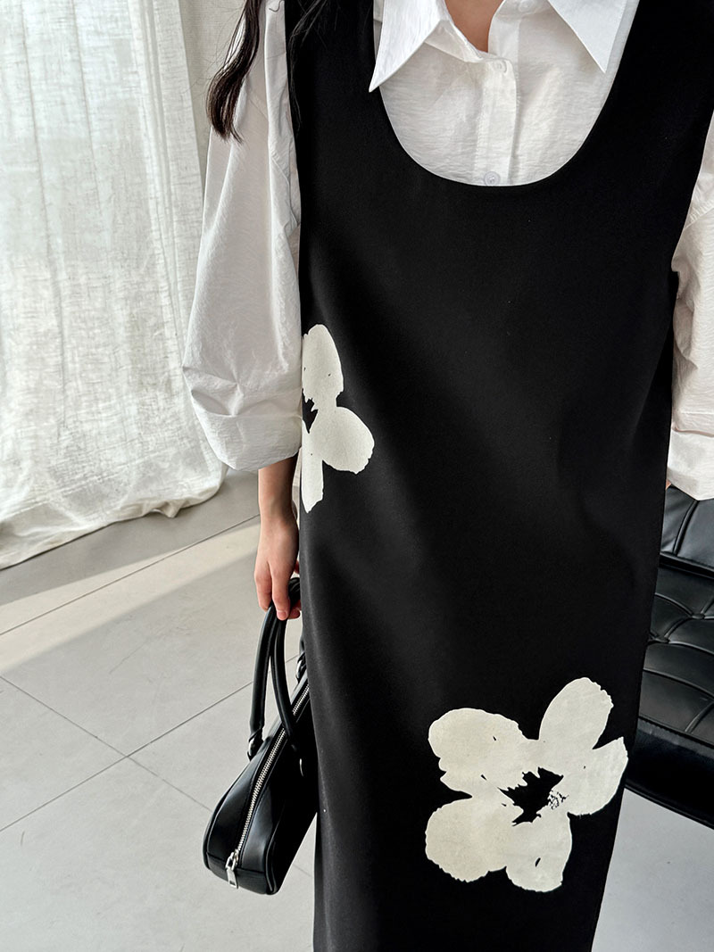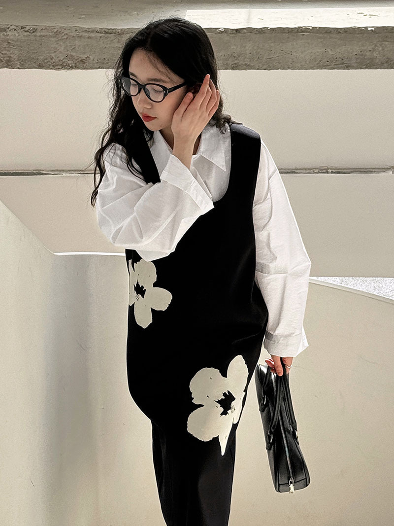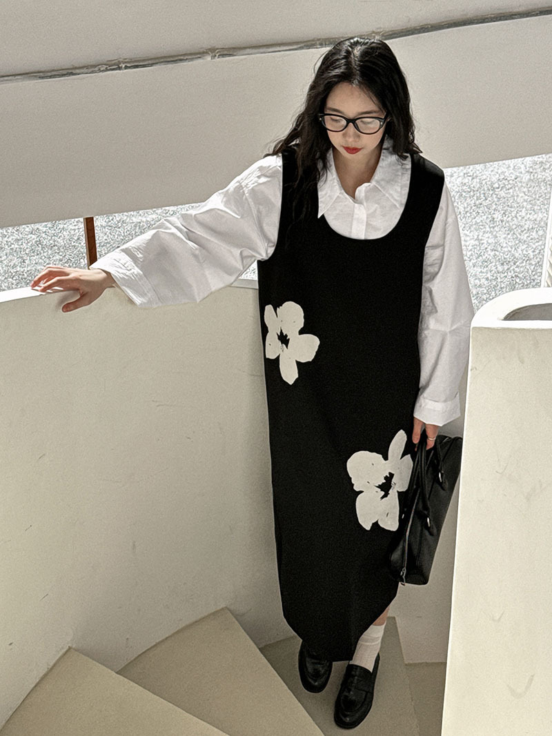 【ワンピース】春秋冬 気質よい ゆったり プリント 合わせやすい ノースリーブワンピース【SNシリーズ】