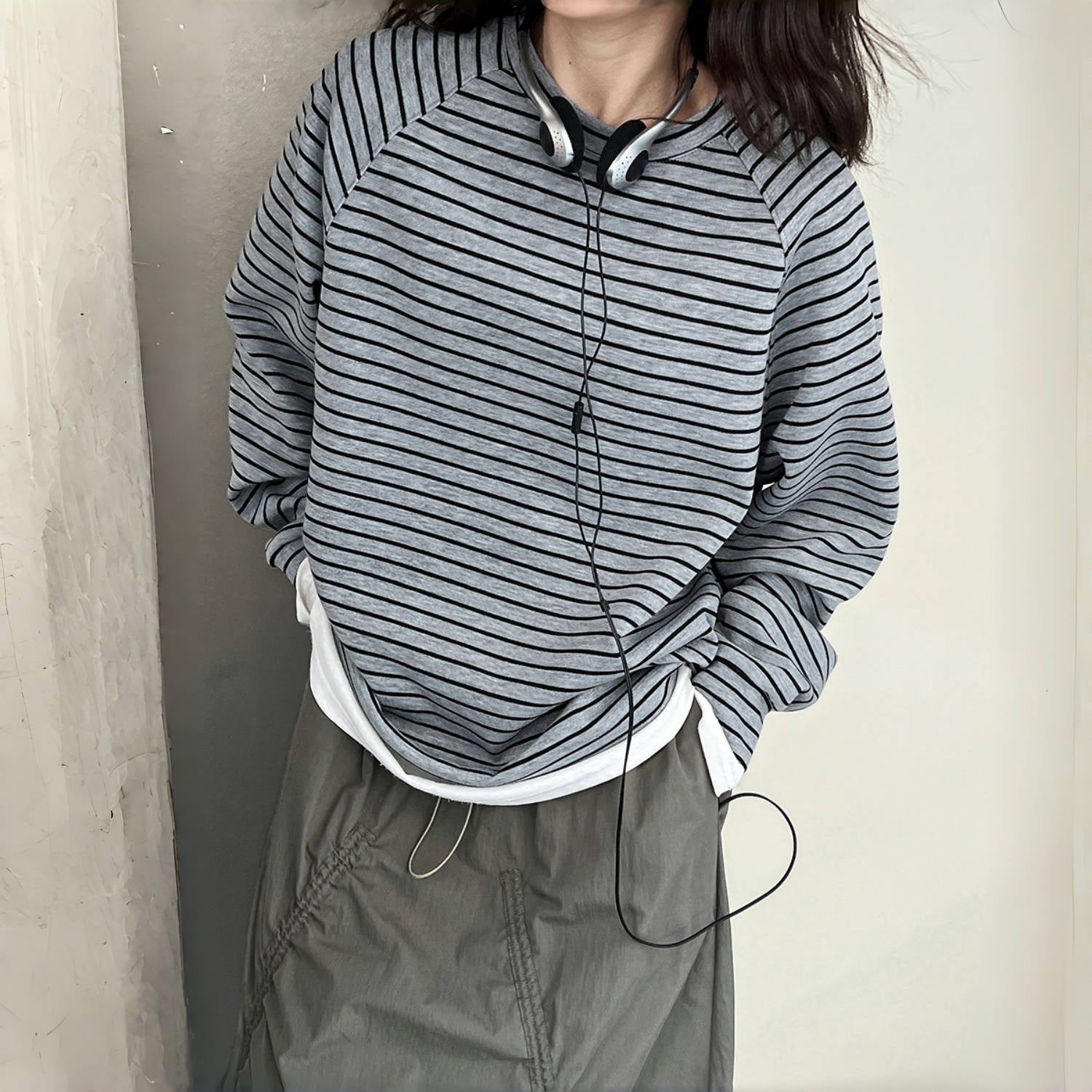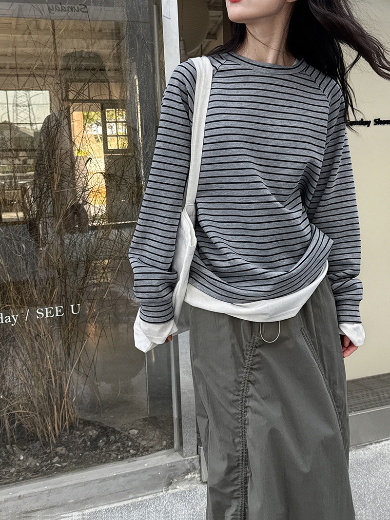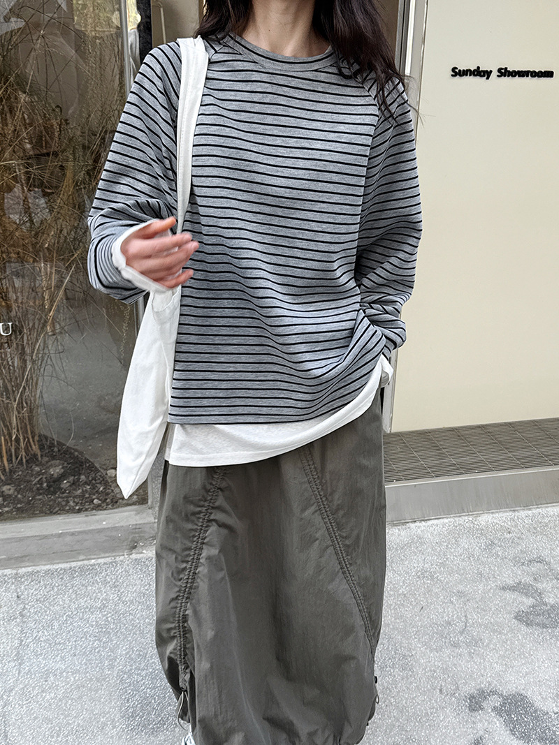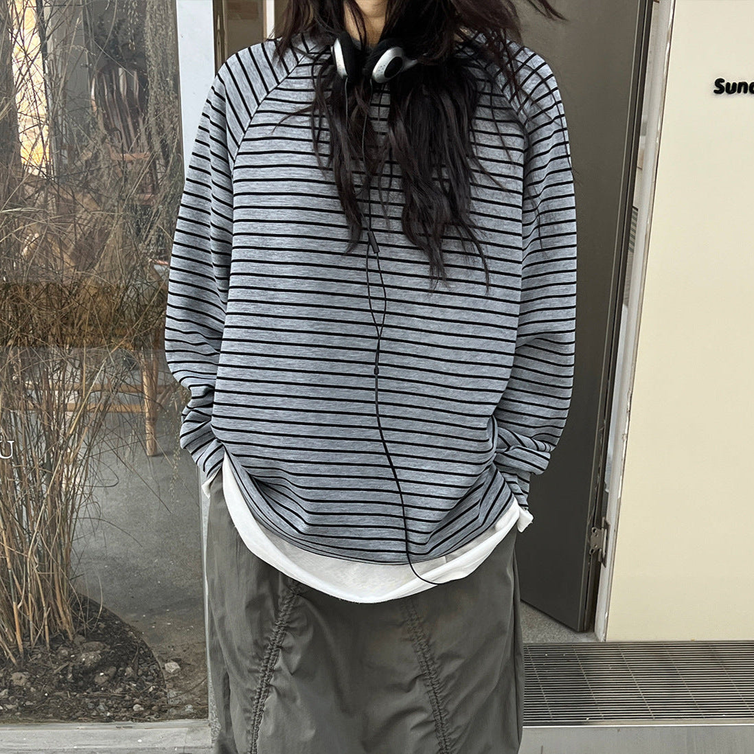 【トップス】春秋 韓国風 高級感 配色 しま模様 パーカー【SNシリーズ】
