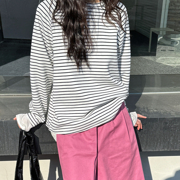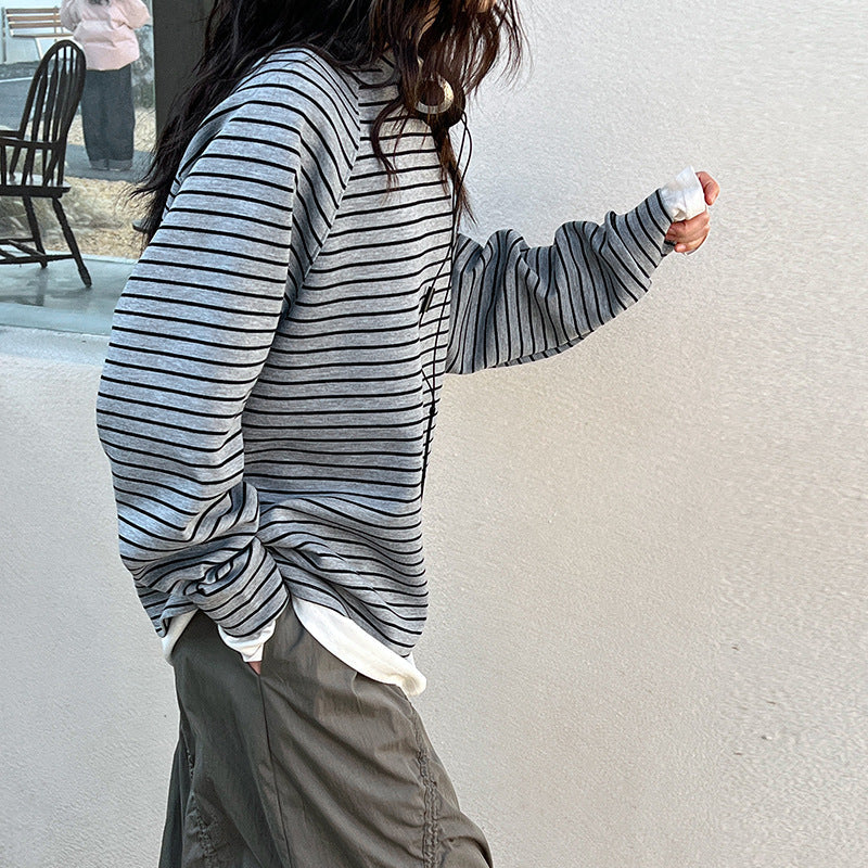 【商品名】【トップス】韓国風 高級感 配色 しま模様 パーカー