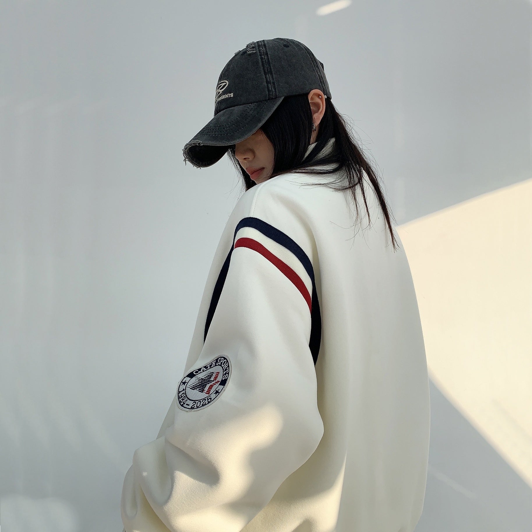 【トップス】💖カップルでも着られる!ワイドフーディ 裏起毛 重工パッチ&刺繍 レディース 冬新作【FCシリーズ】