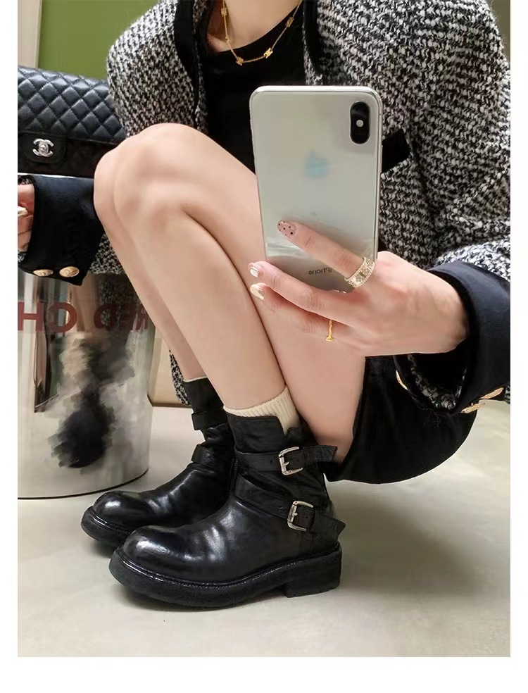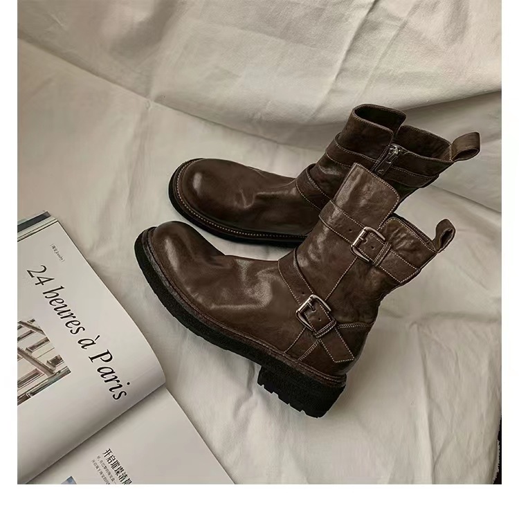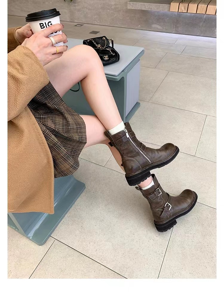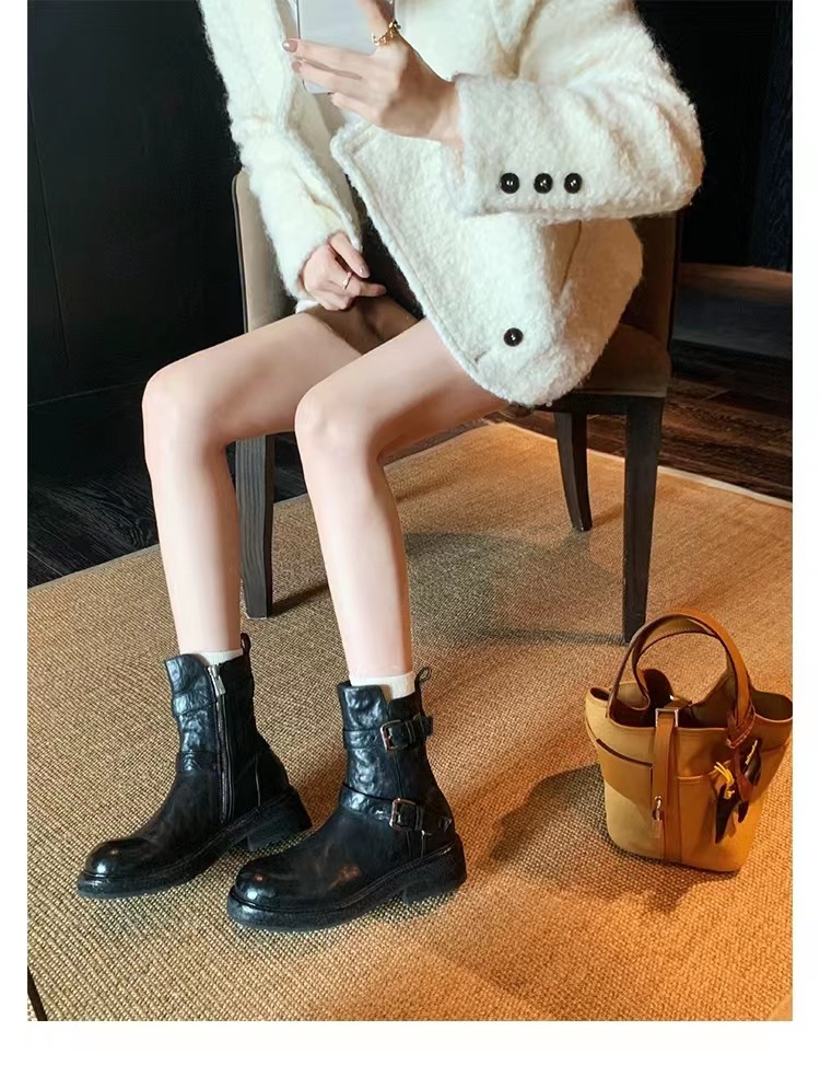 【シューズ】春秋冬 レトロ ヴィンテージ加工 ブーツ シューズ