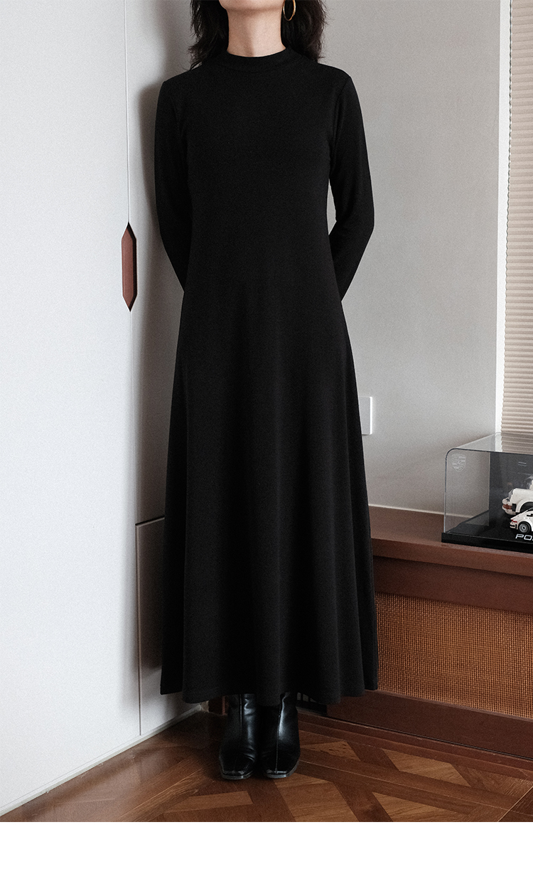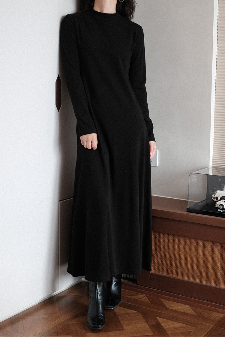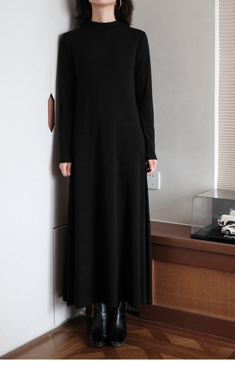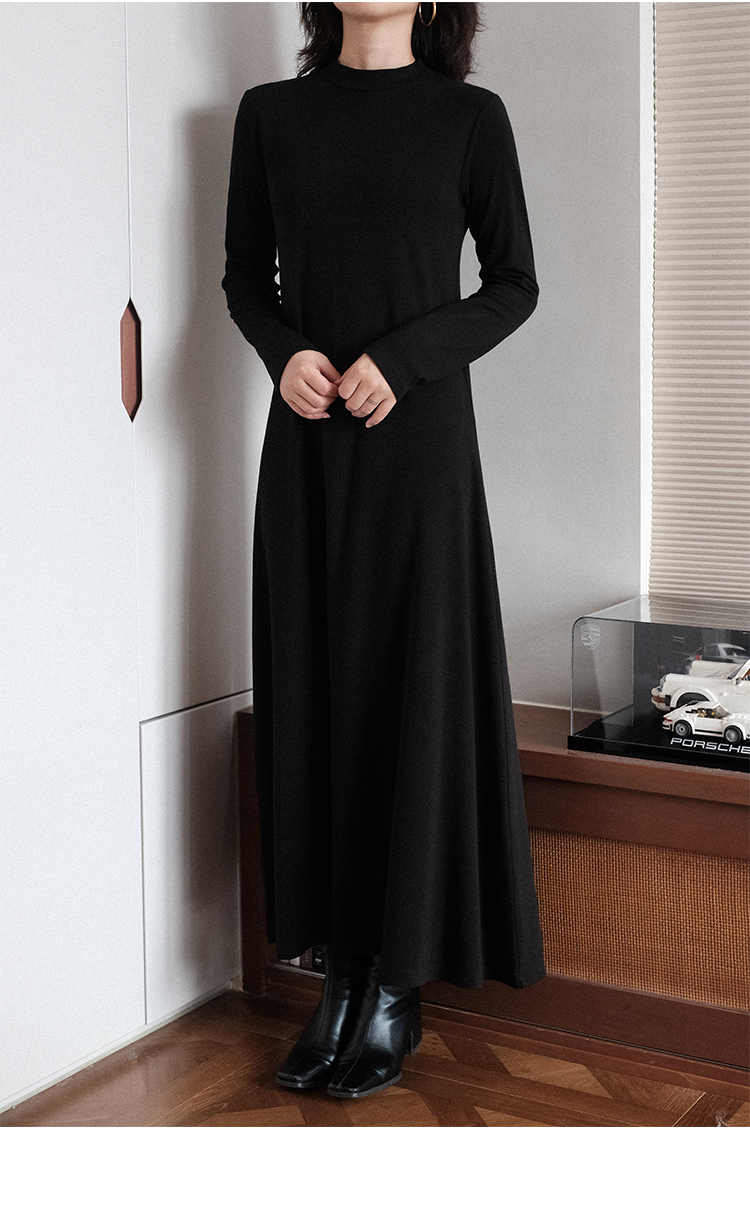 【ワンピース】春秋冬 合わせやすい シンプル ハイネック 長袖 ワンピース 【SNシリーズ】