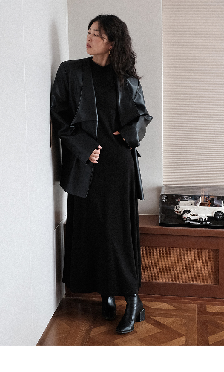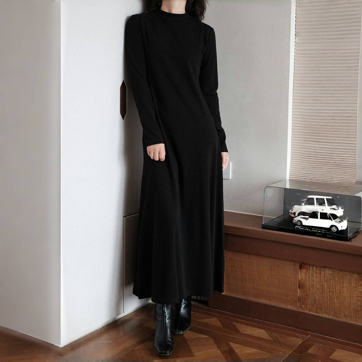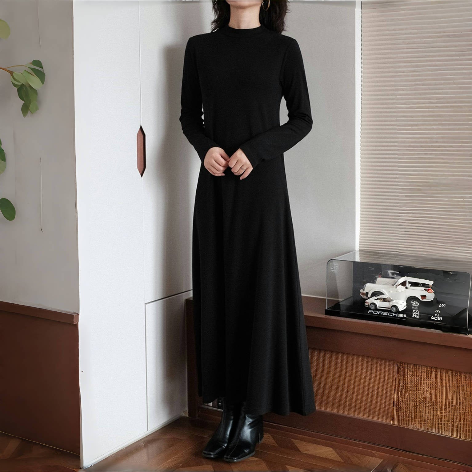 【ワンピース】春秋冬 合わせやすい シンプル ハイネック 長袖 ワンピース 【SNシリーズ】