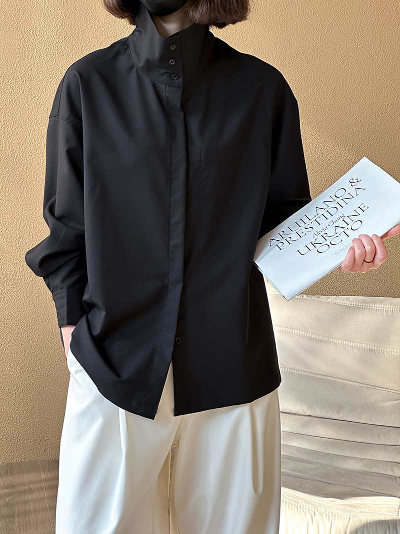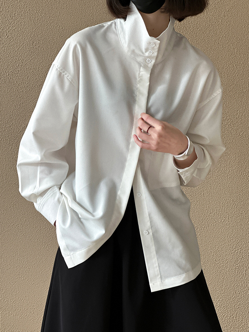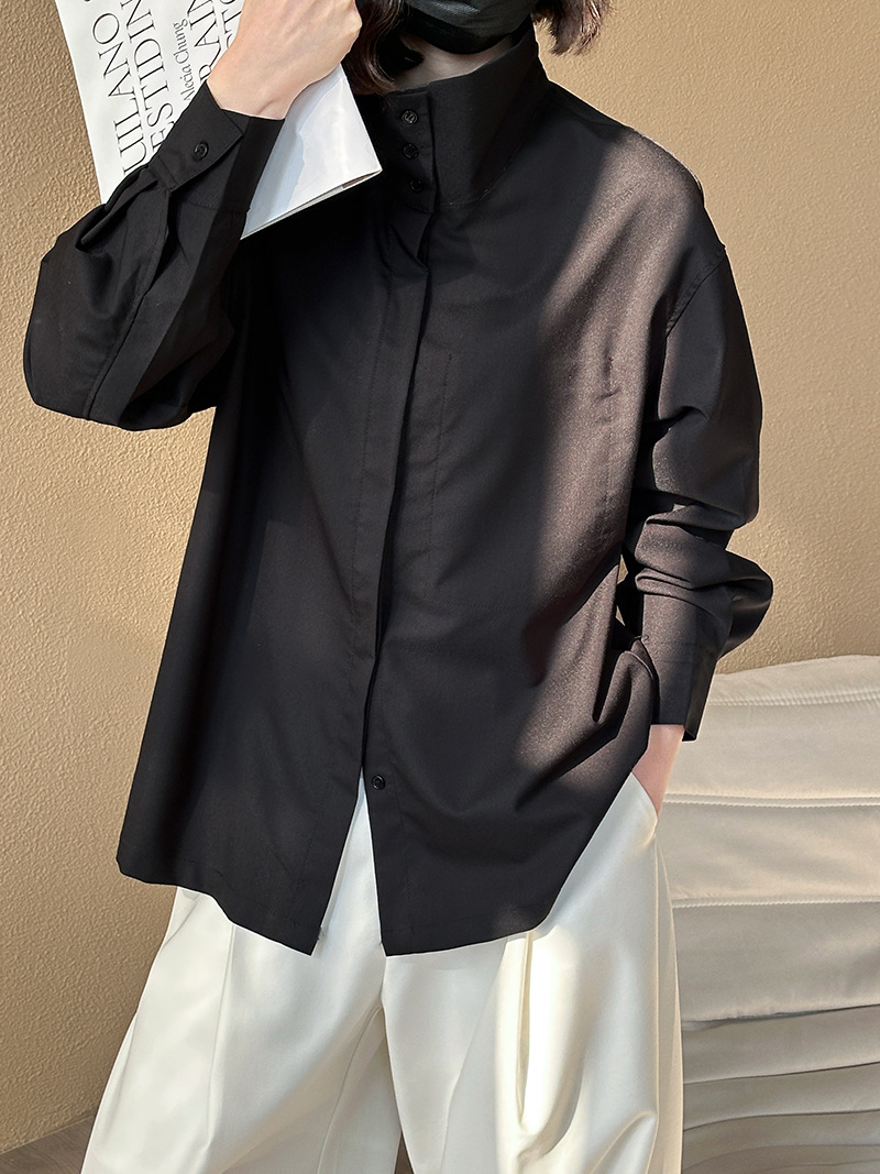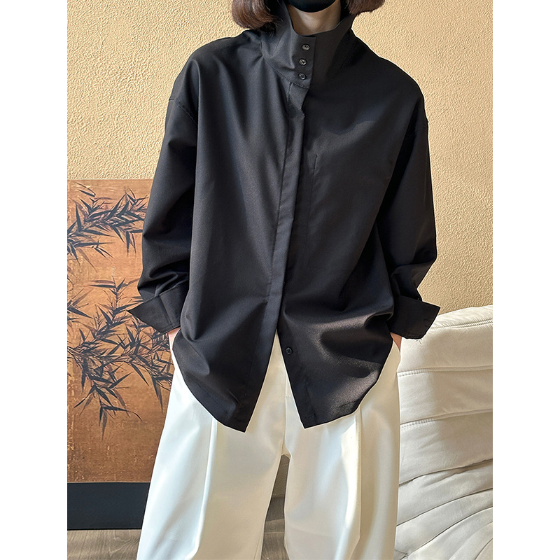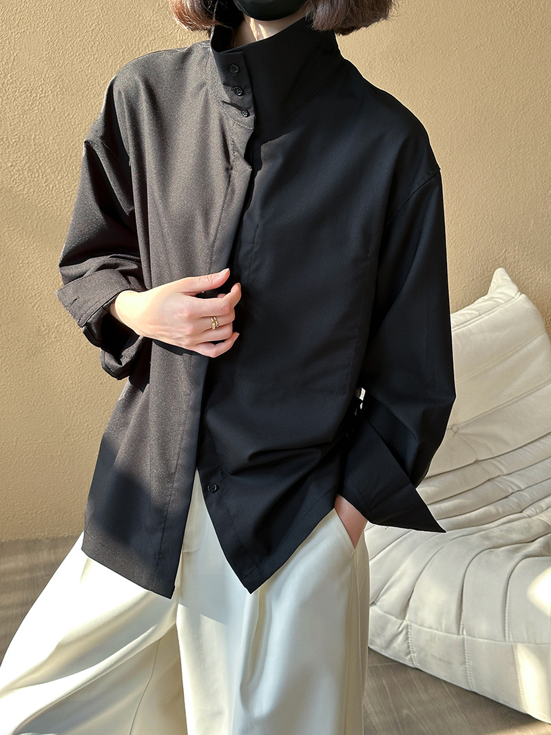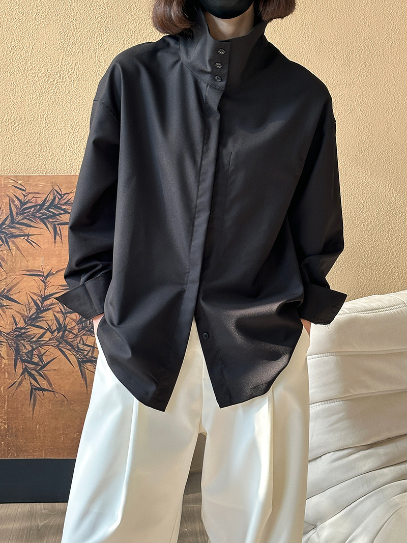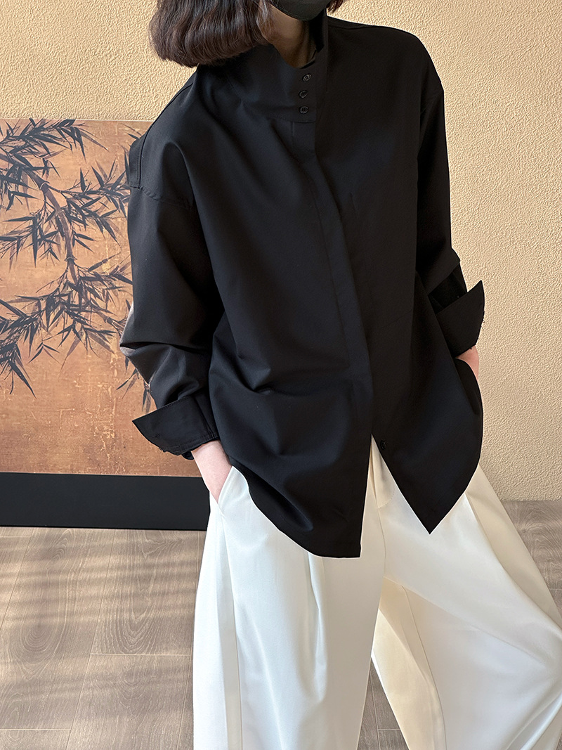 【トップス】春秋 ゆるリラックス ボタン付き 立襟 シャツ【SNシリーズ】