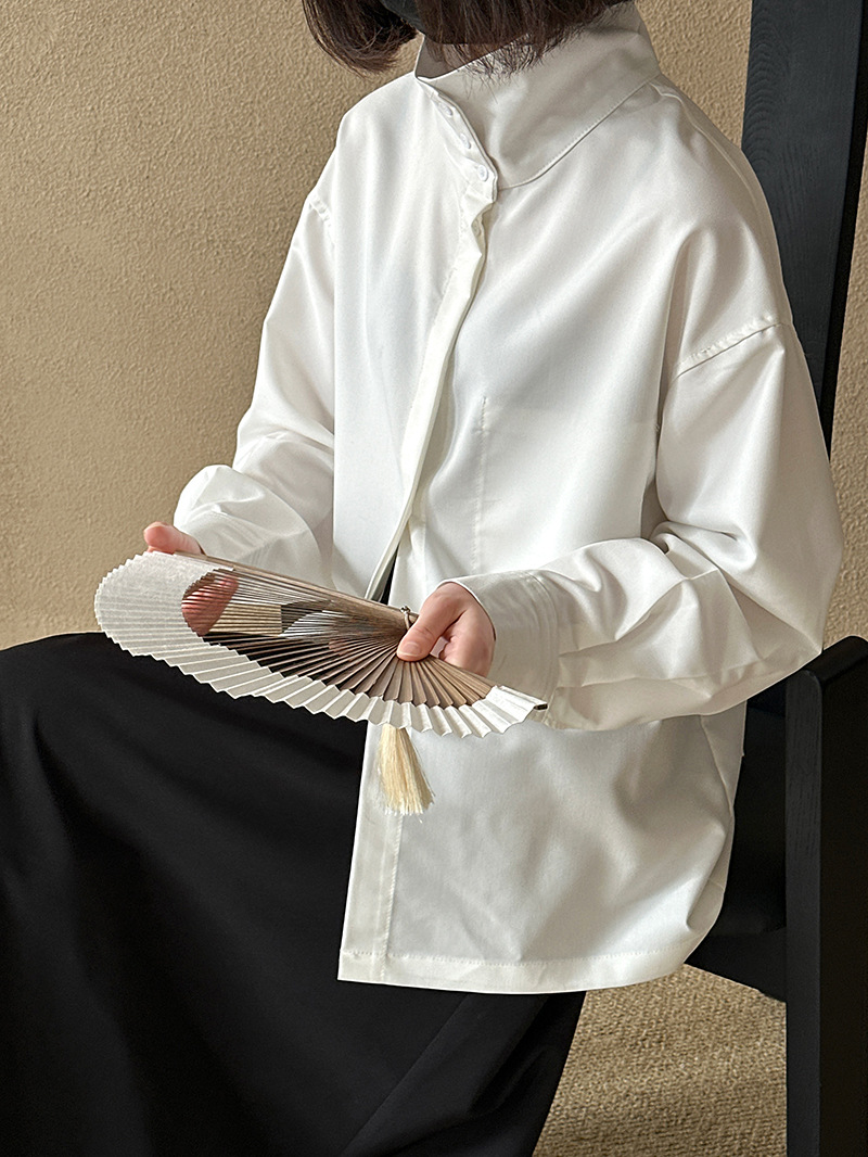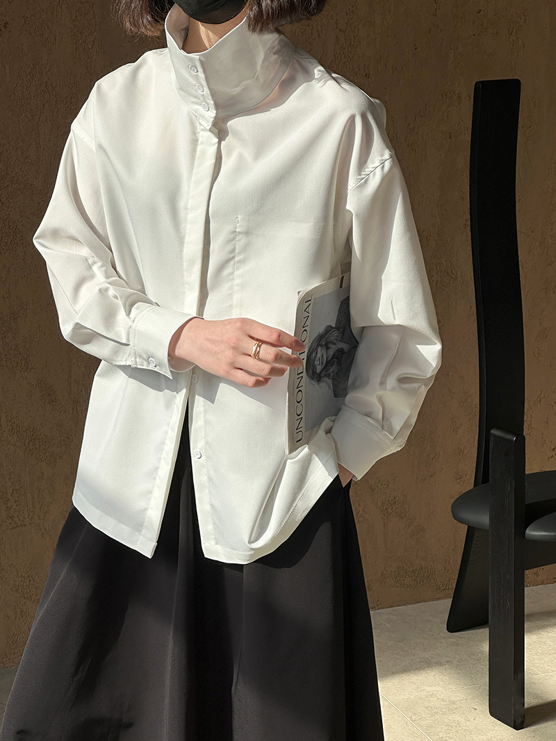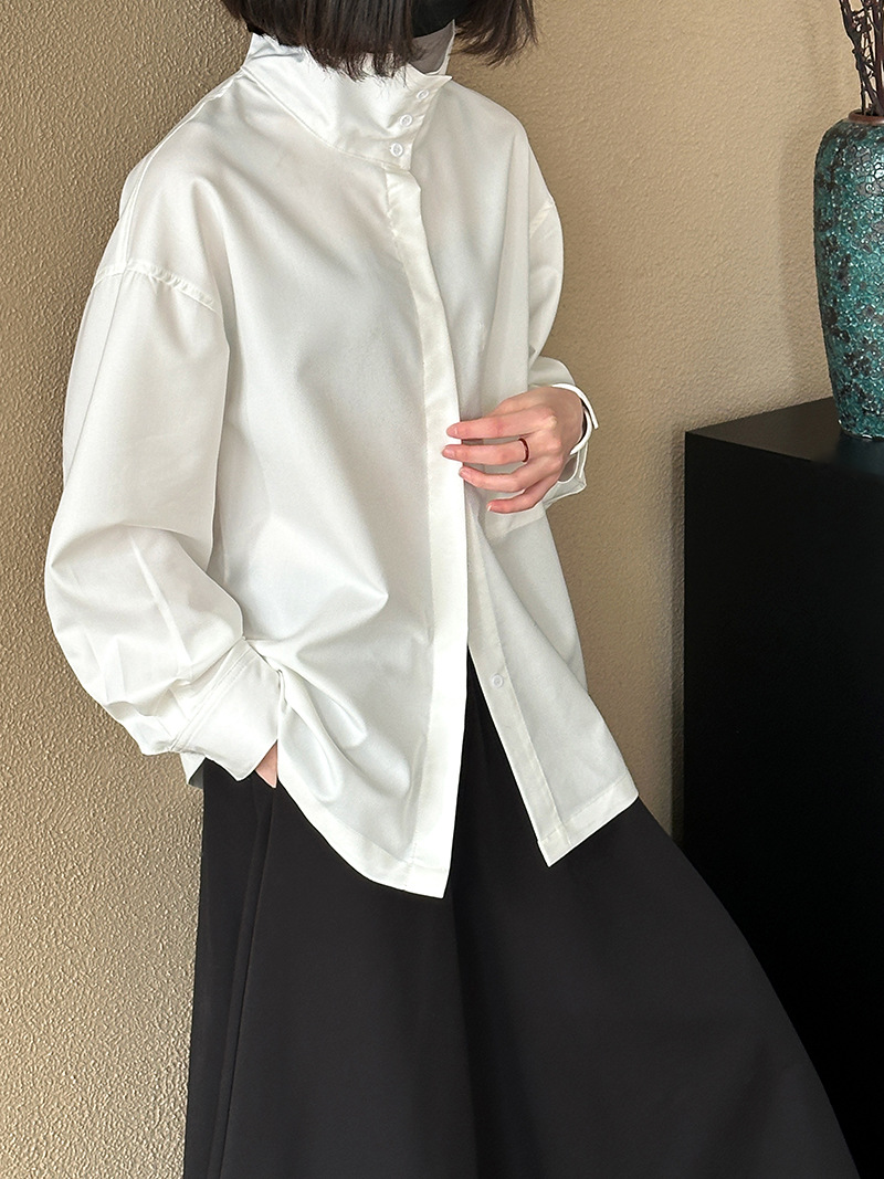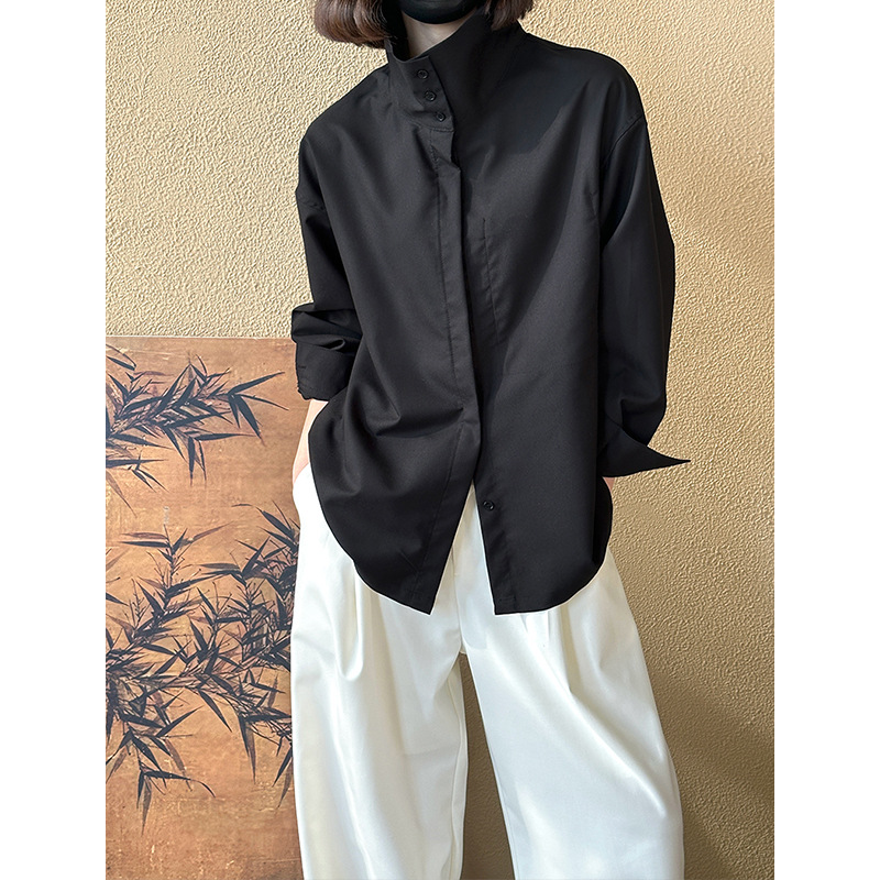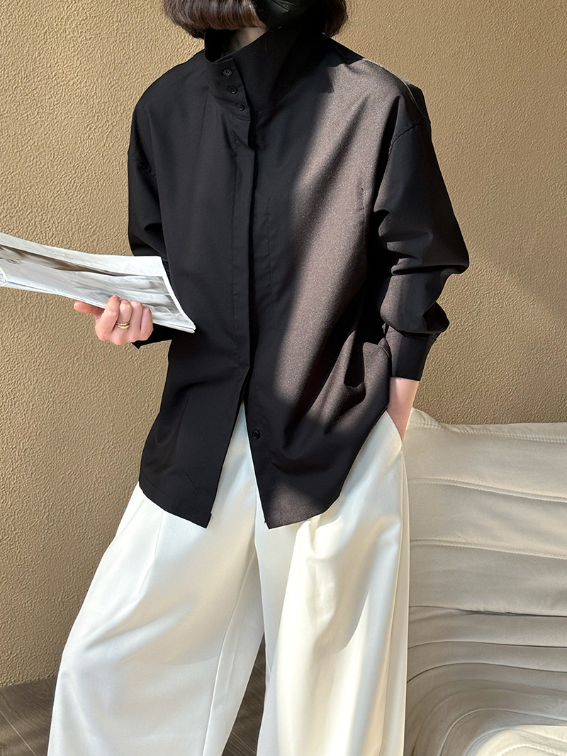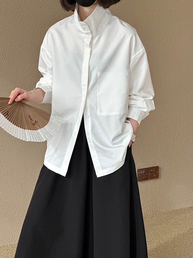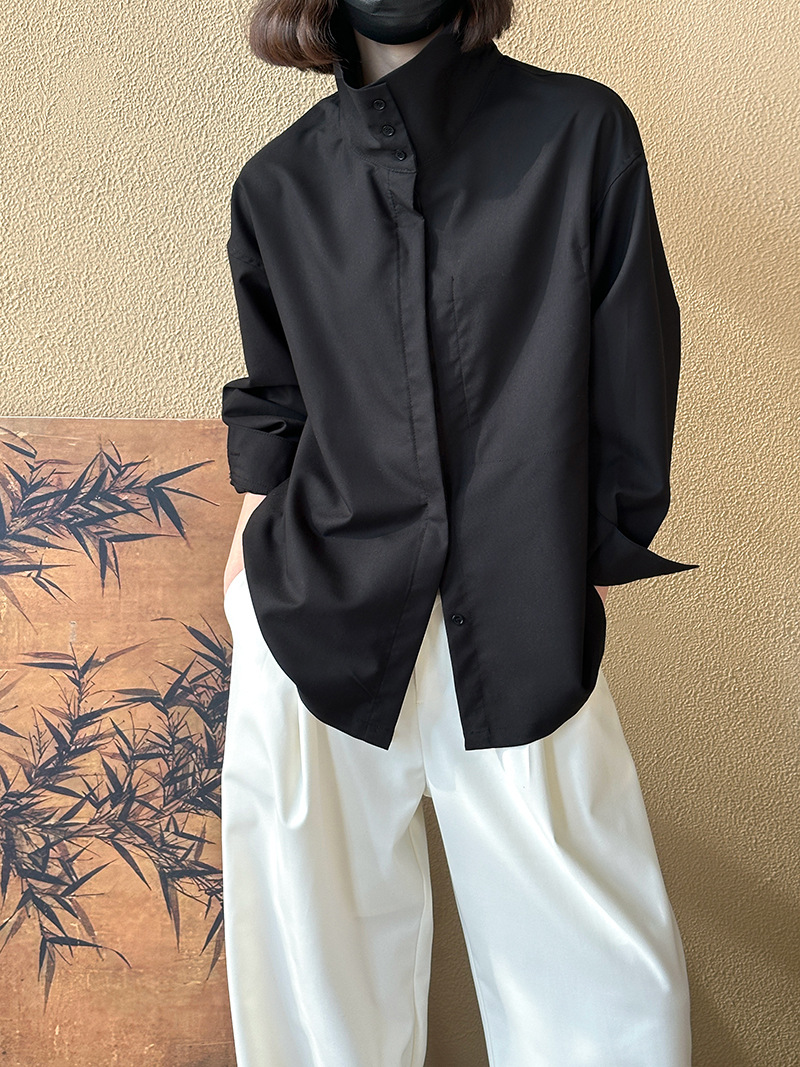【トップス】春秋 ゆるリラックス ボタン付き 立襟 シャツ【SNシリーズ】