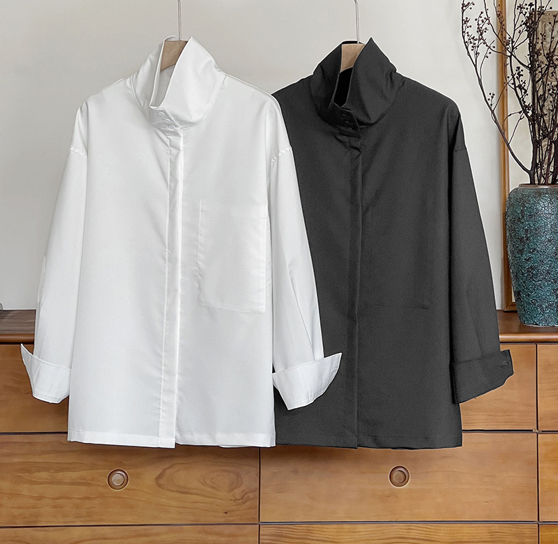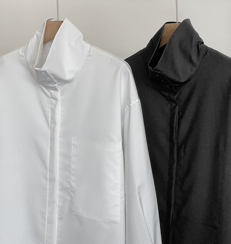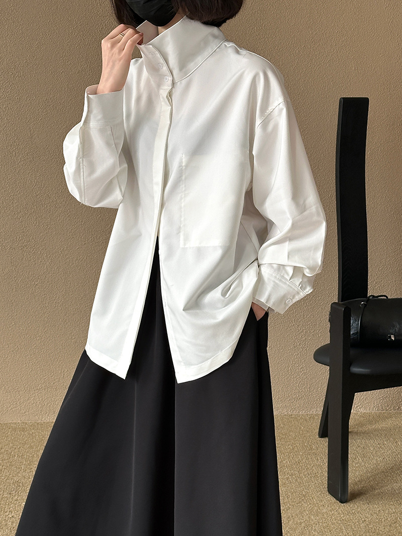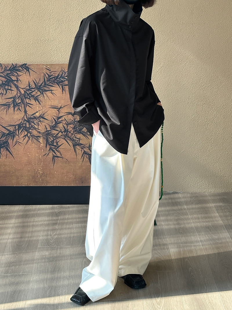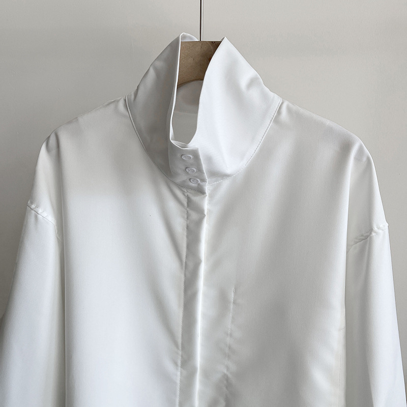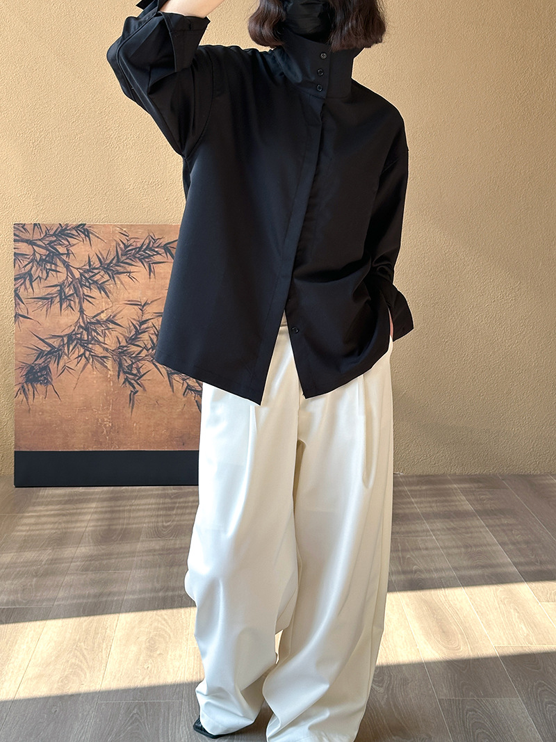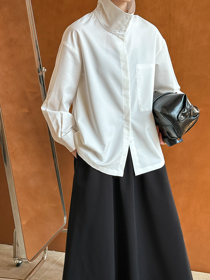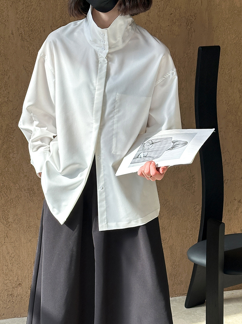 【トップス】春秋 ゆるリラックス ボタン付き 立襟 シャツ【SNシリーズ】