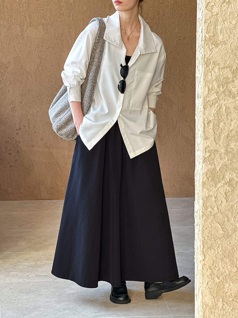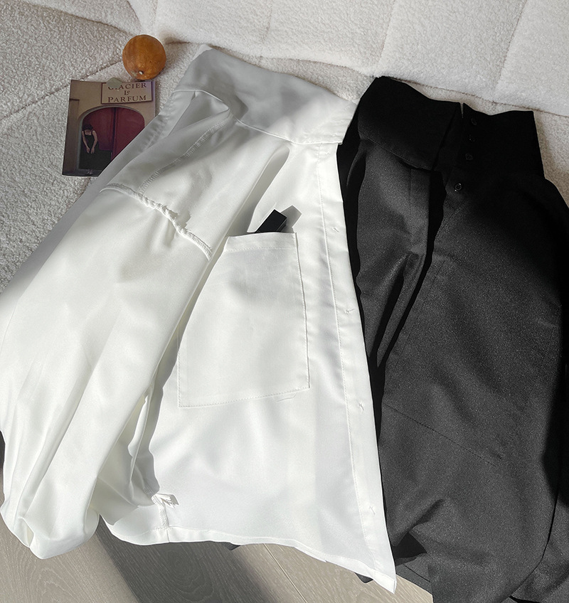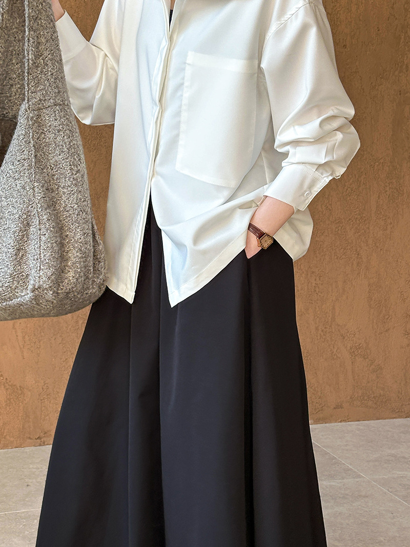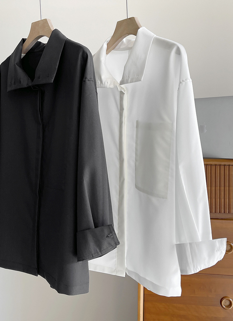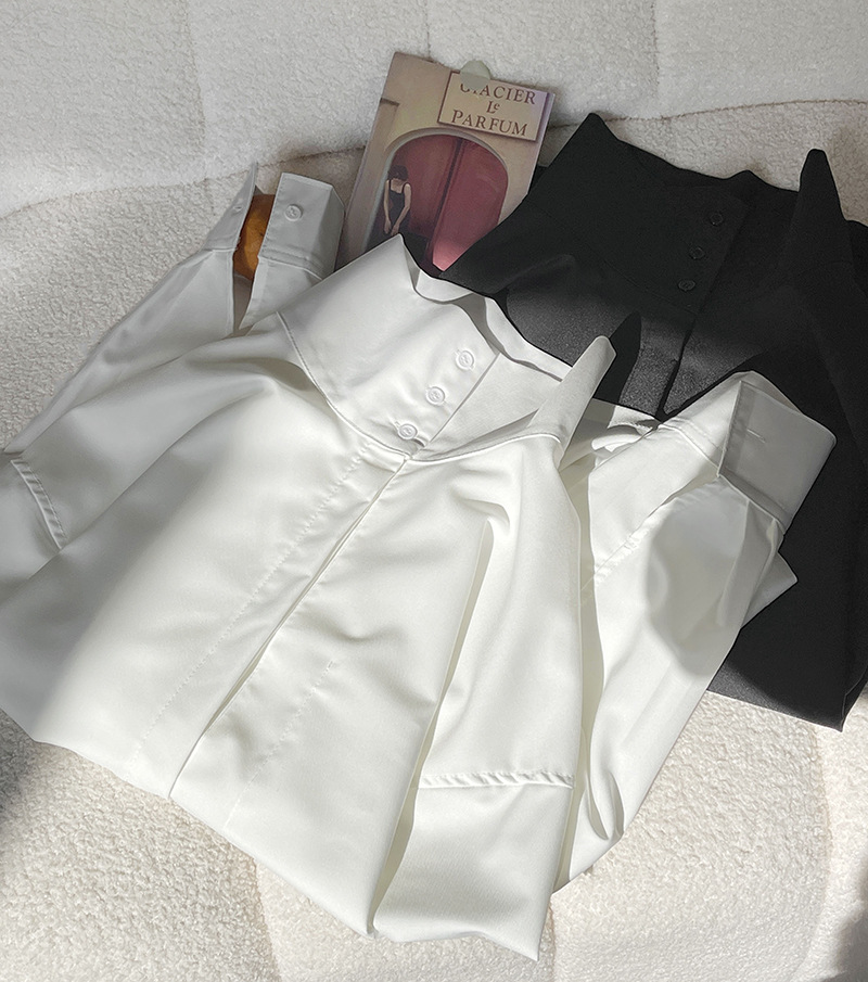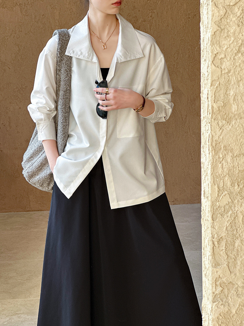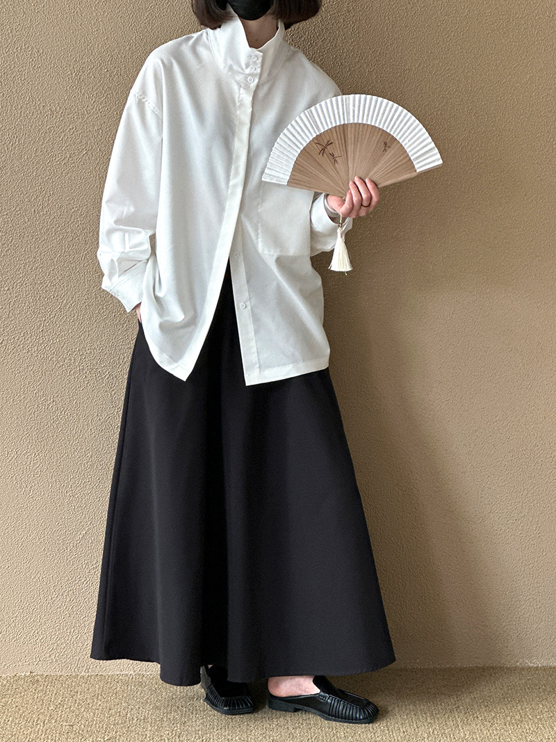 【トップス】春秋 ゆるリラックス ボタン付き 立襟 シャツ【SNシリーズ】