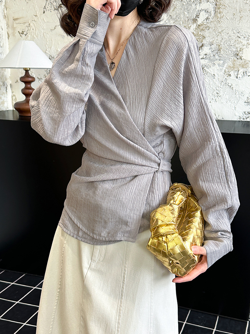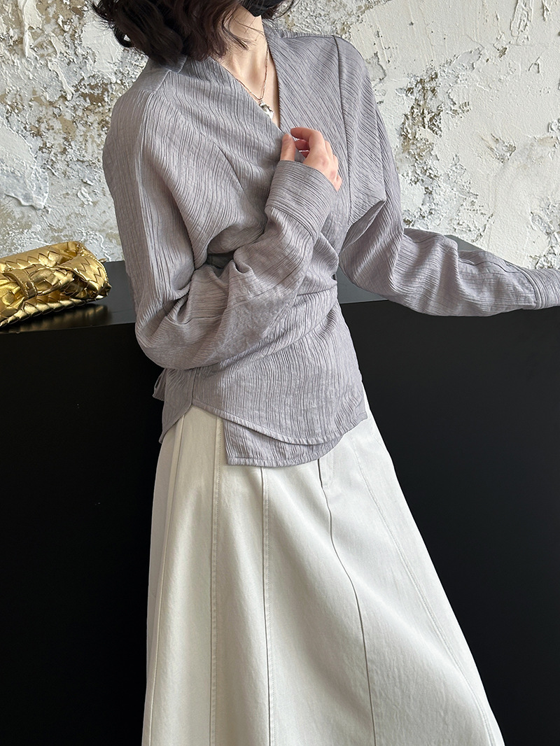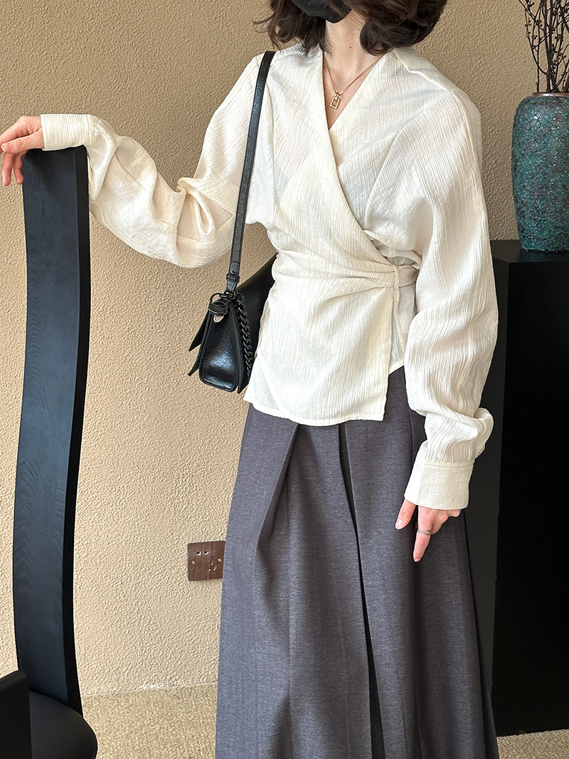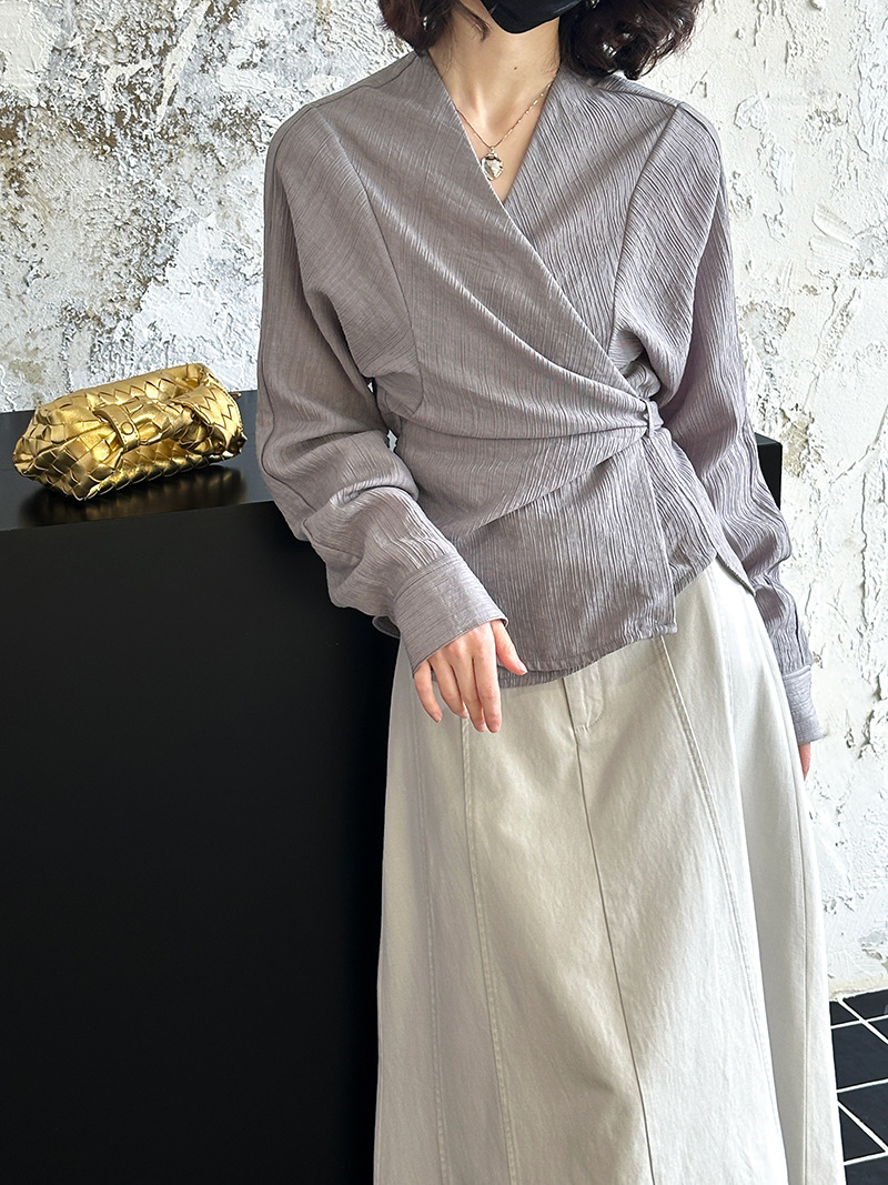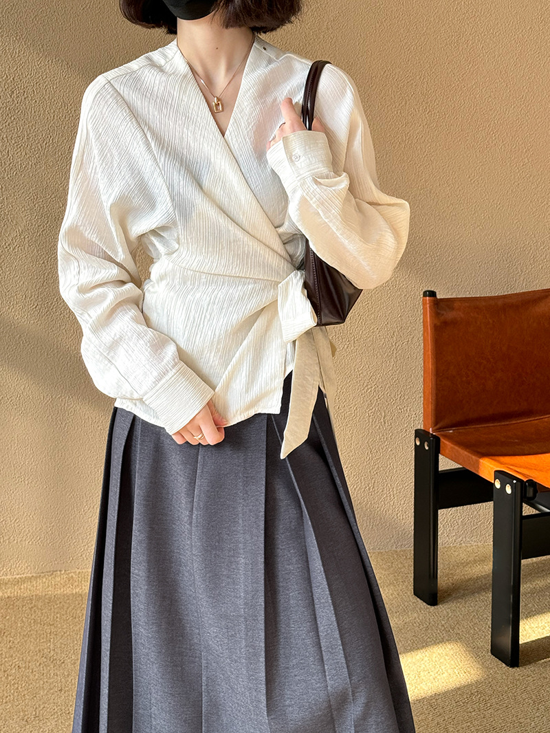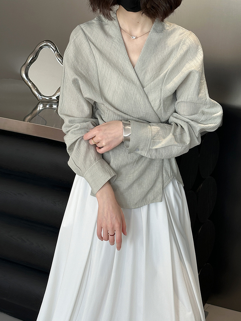 【トップス】春秋 Vネック 着痩せ効果 シャツ 【SNシリーズ】