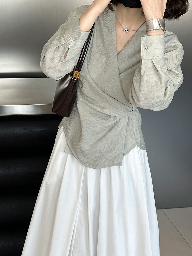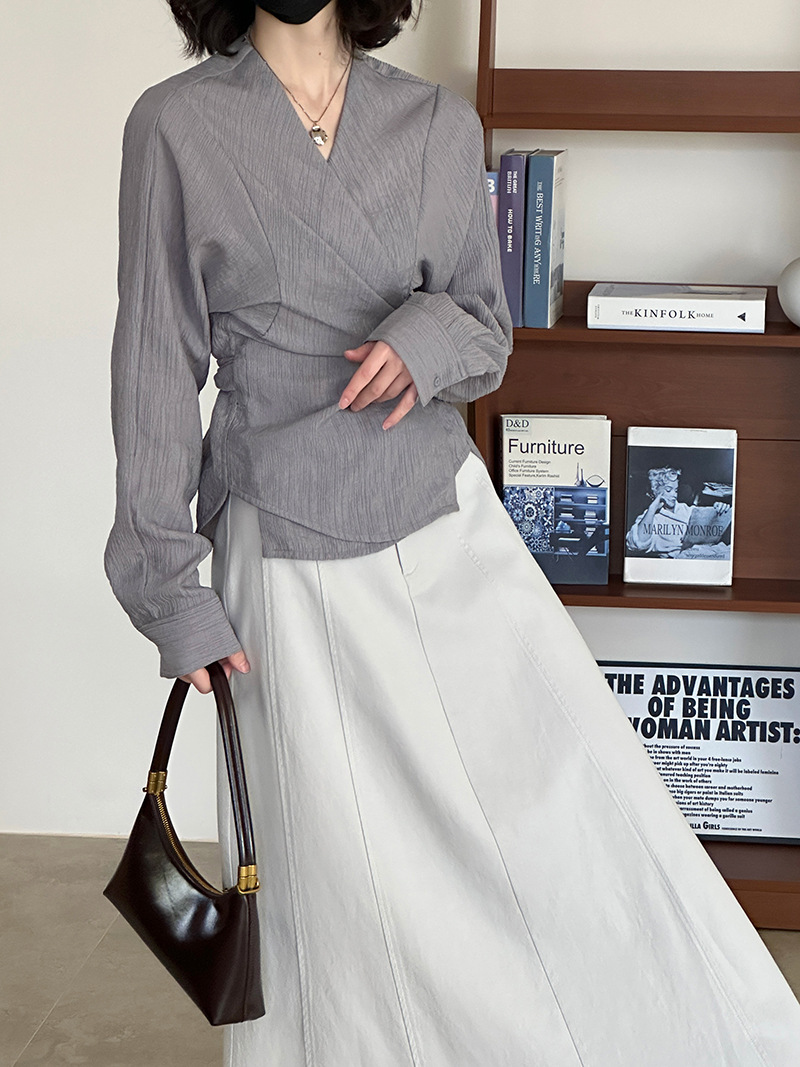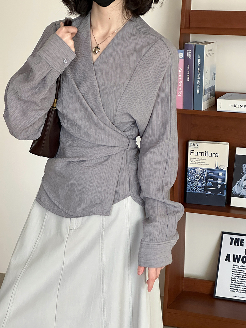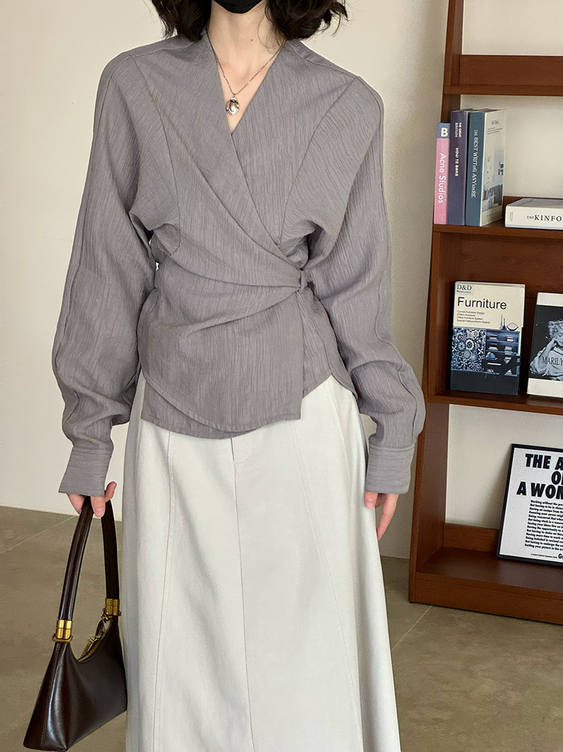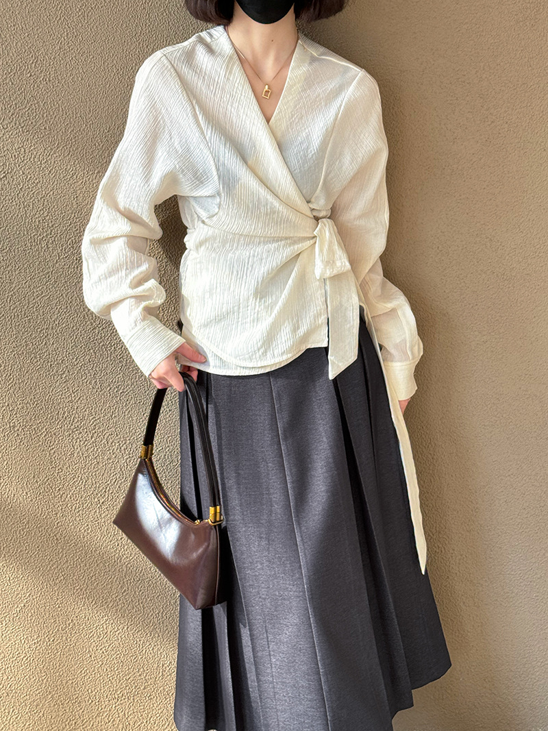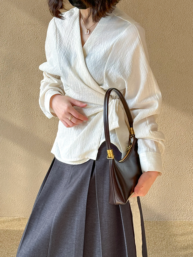 【トップス】春秋 Vネック 着痩せ効果 シャツ 【SNシリーズ】