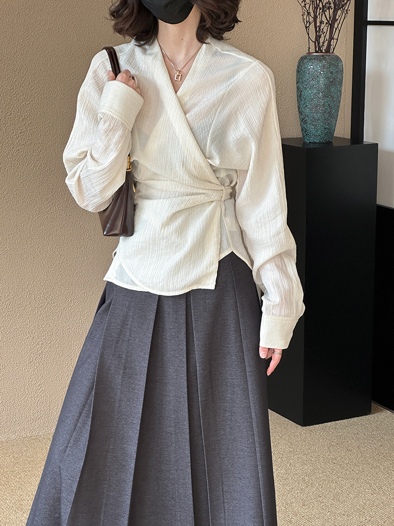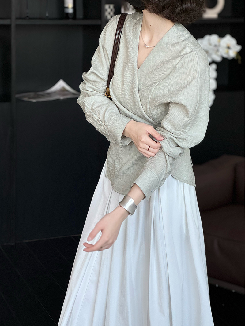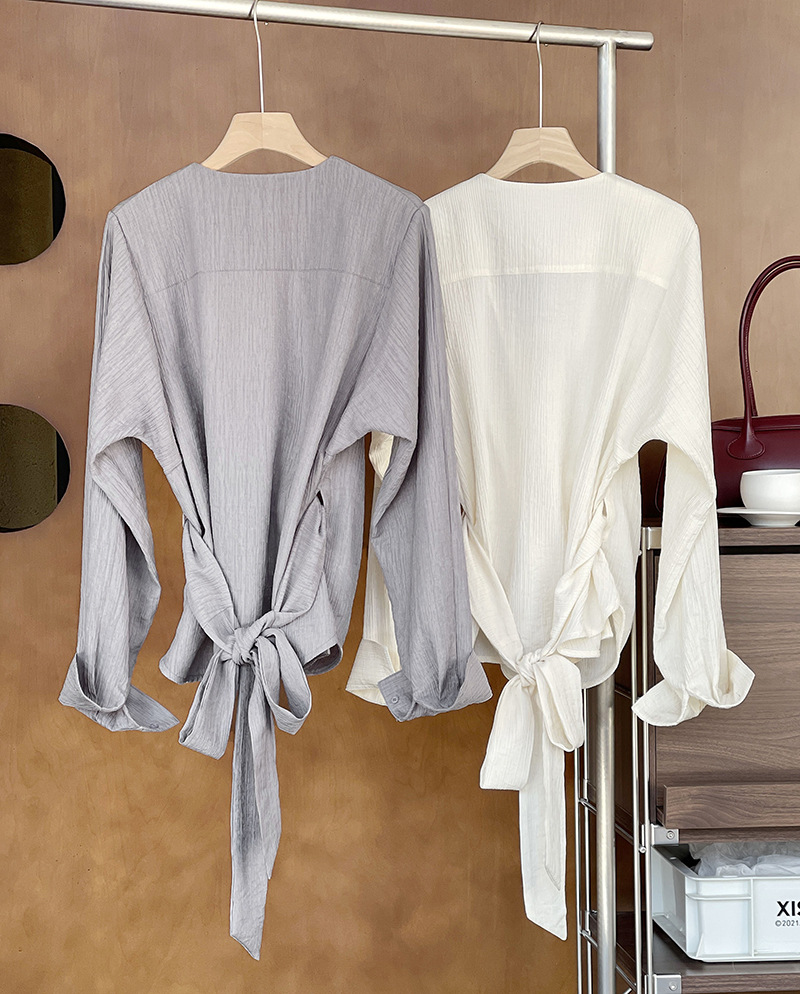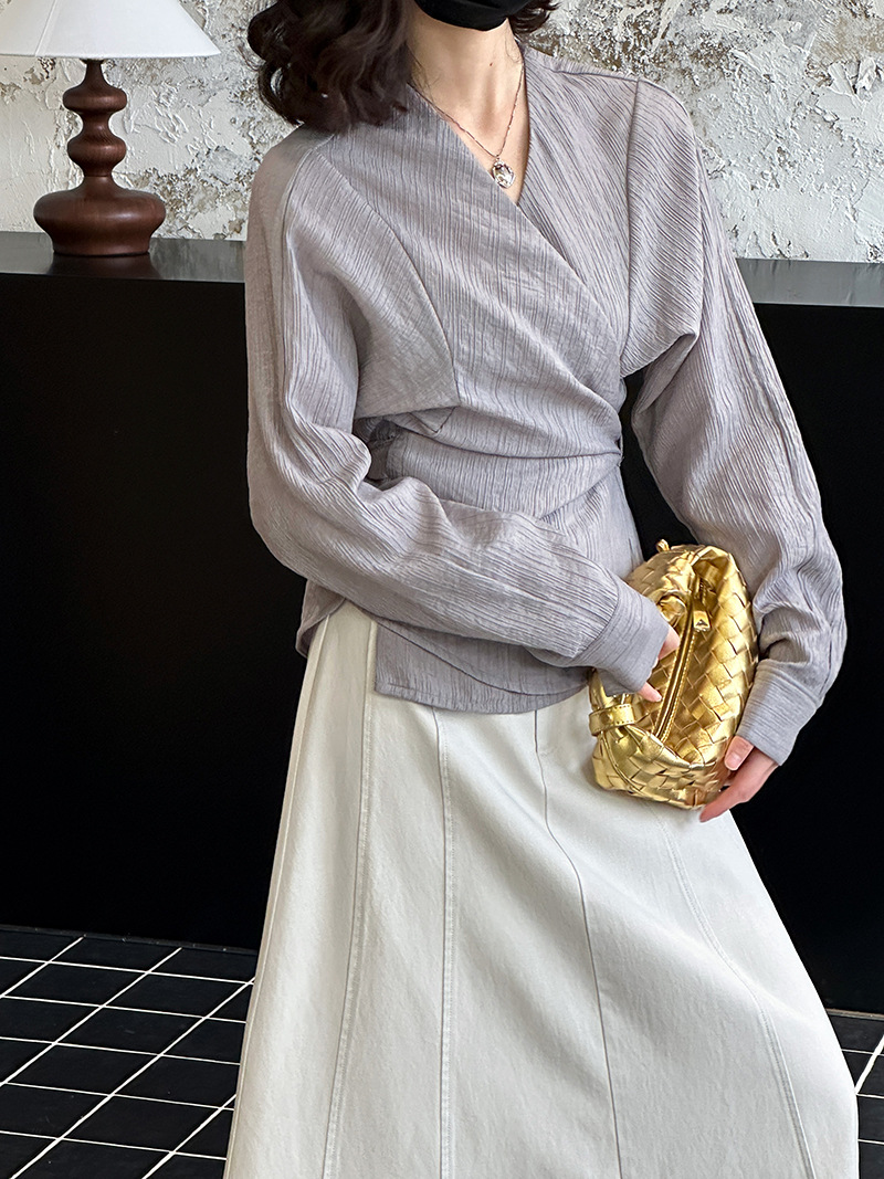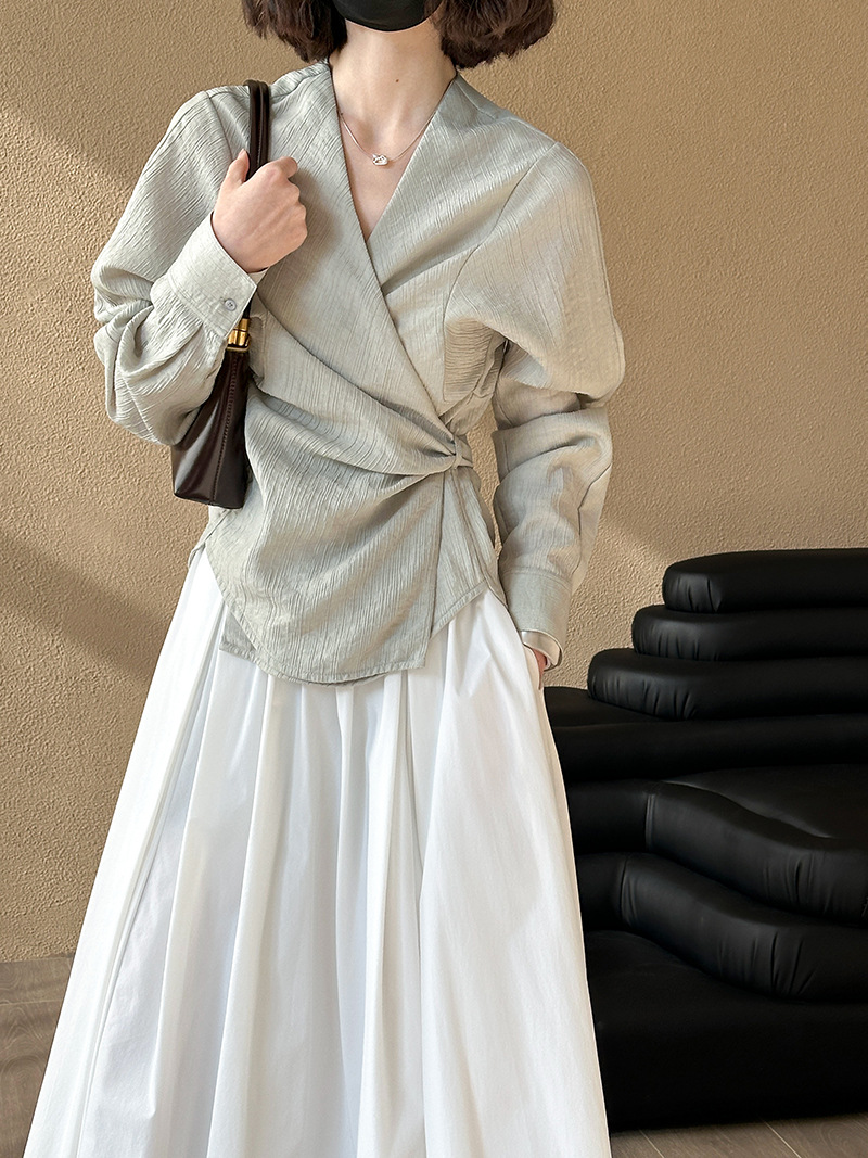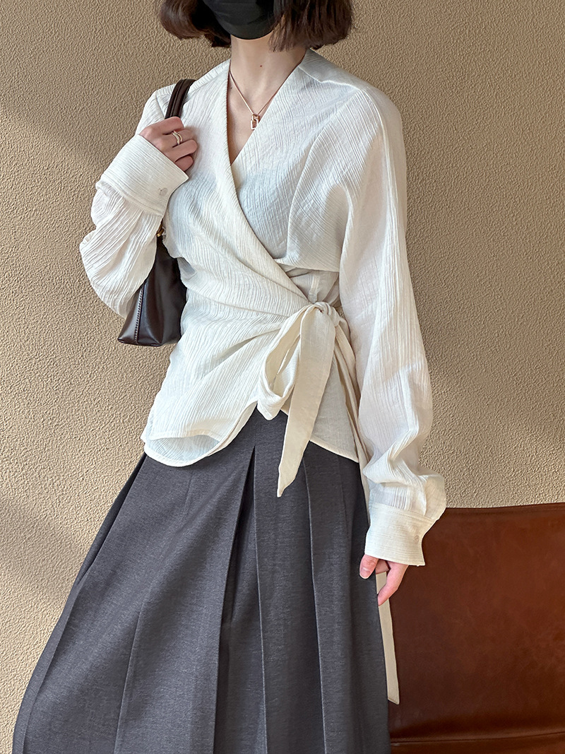 【トップス】春秋 Vネック 着痩せ効果 シャツ 【SNシリーズ】
