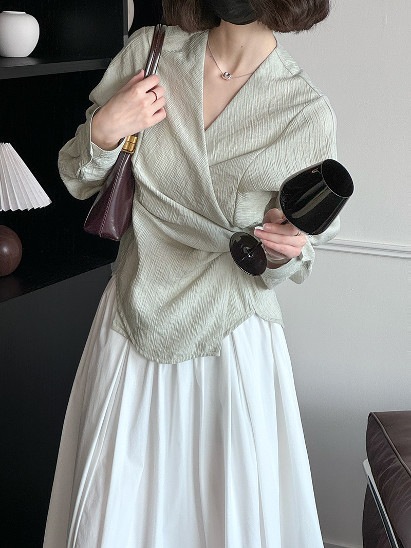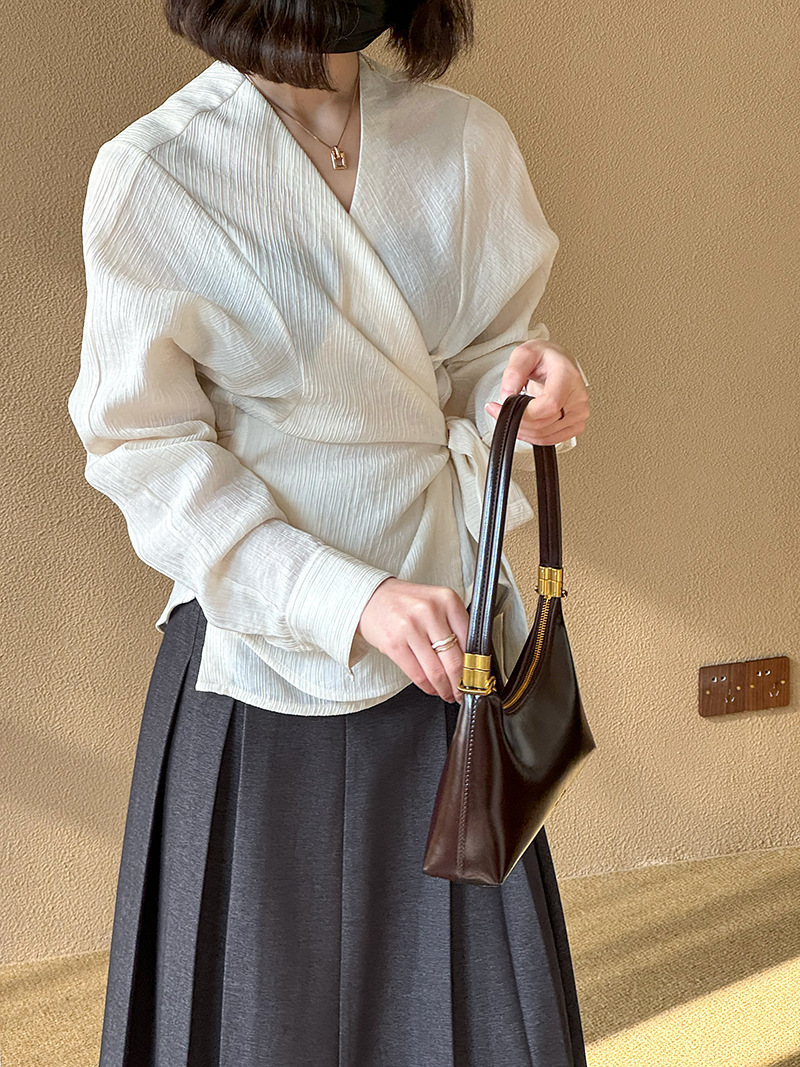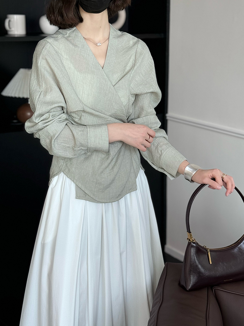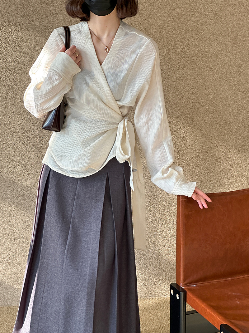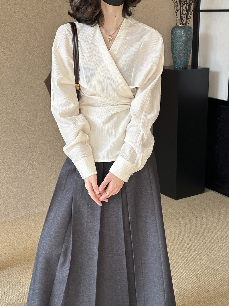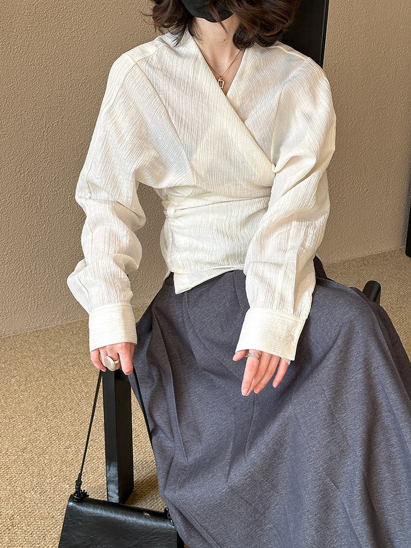 【トップス】春秋 Vネック 着痩せ効果 シャツ 【SNシリーズ】