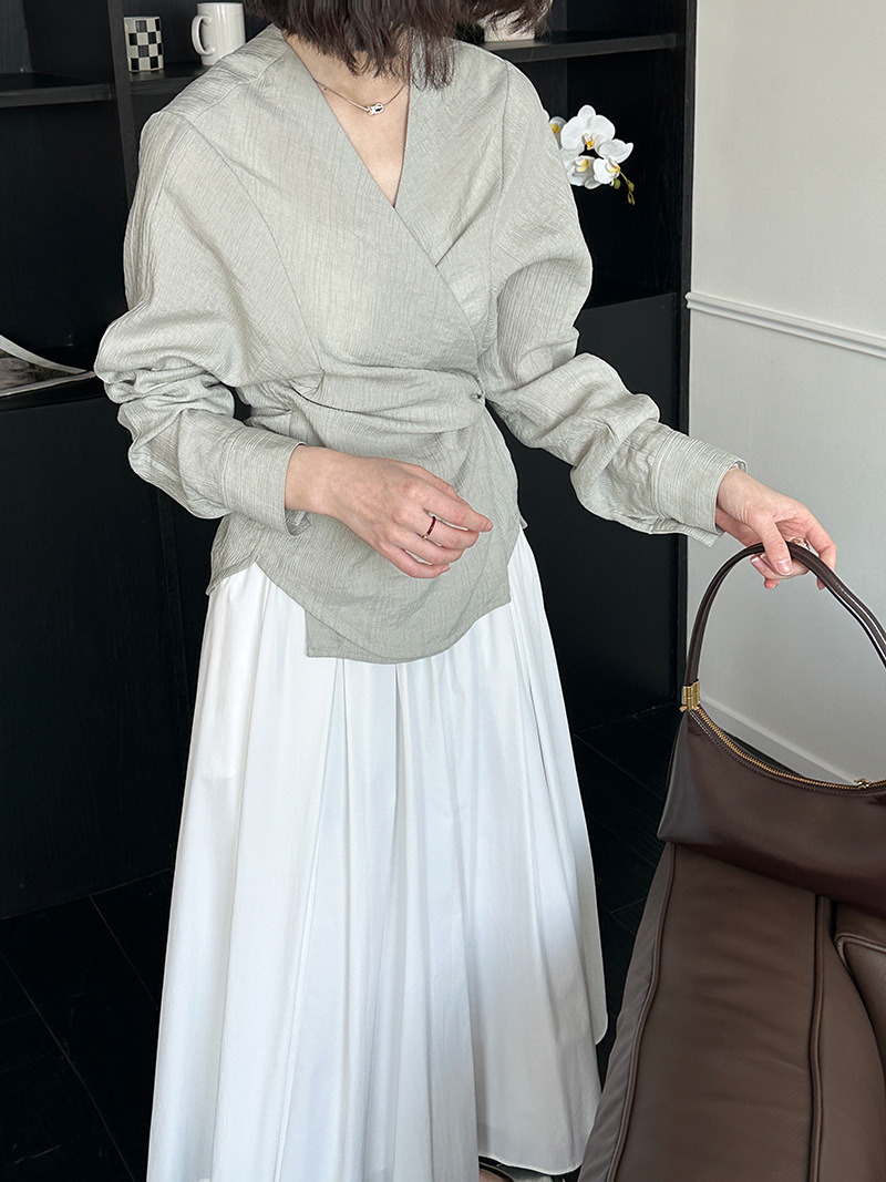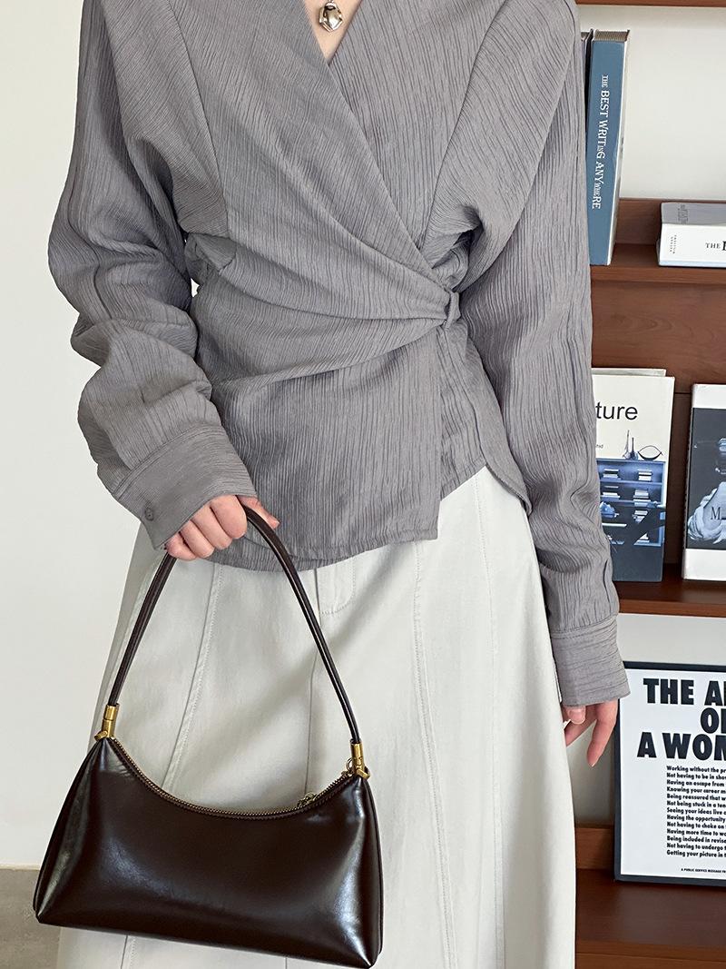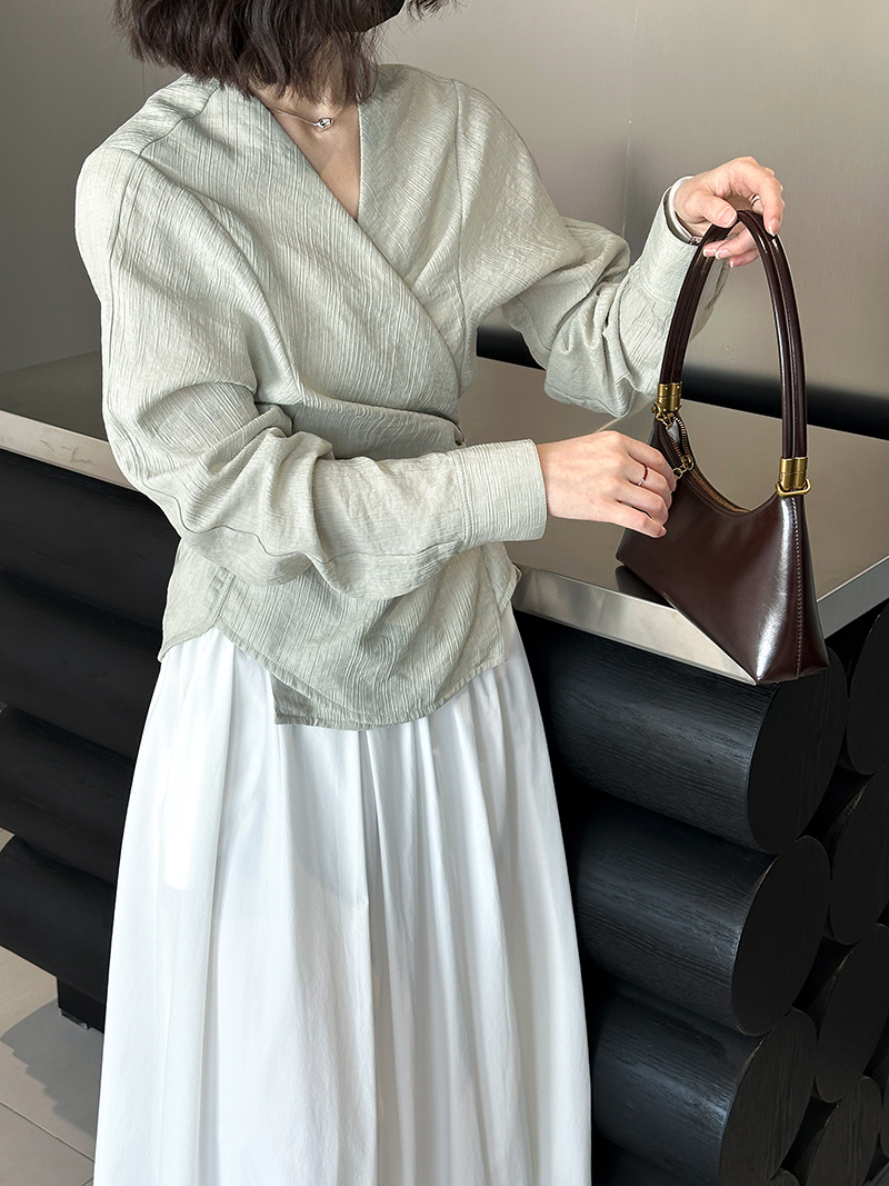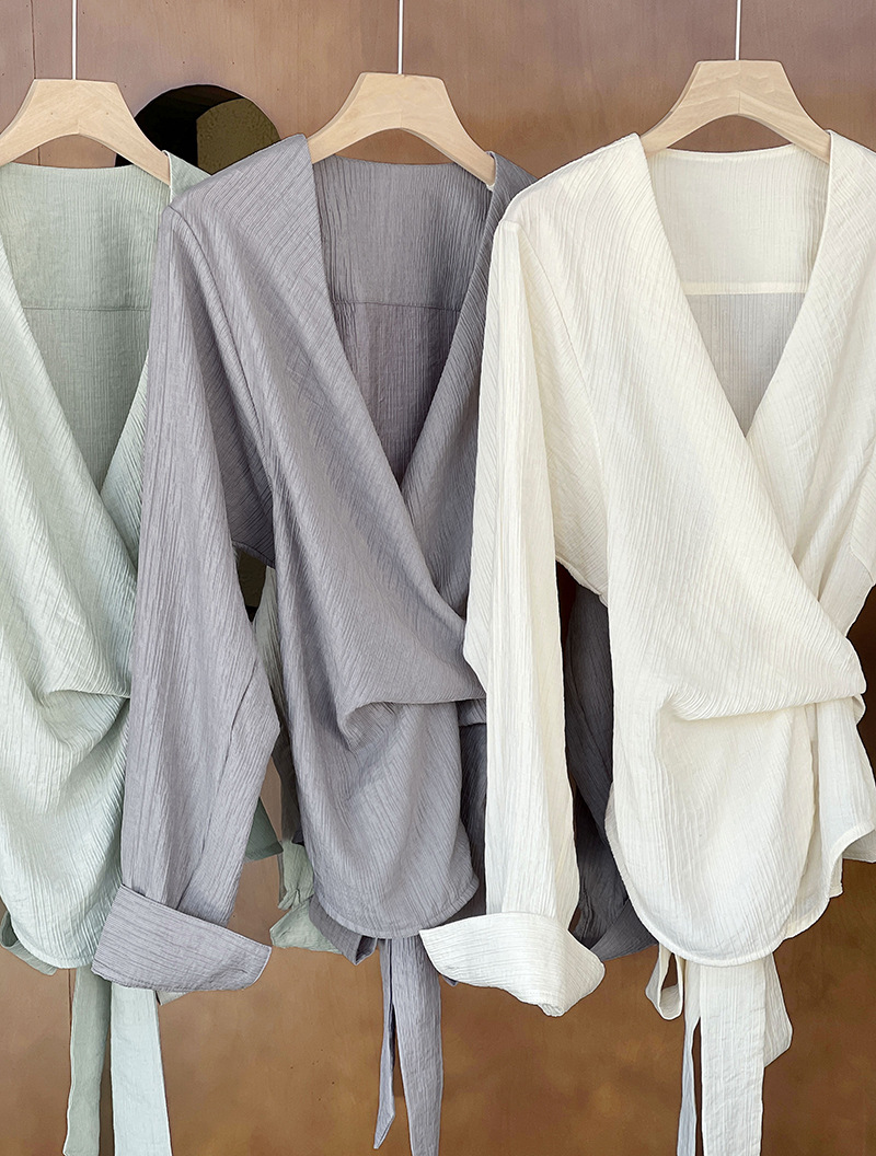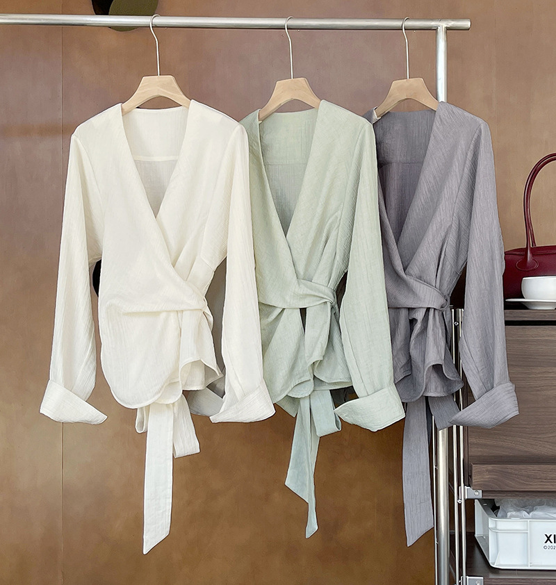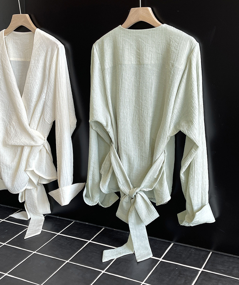【トップス】春秋 Vネック 着痩せ効果 シャツ 【SNシリーズ】
