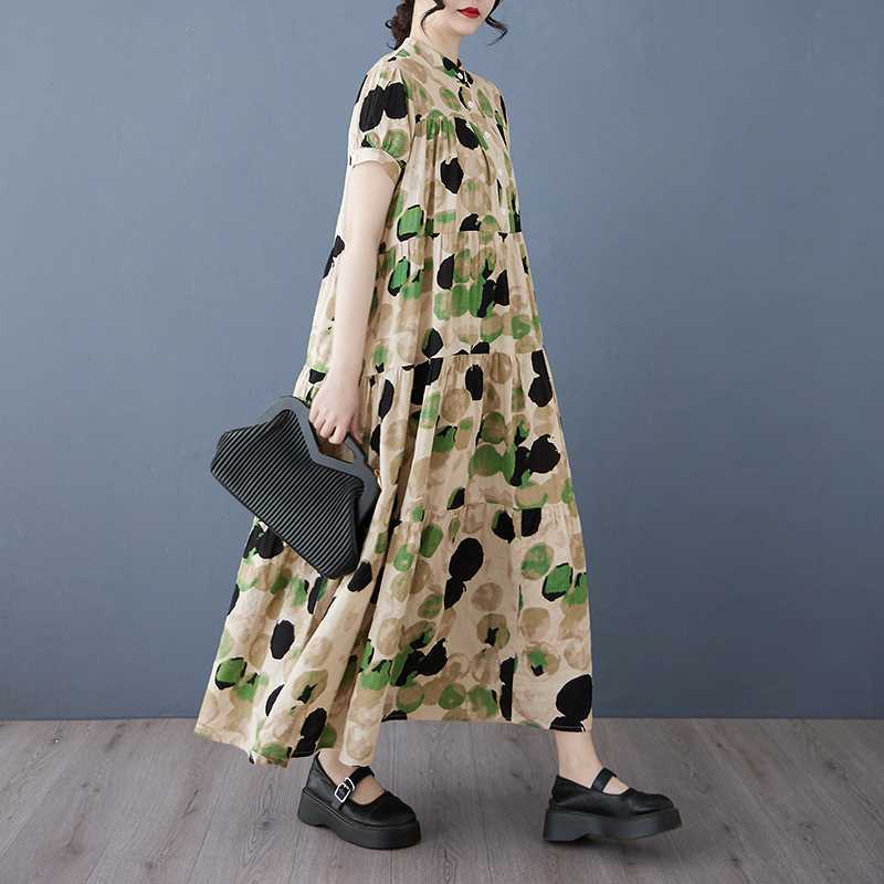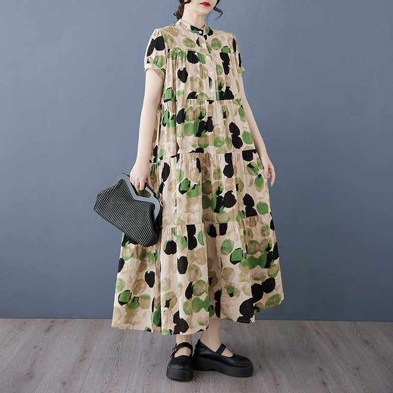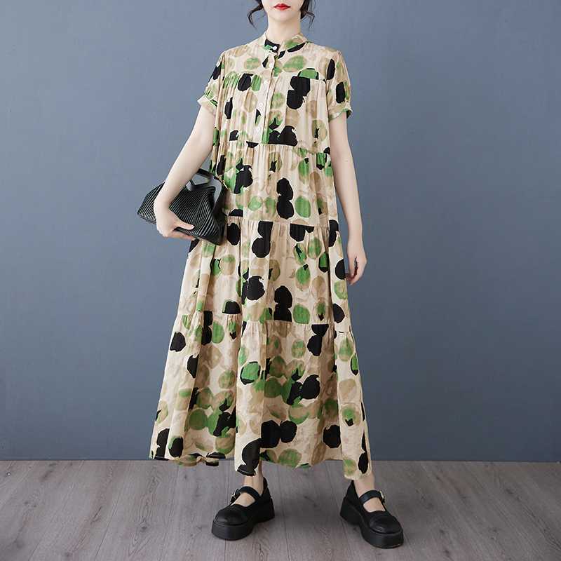 【商品名】【ワンピース】春夏新作 半袖 ゆったり 大きいサイズ おしゃれ プリントスリム見せ 半袖ワンピース【SHシリーズ】