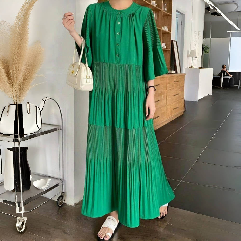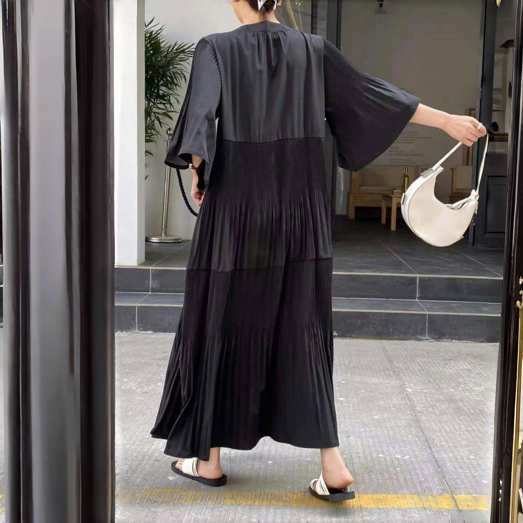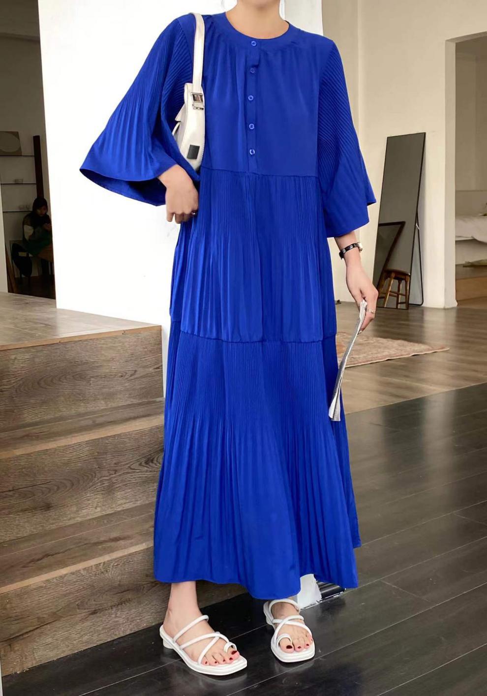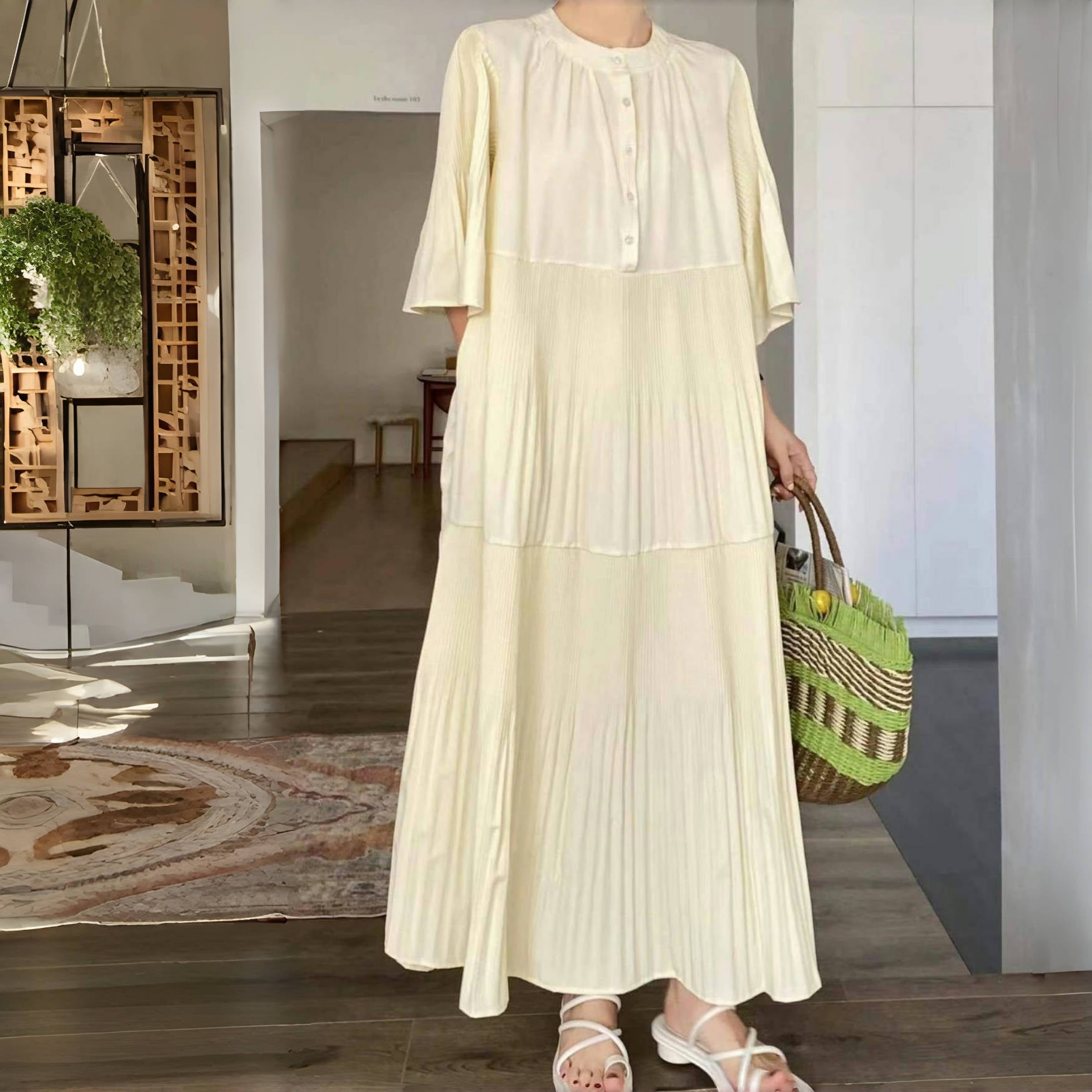【ワンピース】夏 プリーツ 切り替え 大振裾 半袖 ワンピース