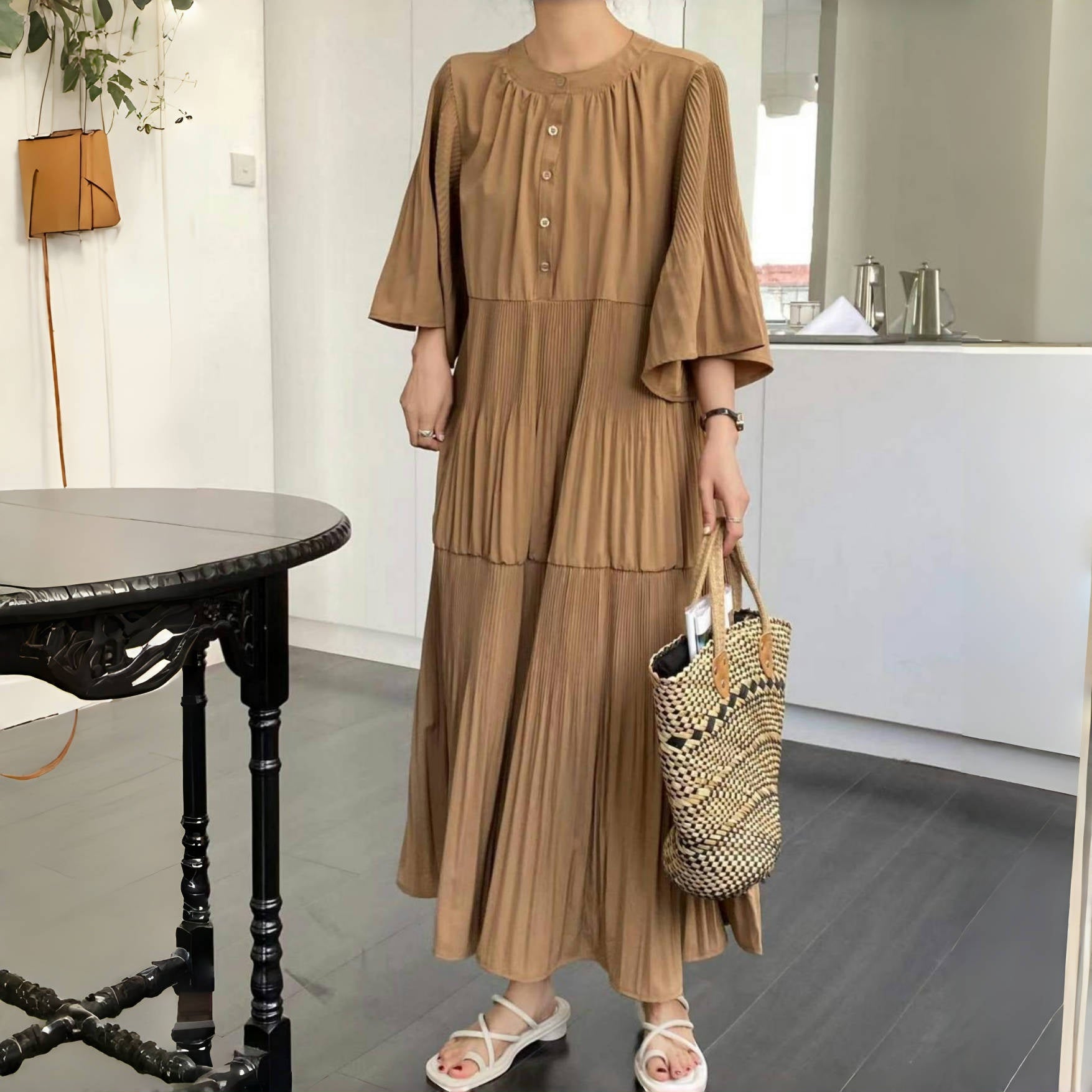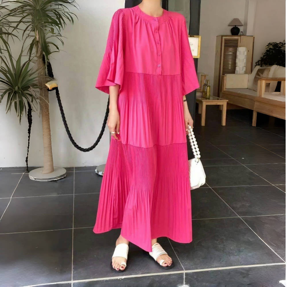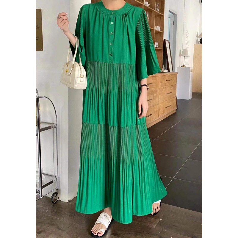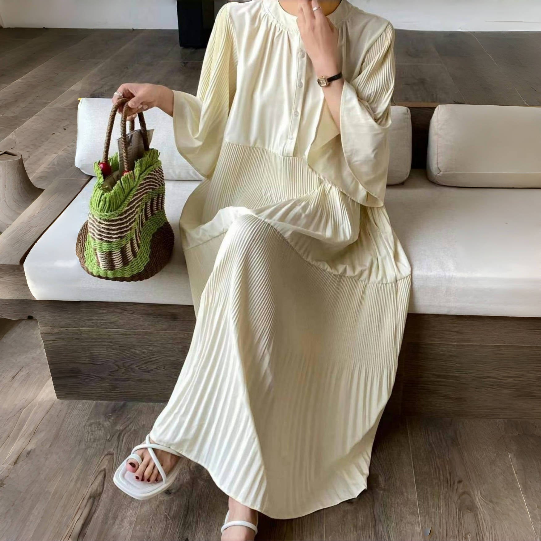 【ワンピース】夏 プリーツ 切り替え 大振裾 半袖 ワンピース