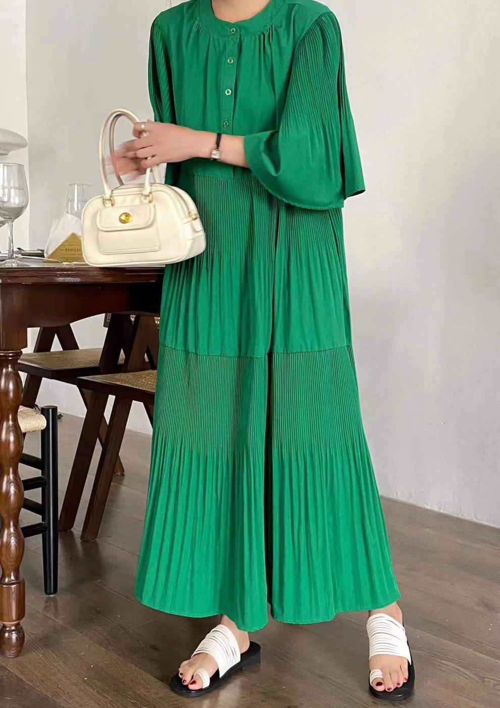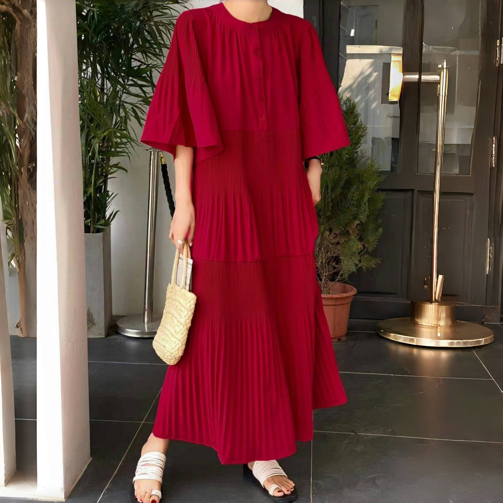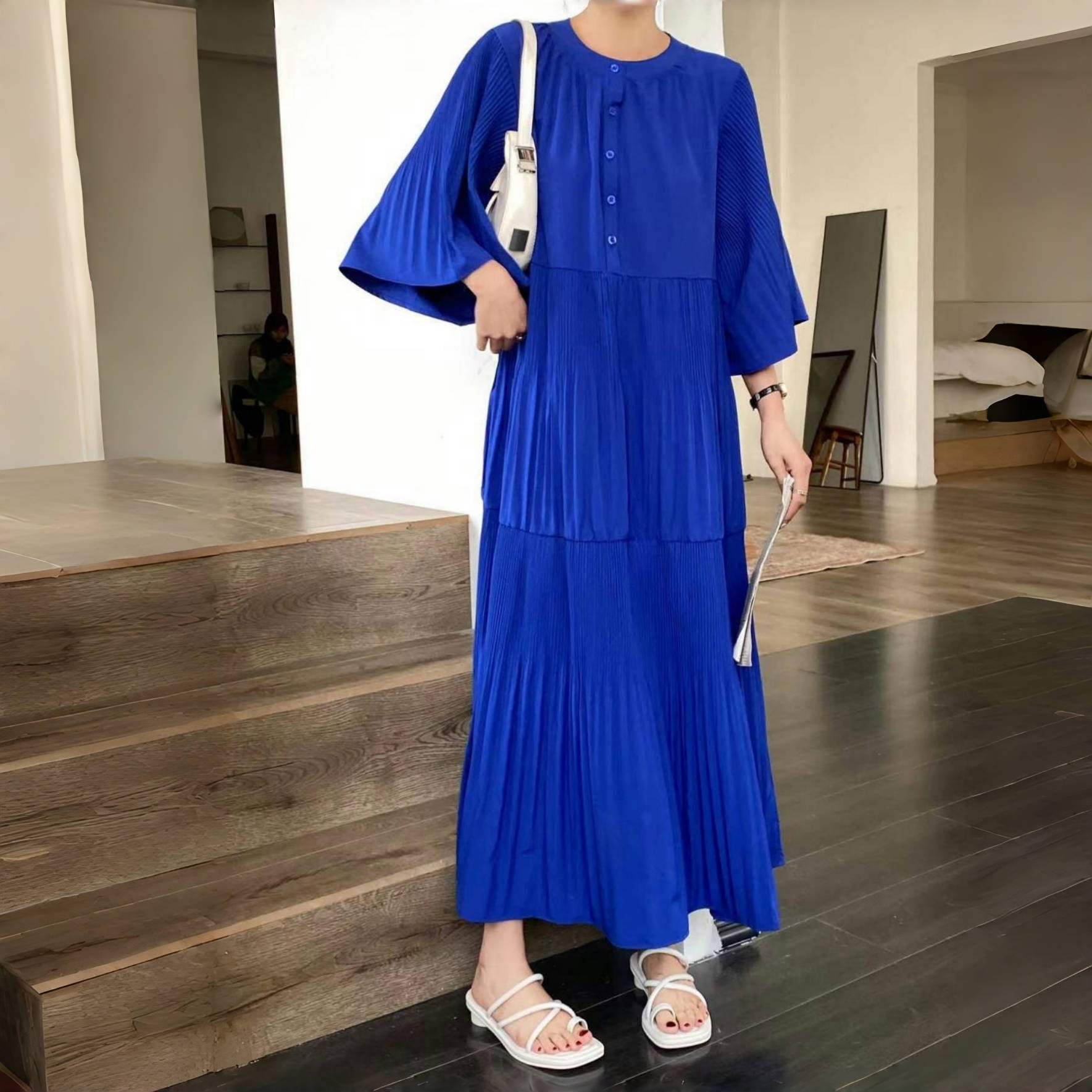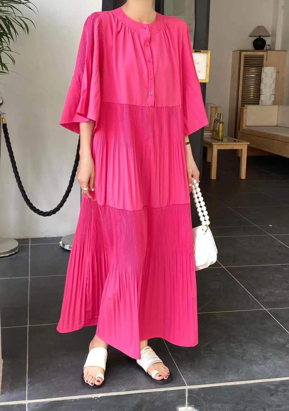 【ワンピース】夏 プリーツ 切り替え 大振裾 半袖 ワンピース