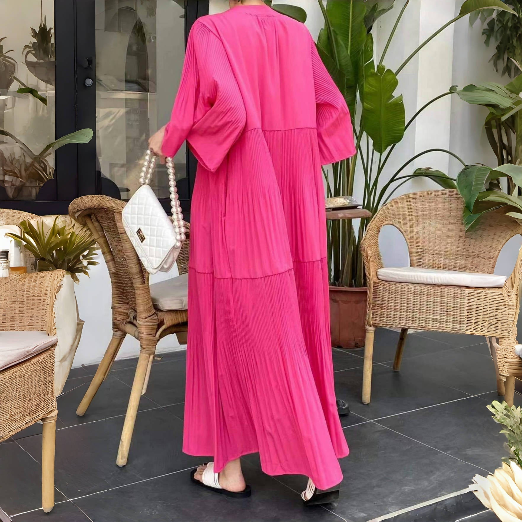 【商品名】【ワンピース】プリーツ 切り替え 大振裾 半袖 ワンピース