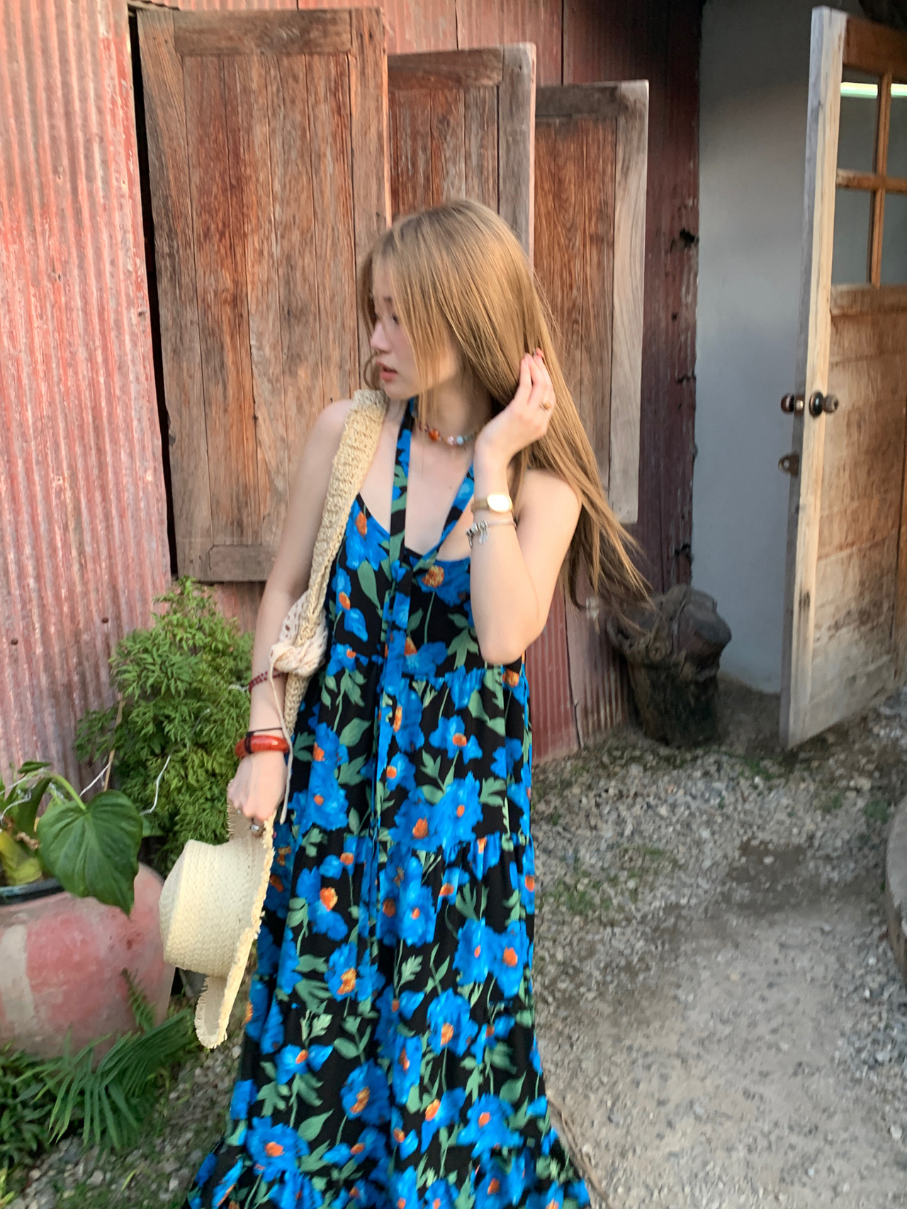 【単品注文】【セットアップ】夏春秋海辺リゾート風 花柄 ノースリーブワンピース+ストール 2点ワンピースセット【SHシリーズ】