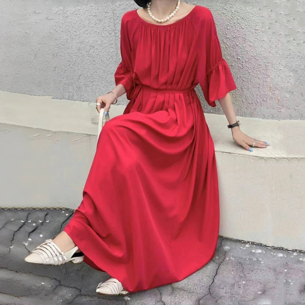 【ワンピース】夏 エレガント プラスサイズ 前後着用可能 半袖ワンピース