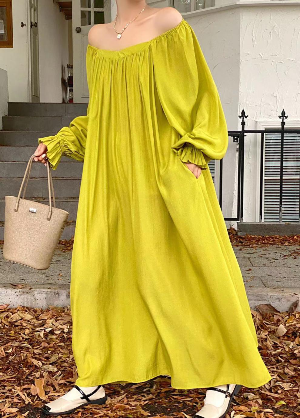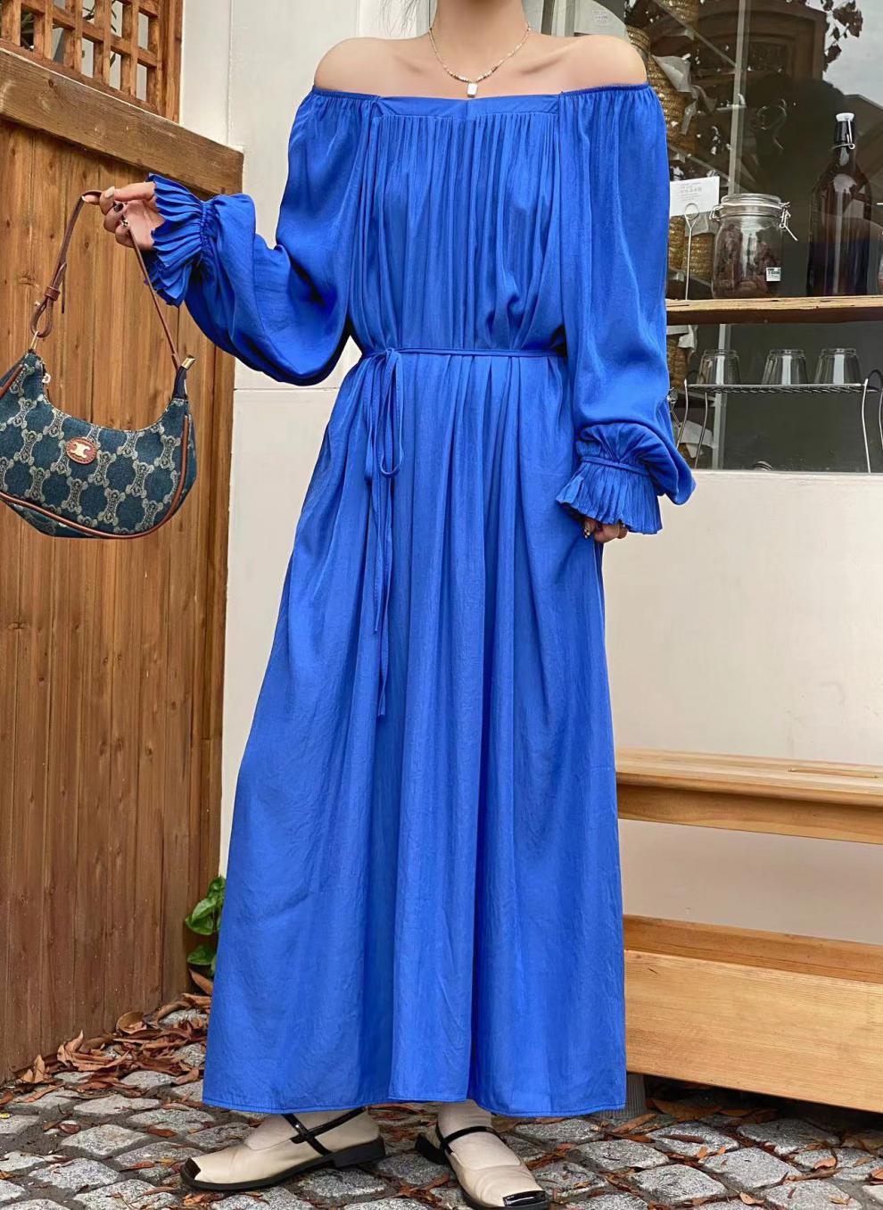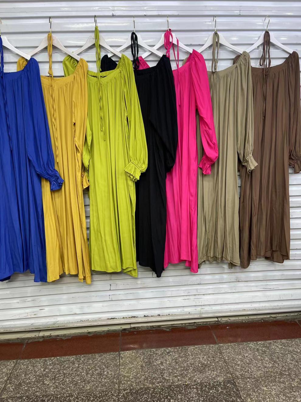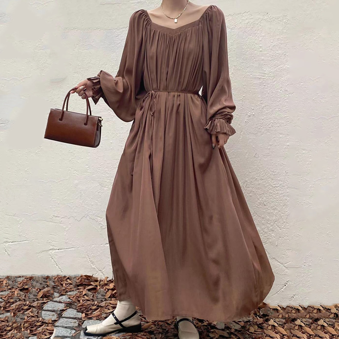 【ワンピース】夏春秋 全7色 韓国風オフショルダー ゆったり シルエットでスリムに見える 長袖ワンピース