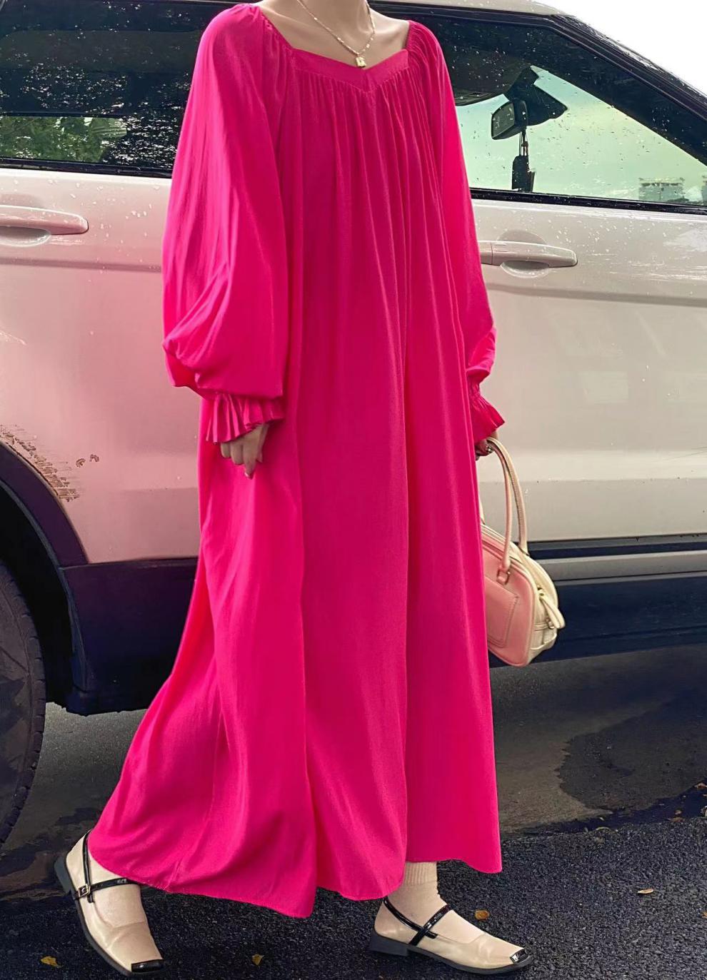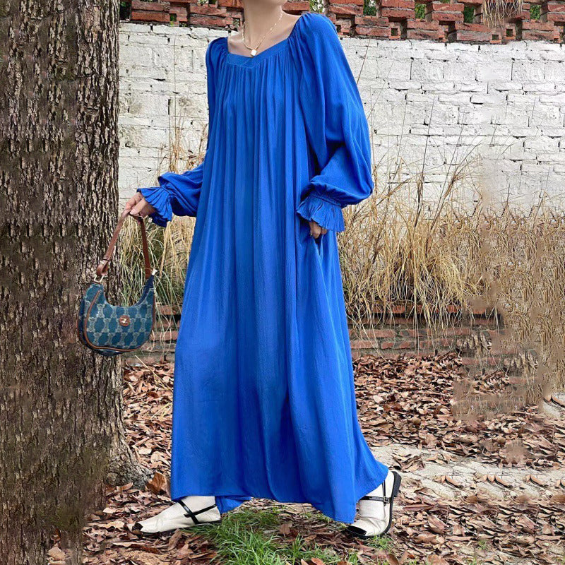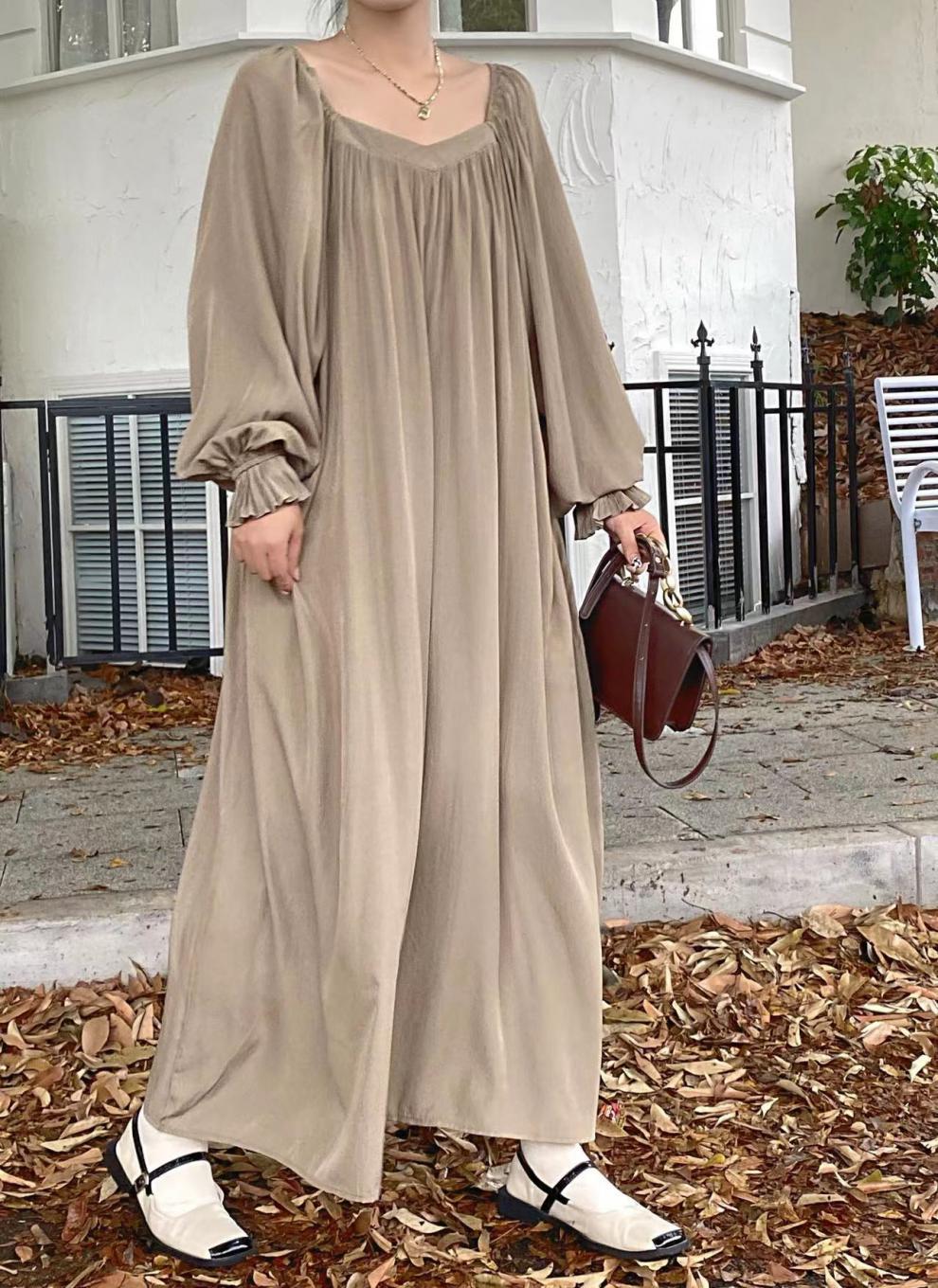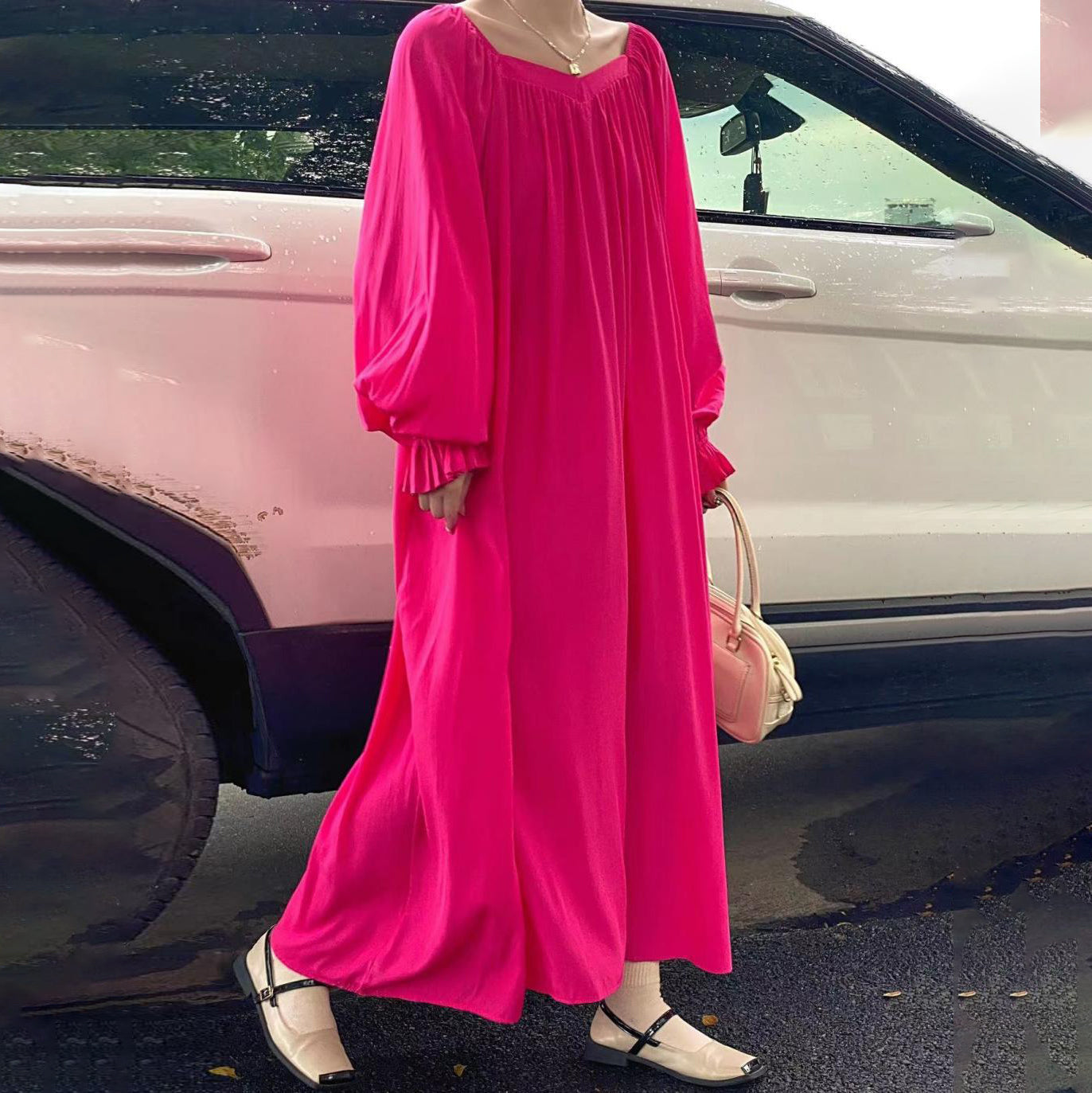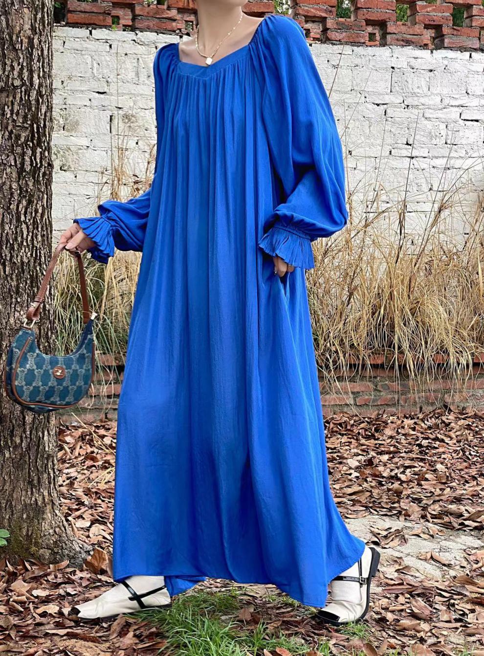 【ワンピース】夏春秋 全7色 韓国風オフショルダー ゆったり シルエットでスリムに見える 長袖ワンピース