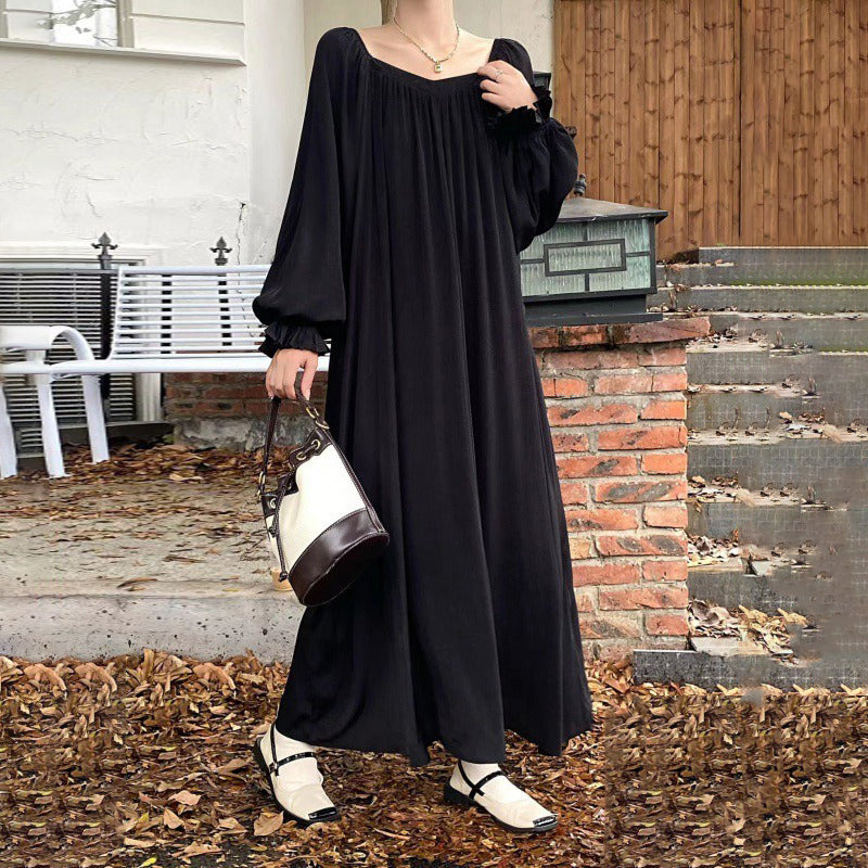 【商品名】【ワンピース】韓国風オフショルダー ゆったり シルエットでスリムに見える 長袖ワンピース
