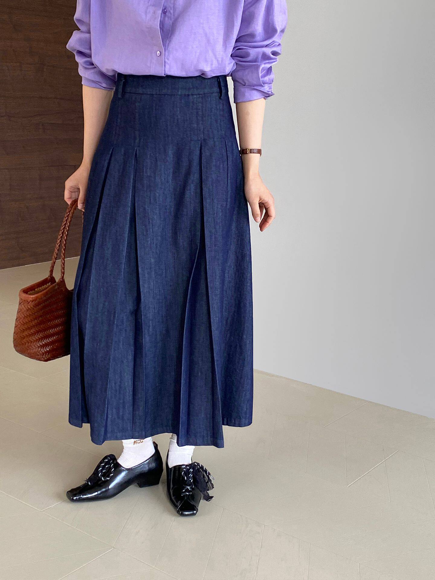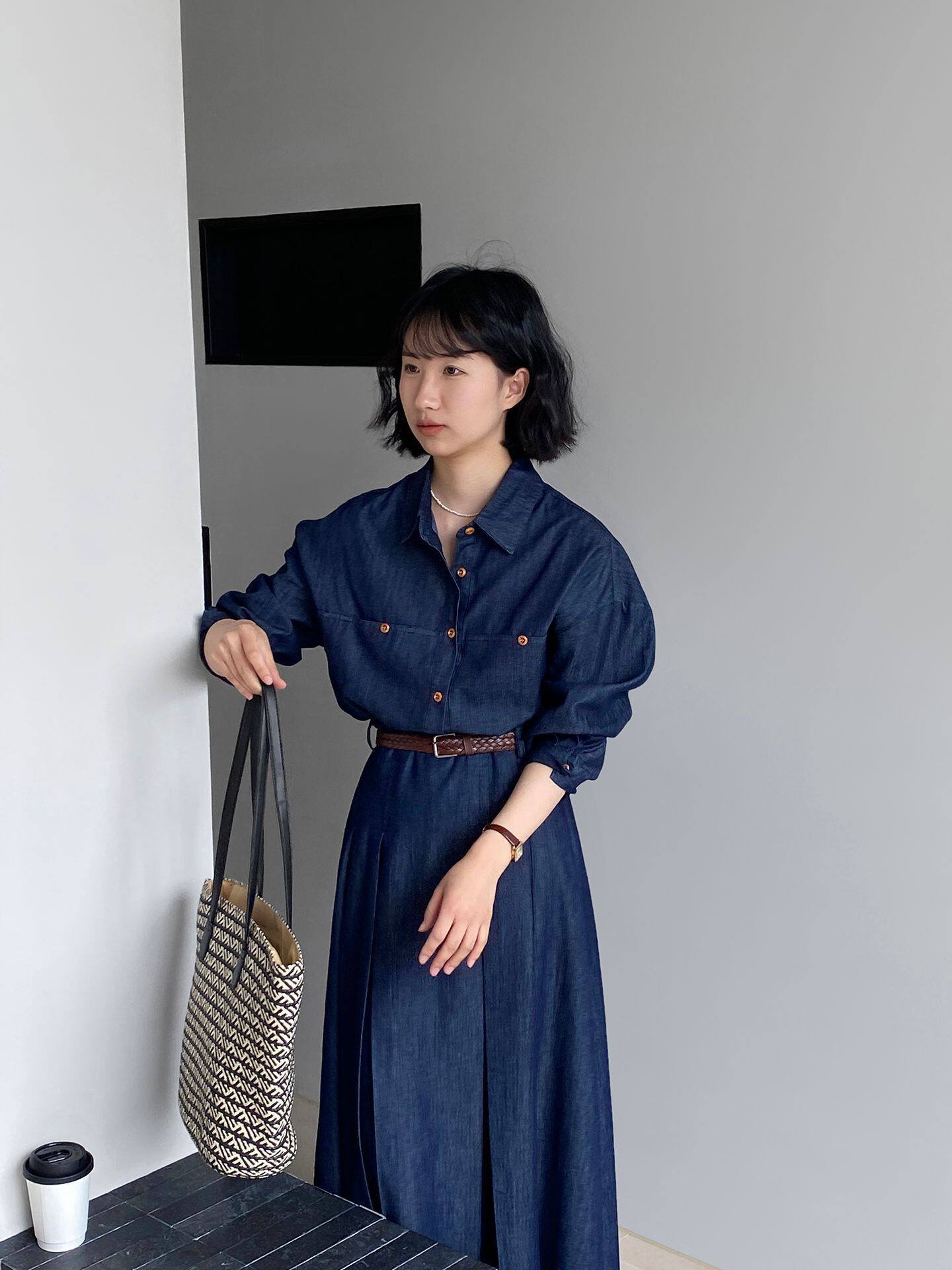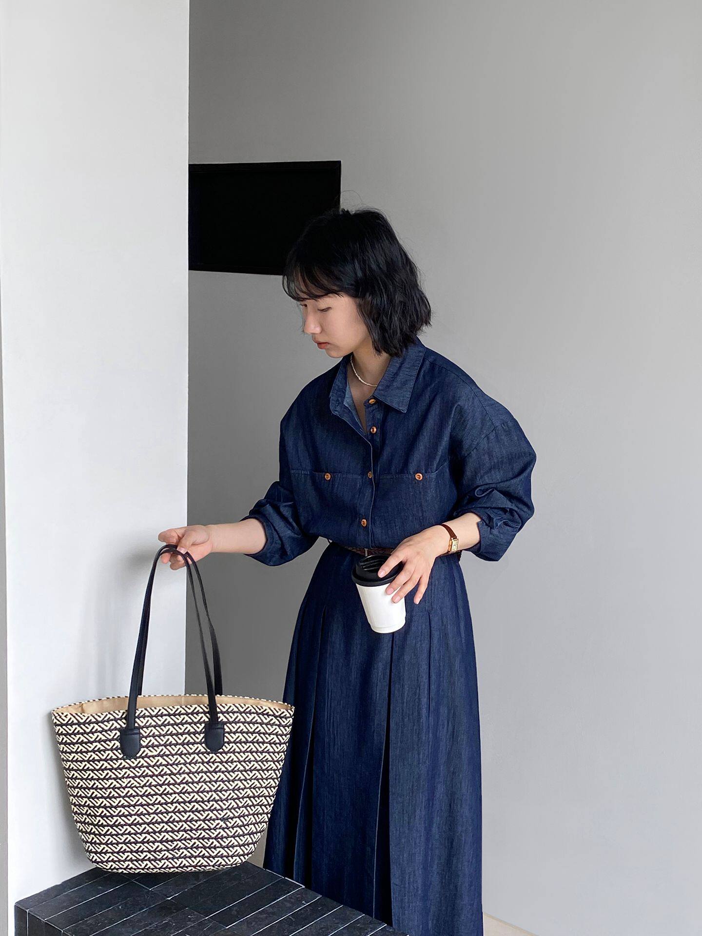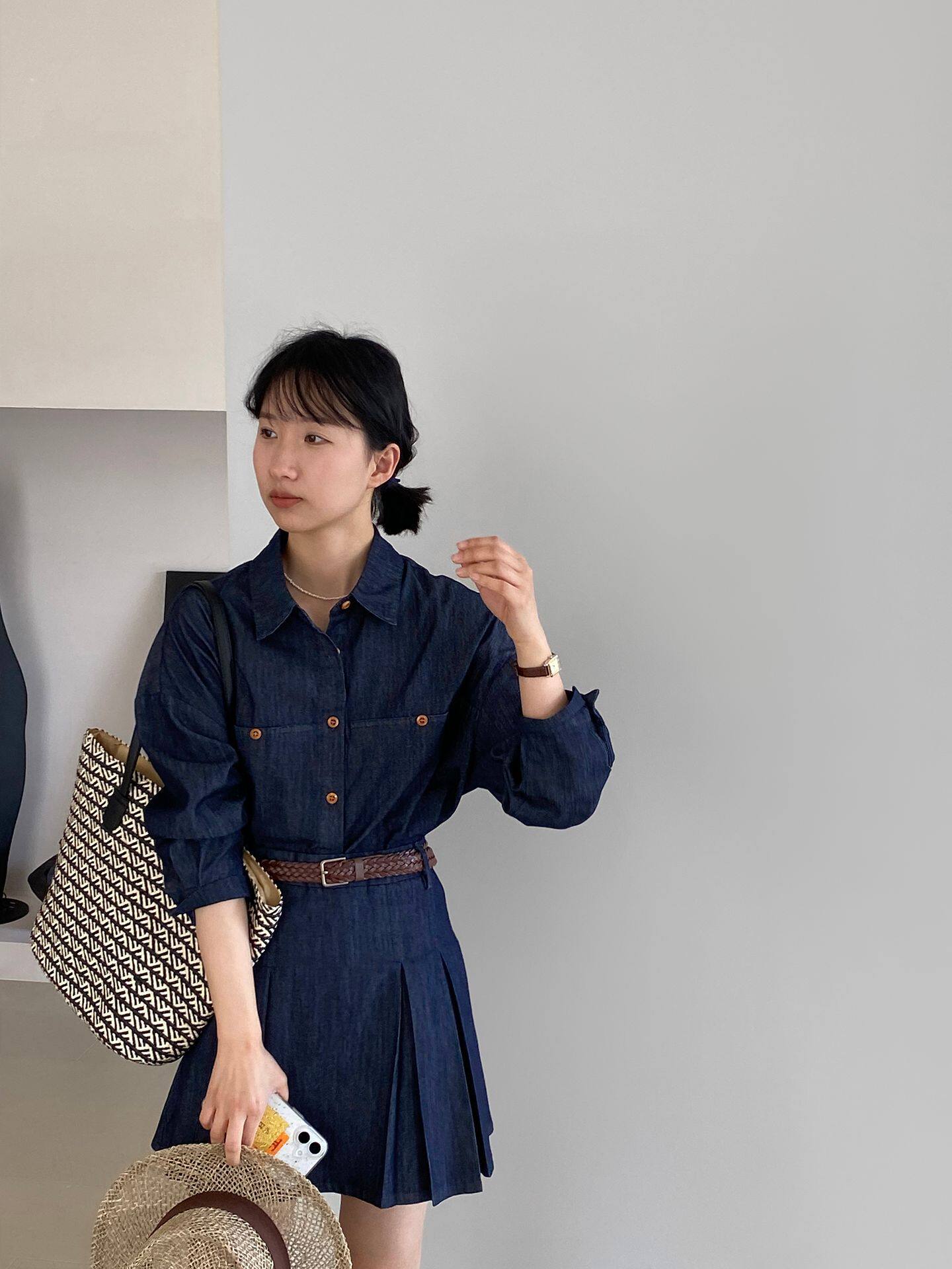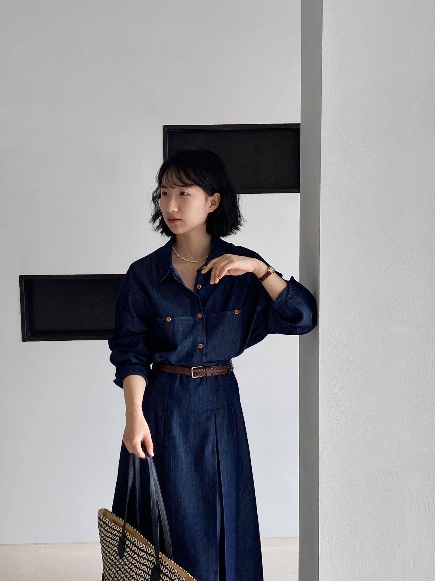 【単品注文】【セットアップ】春秋 レトロ 通勤 デニムシャツ + ハイウエスト プリーツスカート 上下セット【シリーズ】