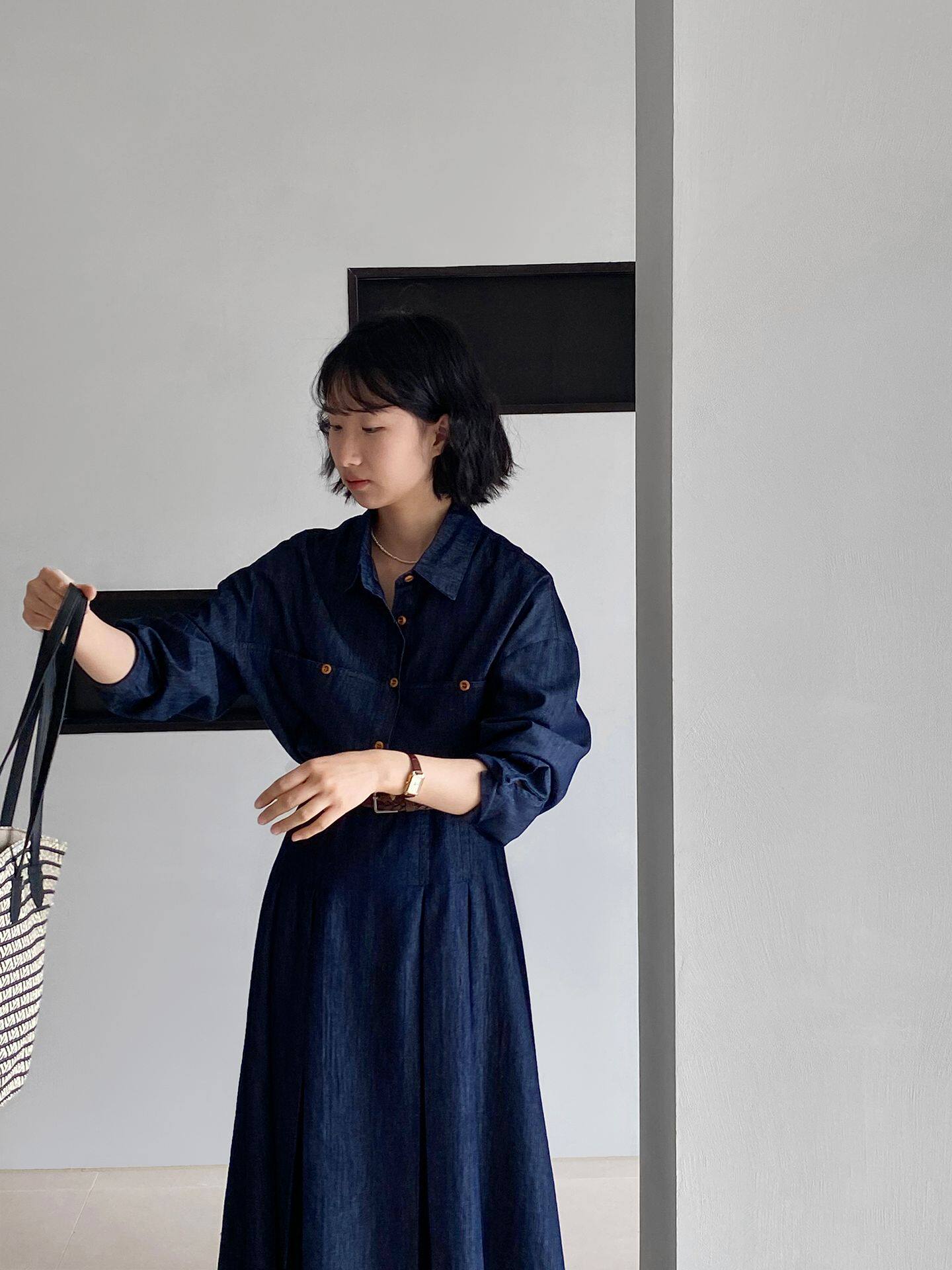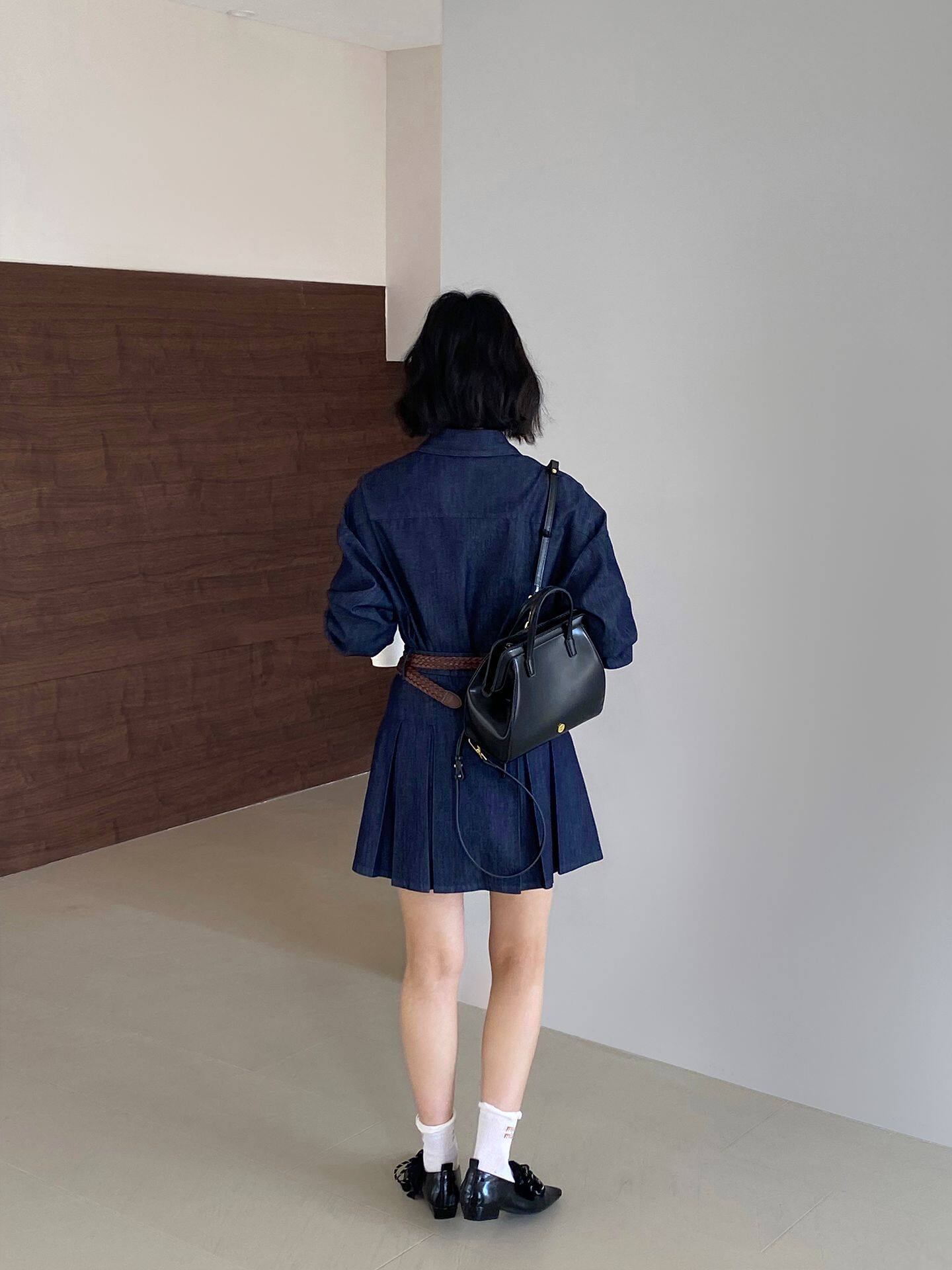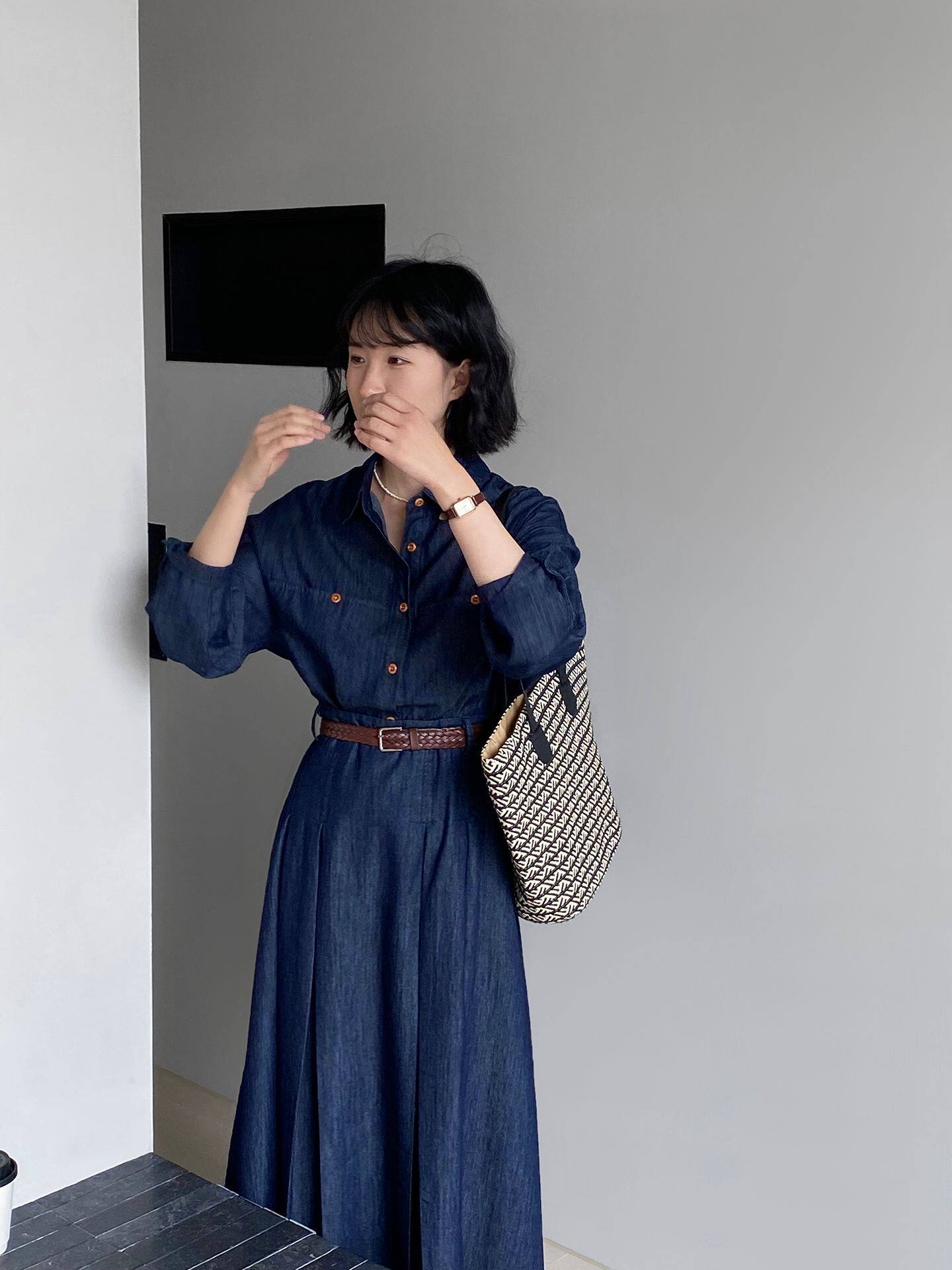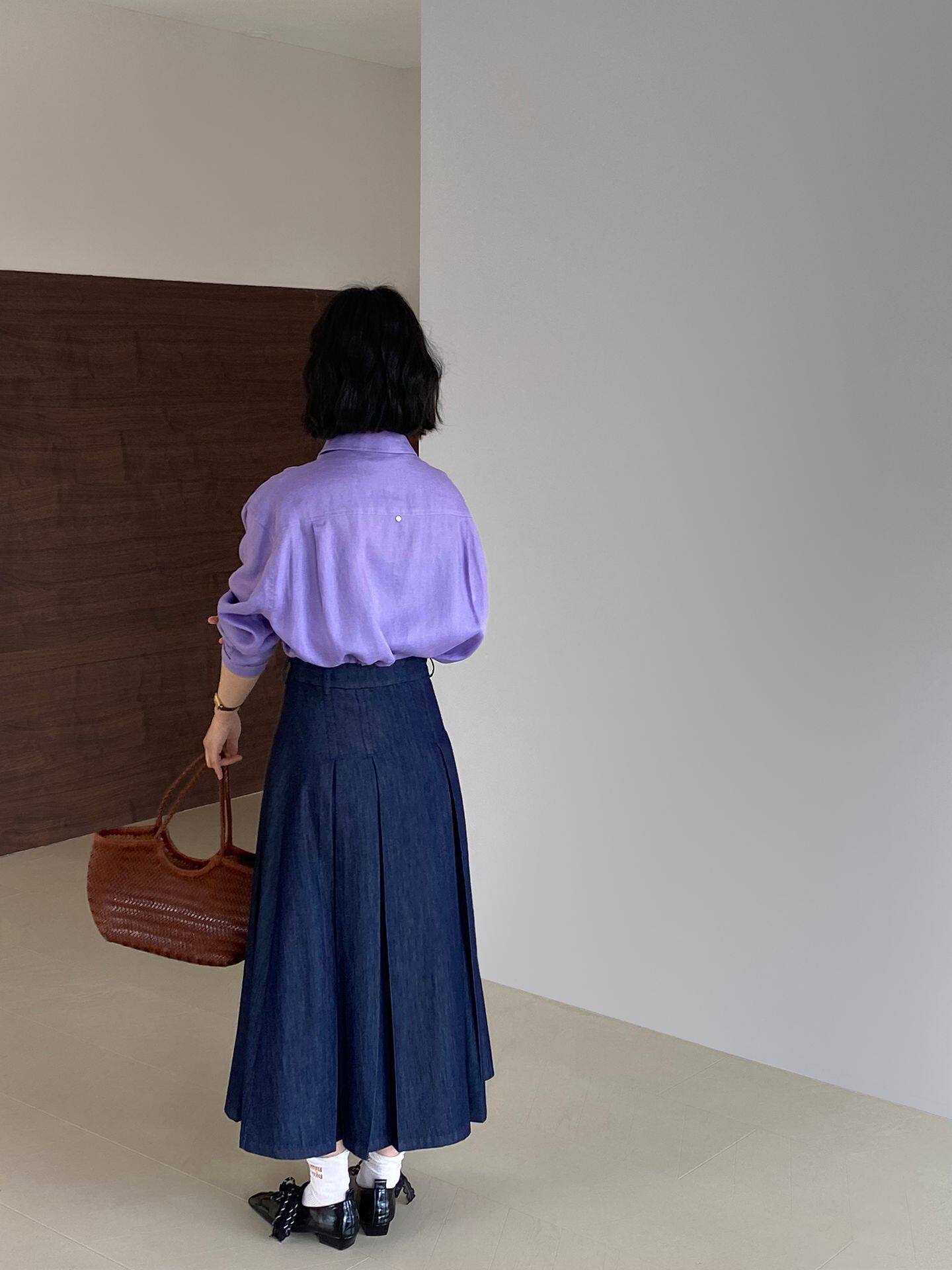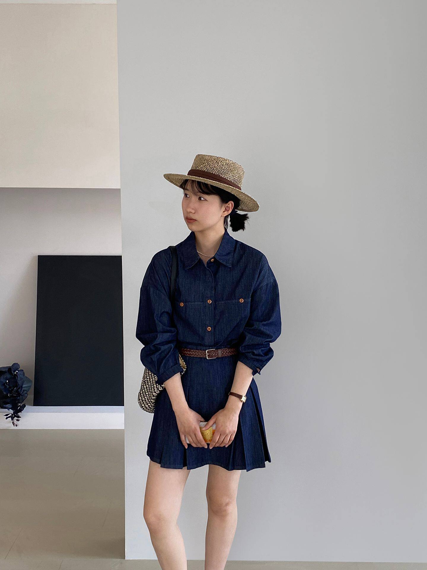 【単品注文】【セットアップ】春秋 レトロ 通勤 デニムシャツ + ハイウエスト プリーツスカート 上下セット【シリーズ】