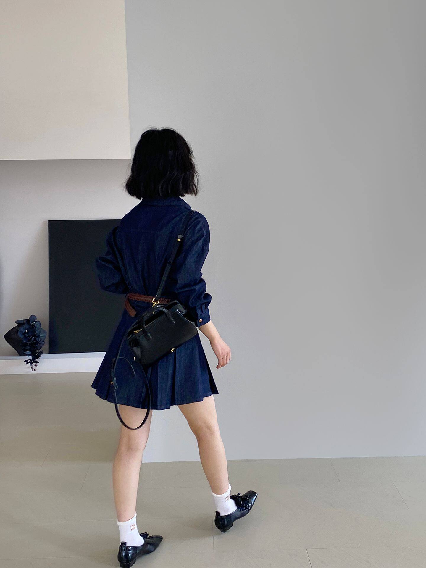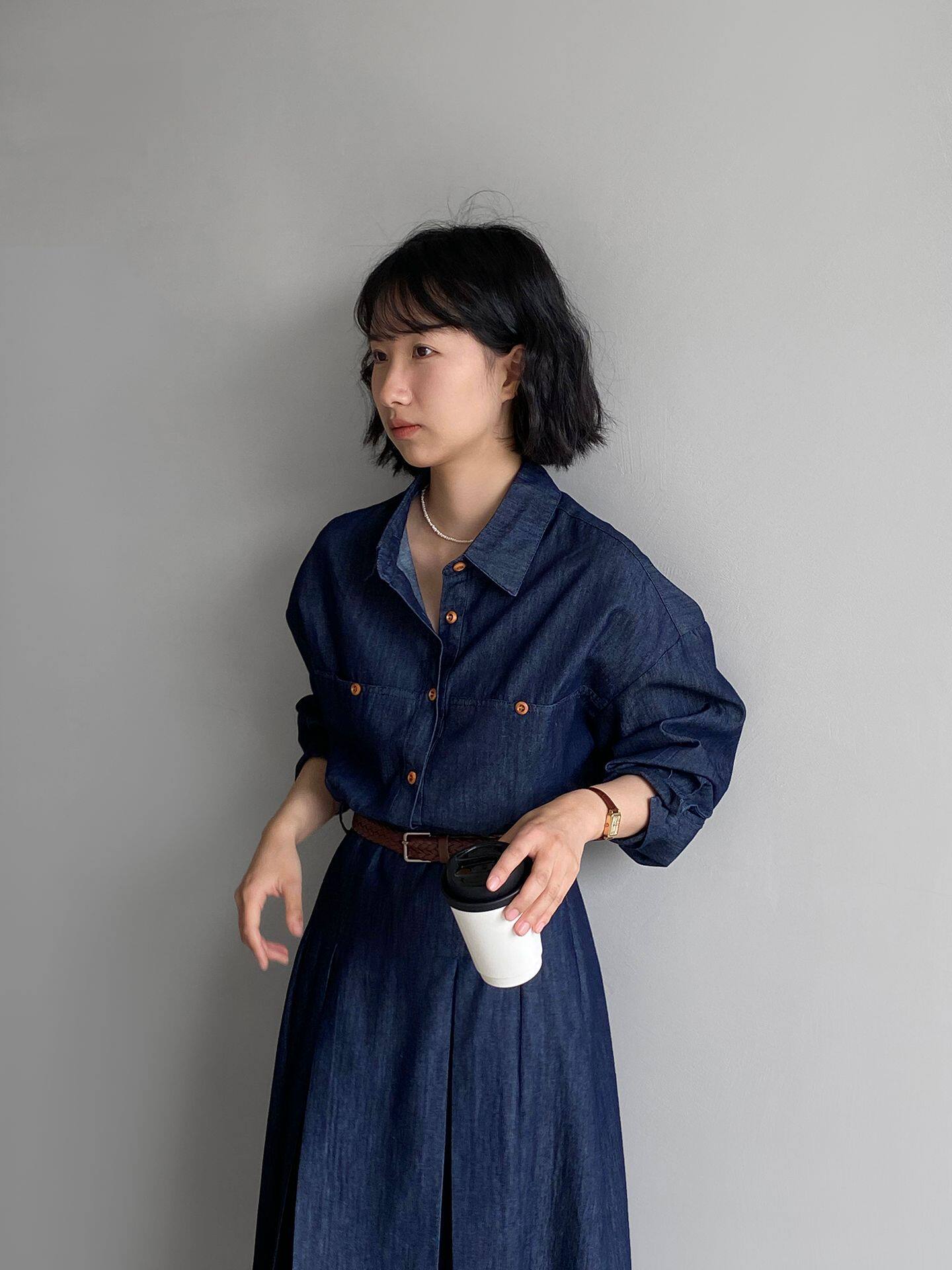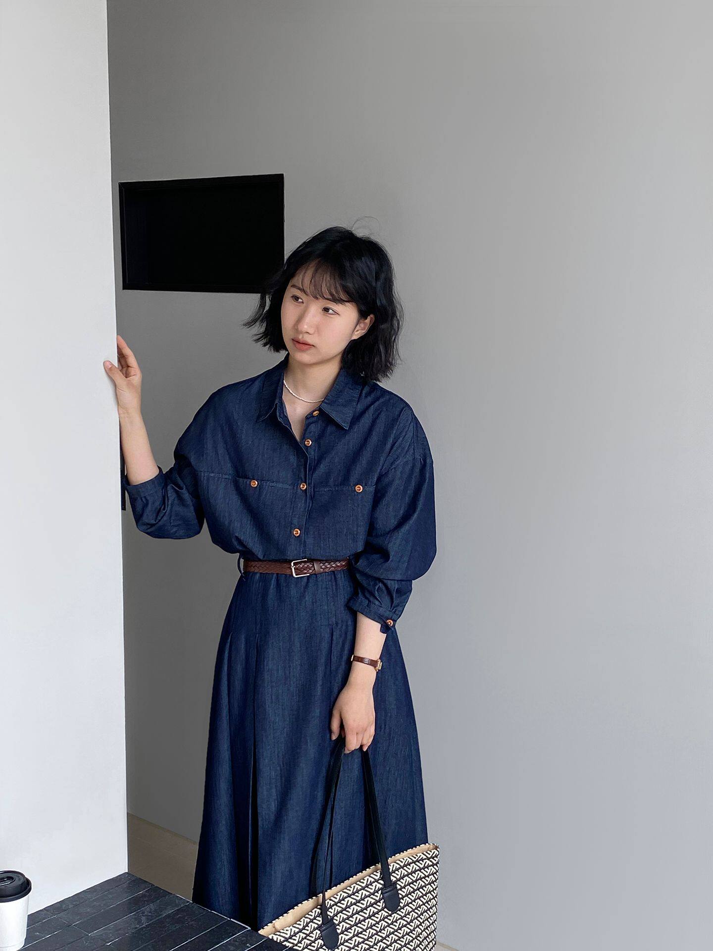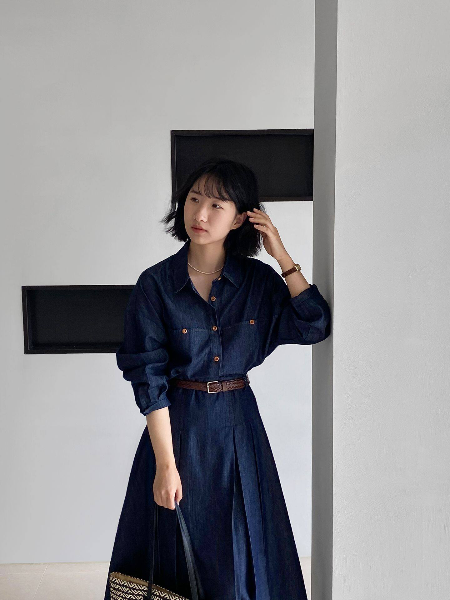 【単品注文】【セットアップ】春秋 レトロ 通勤 デニムシャツ + ハイウエスト プリーツスカート 上下セット【シリーズ】