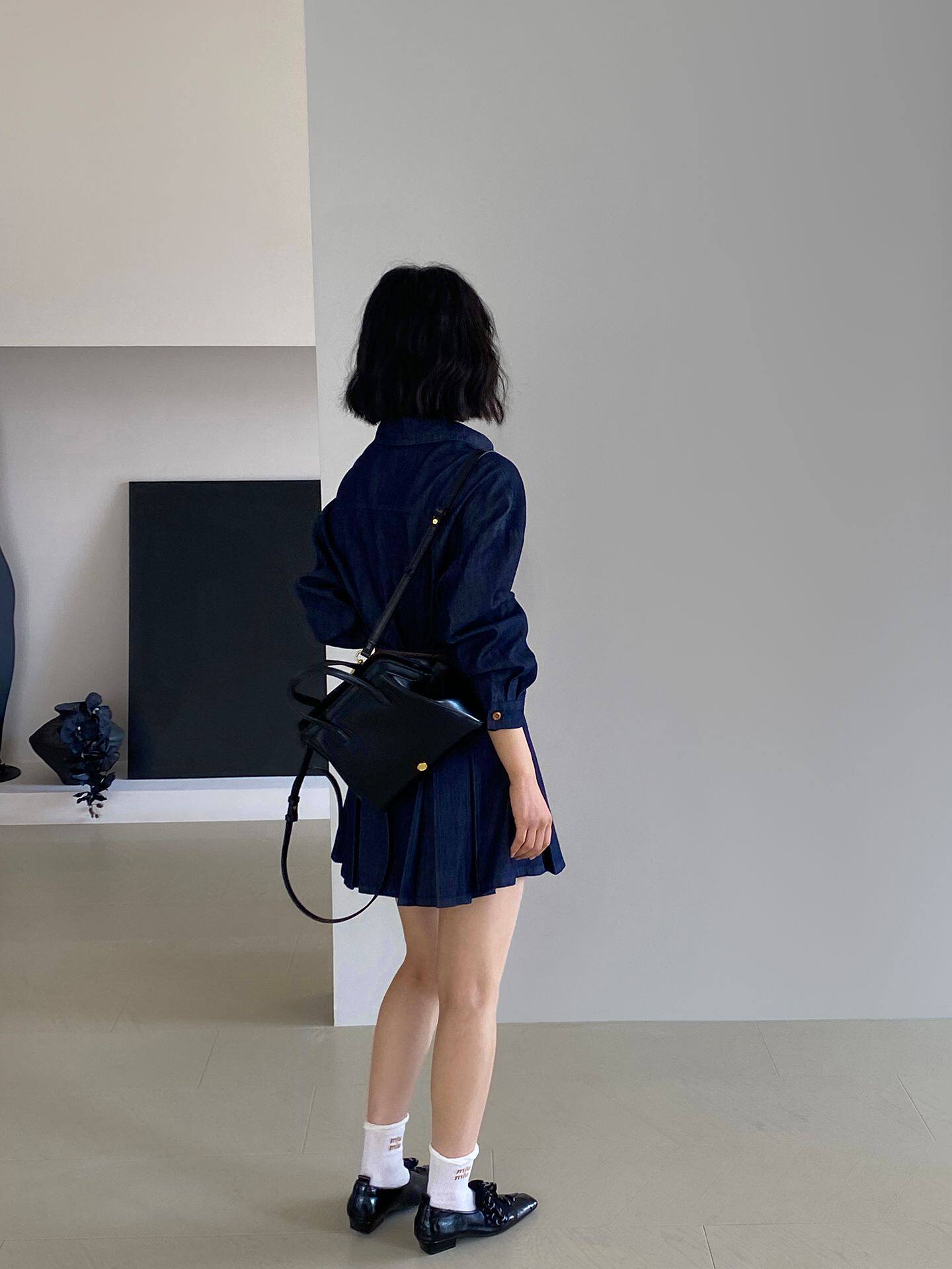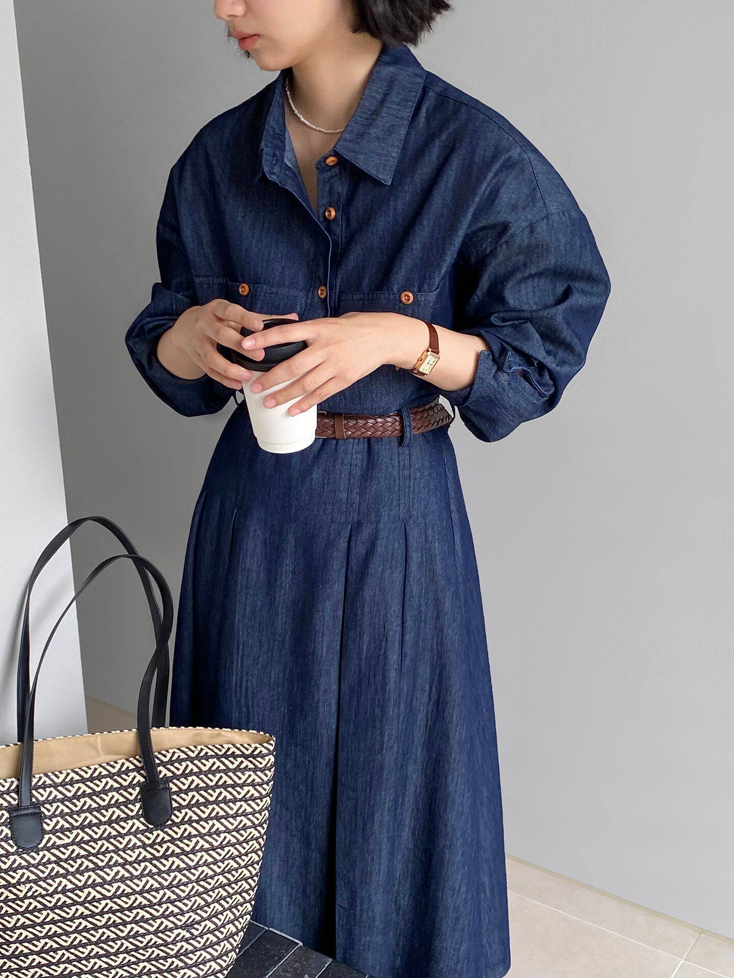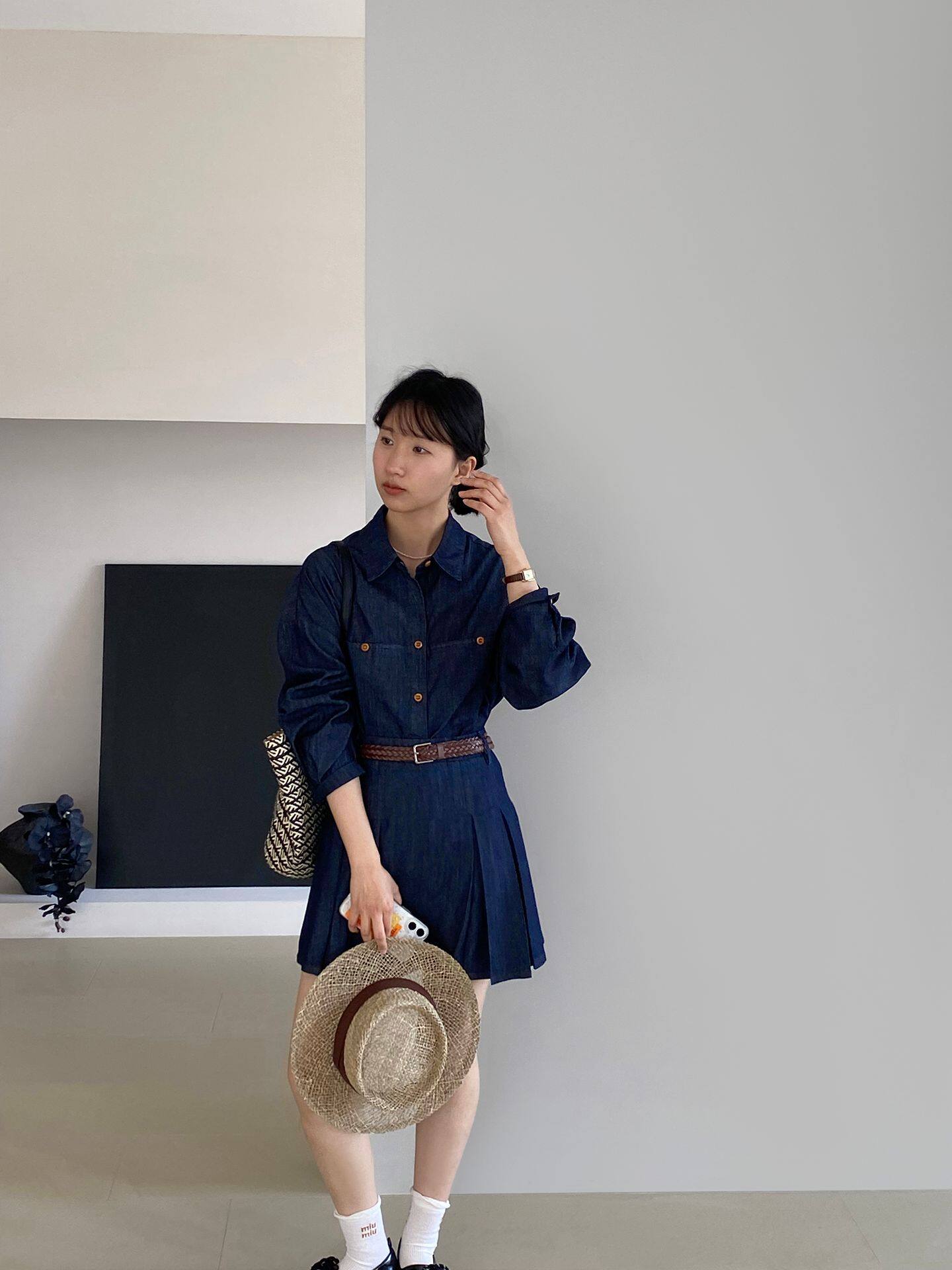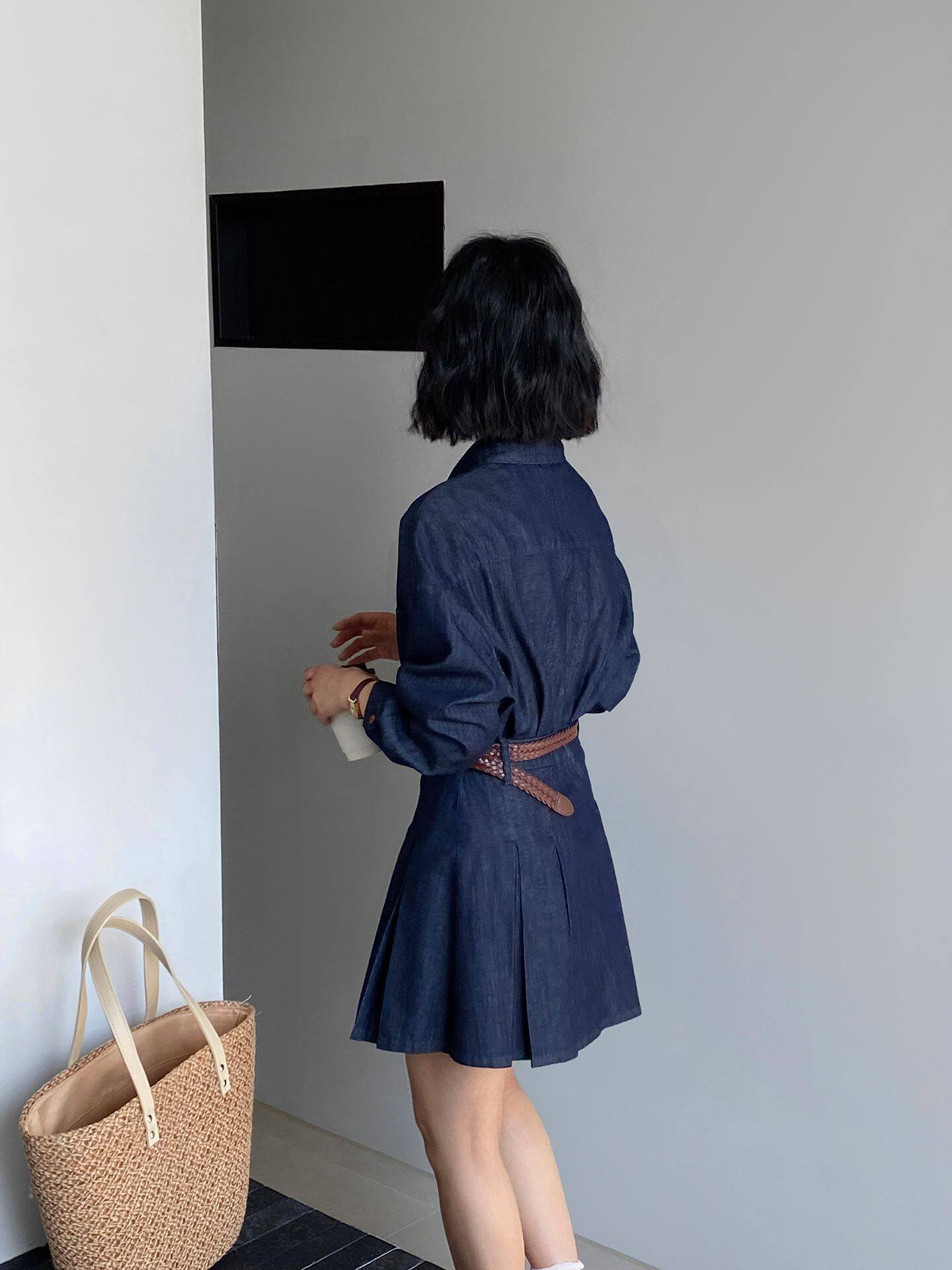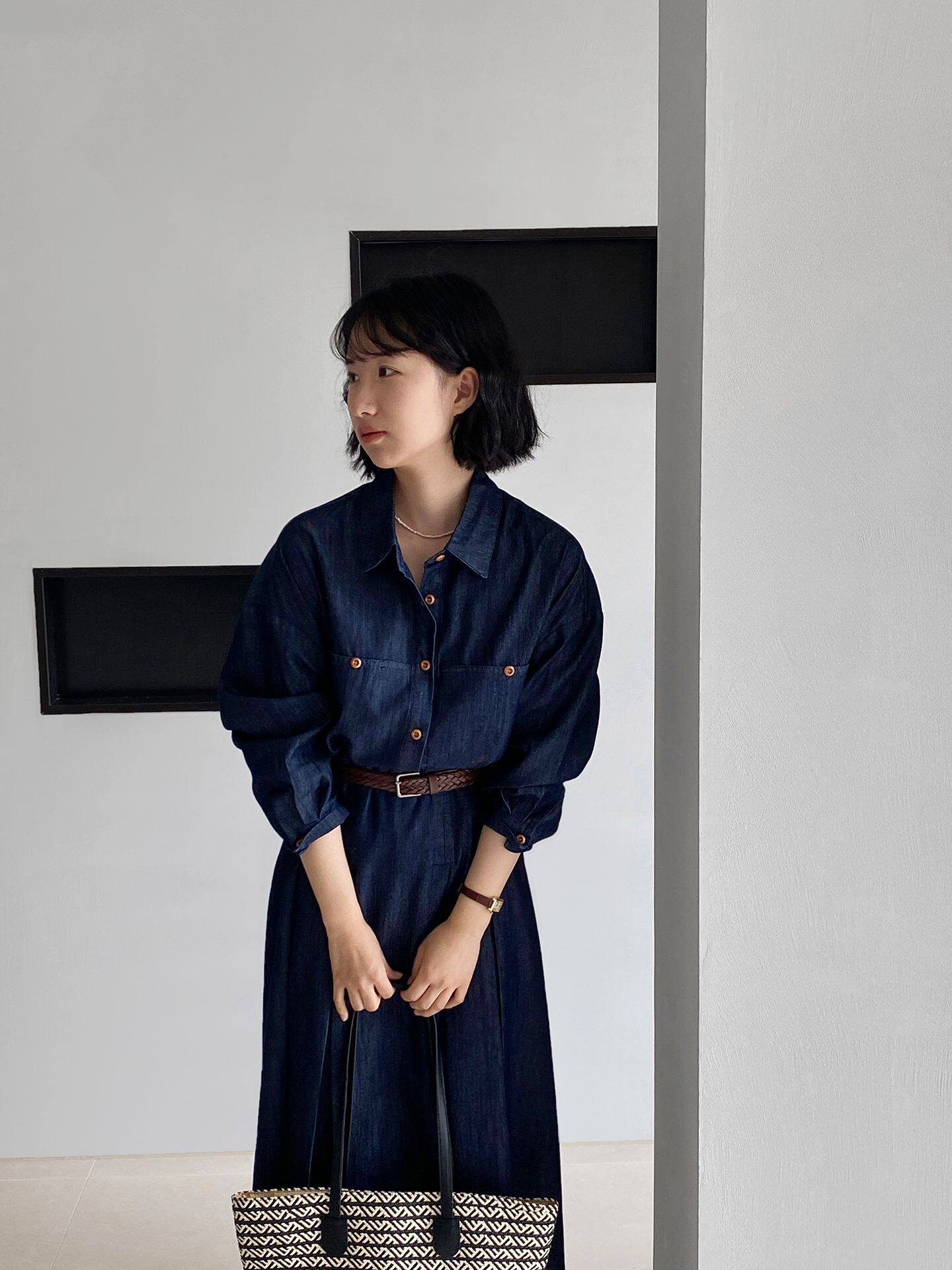 【単品注文】【セットアップ】春秋 レトロ 通勤 デニムシャツ + ハイウエスト プリーツスカート 上下セット【シリーズ】