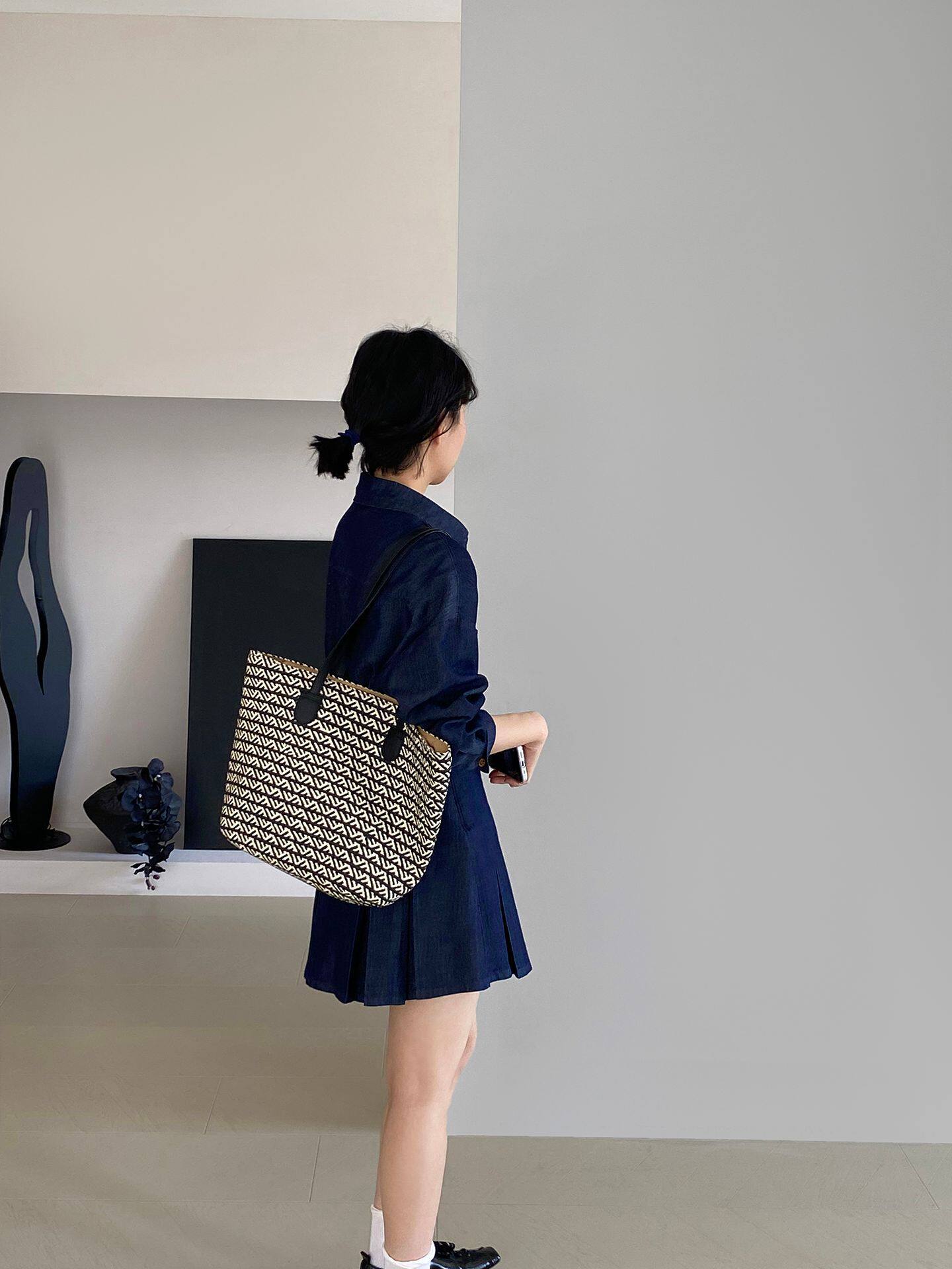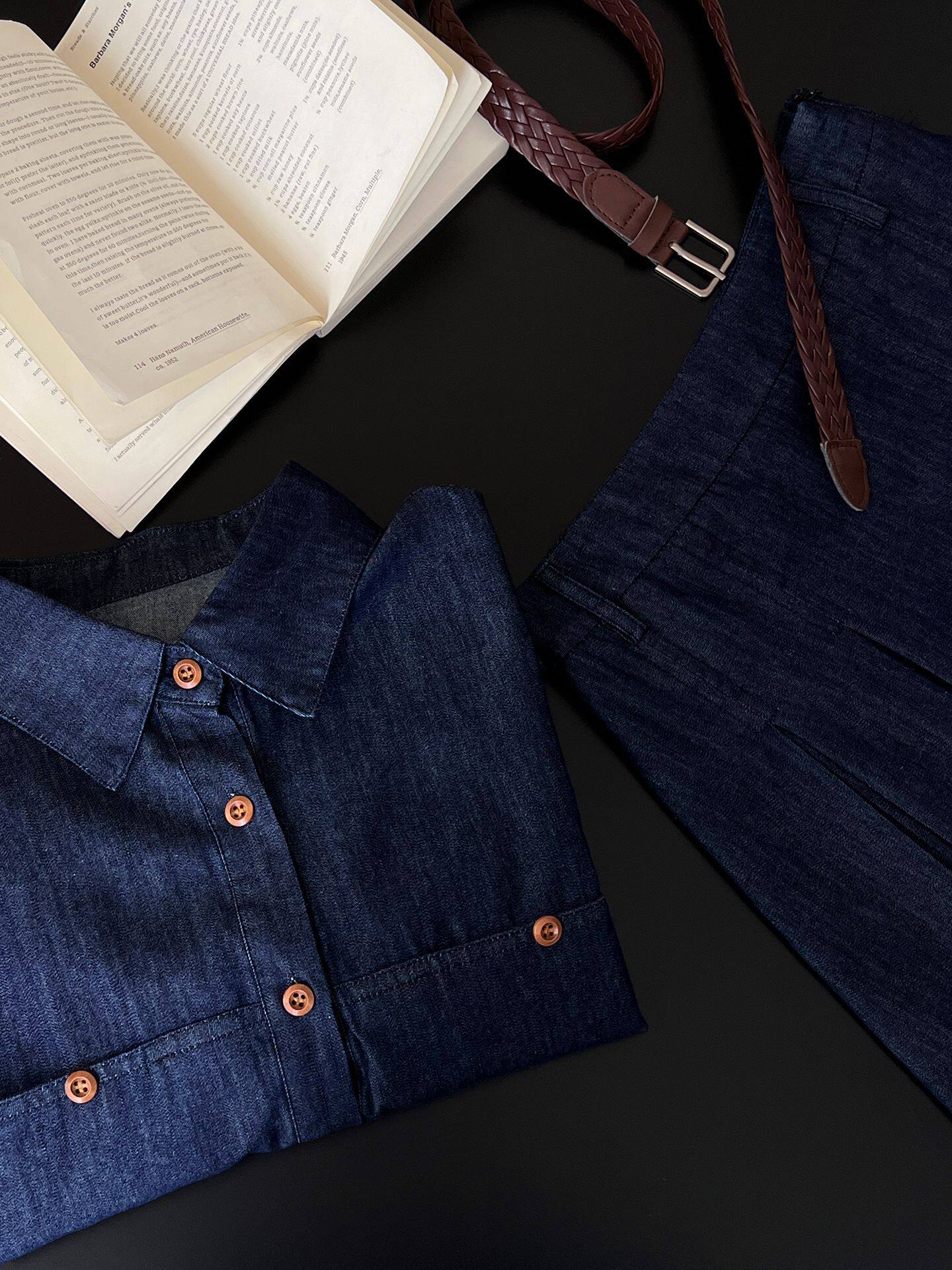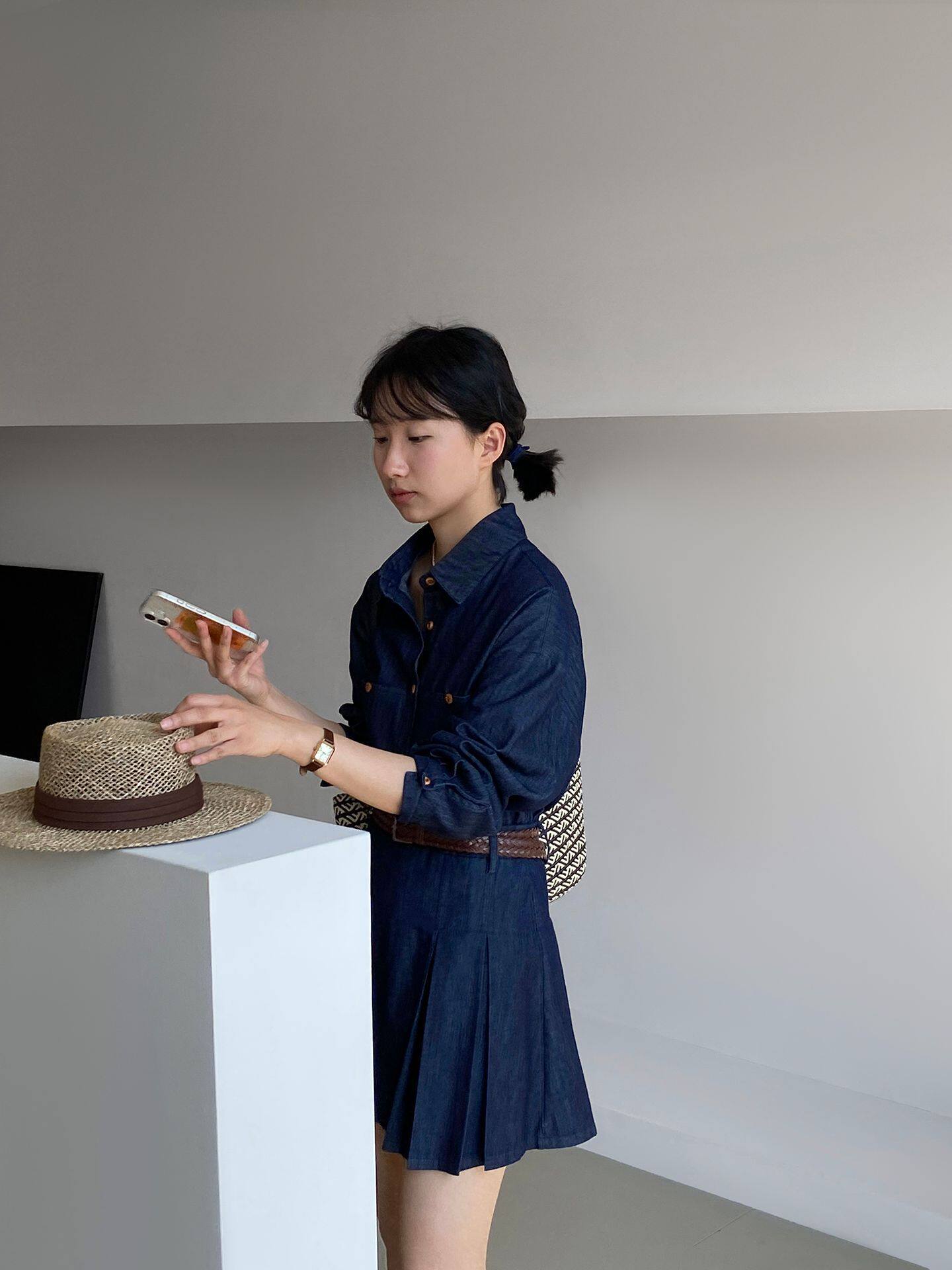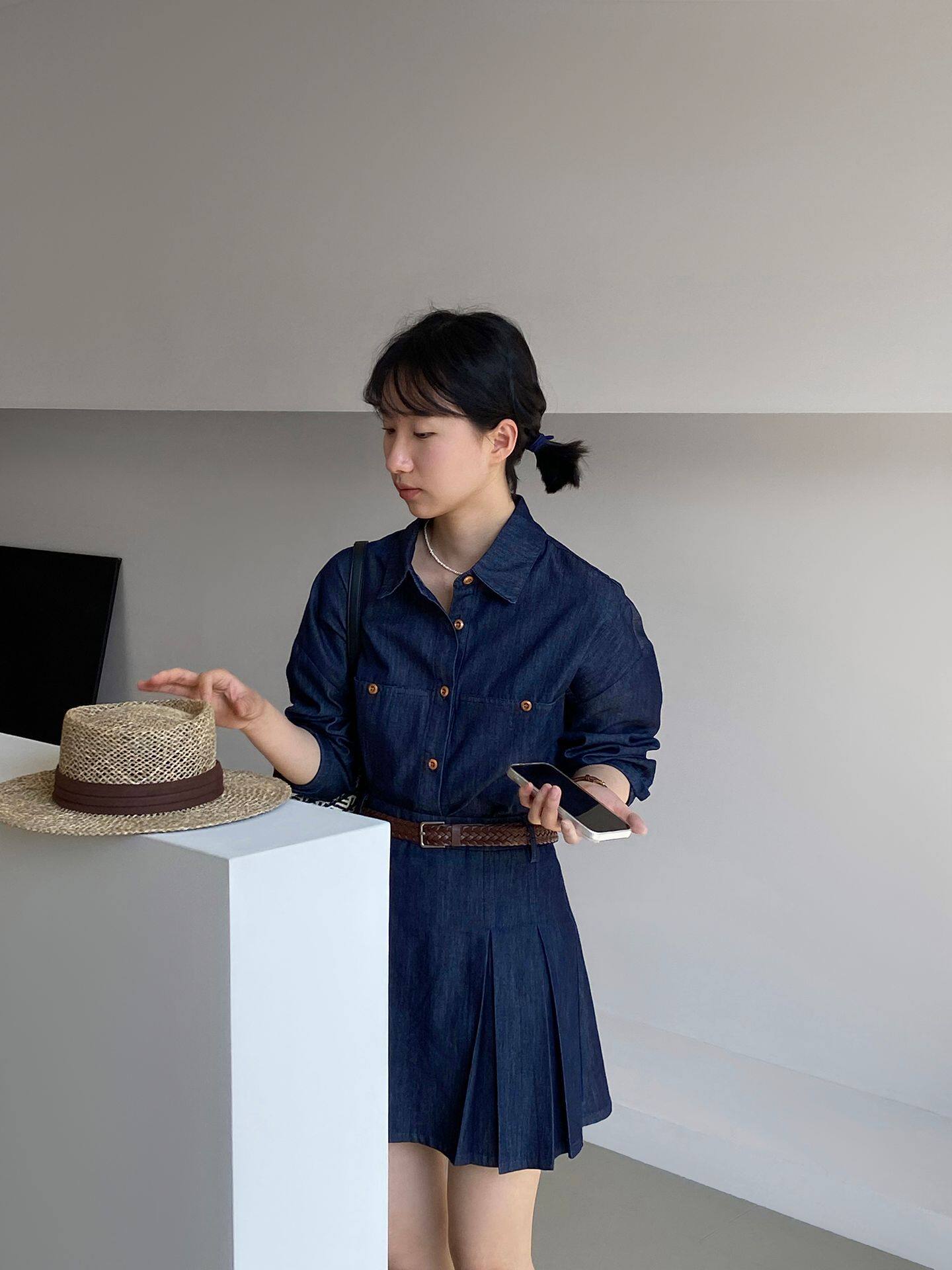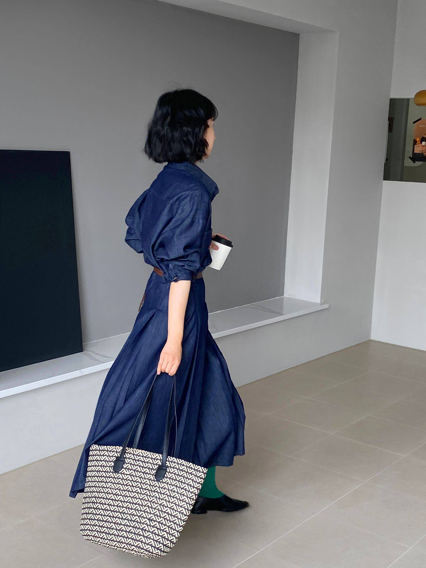 【単品注文】【セットアップ】春秋 レトロ 通勤 デニムシャツ + ハイウエスト プリーツスカート 上下セット【シリーズ】