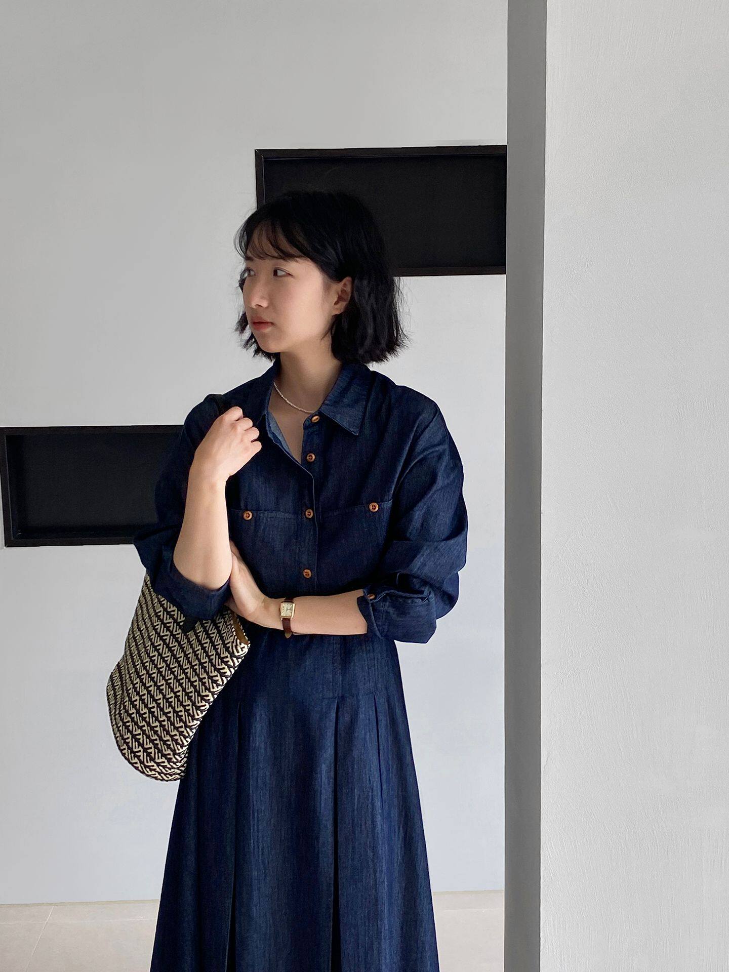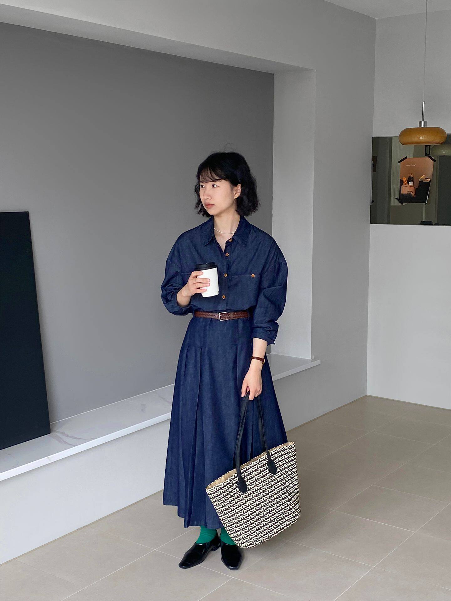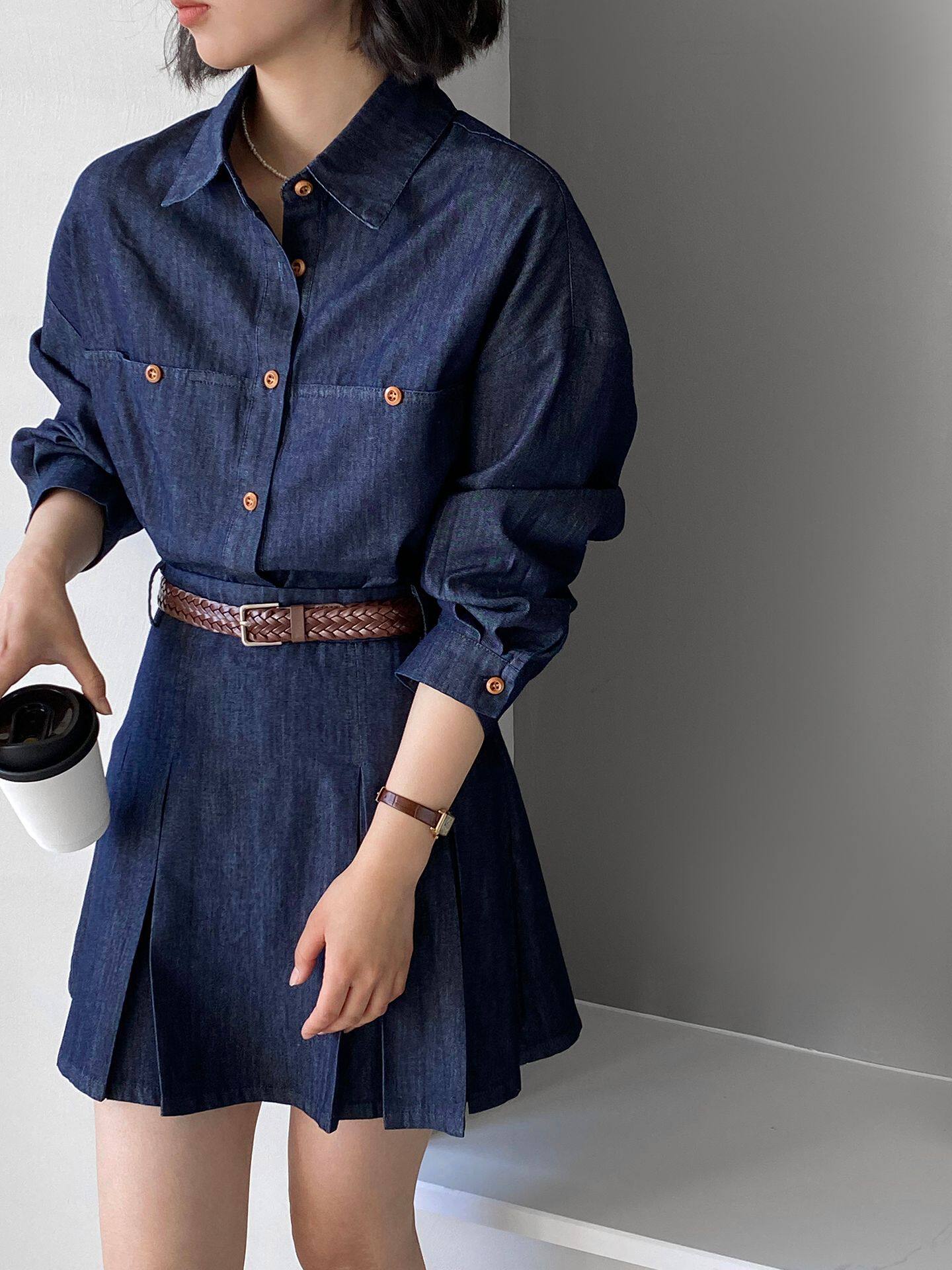 【商品名】【ボトムス】春秋 レトロ 通勤 デニムシャツ + ハイウエスト プリーツスカート 上下セット【シリーズ】