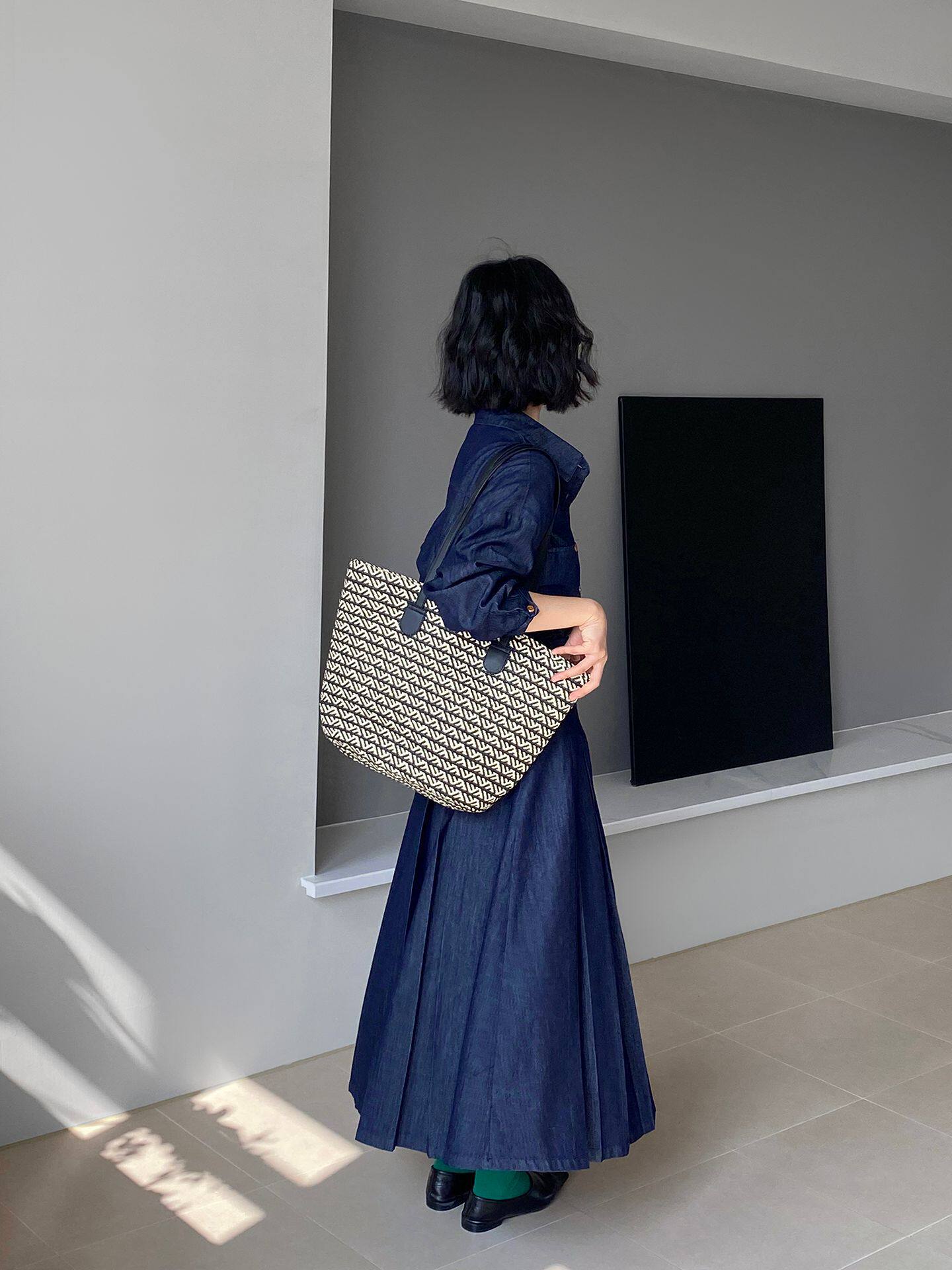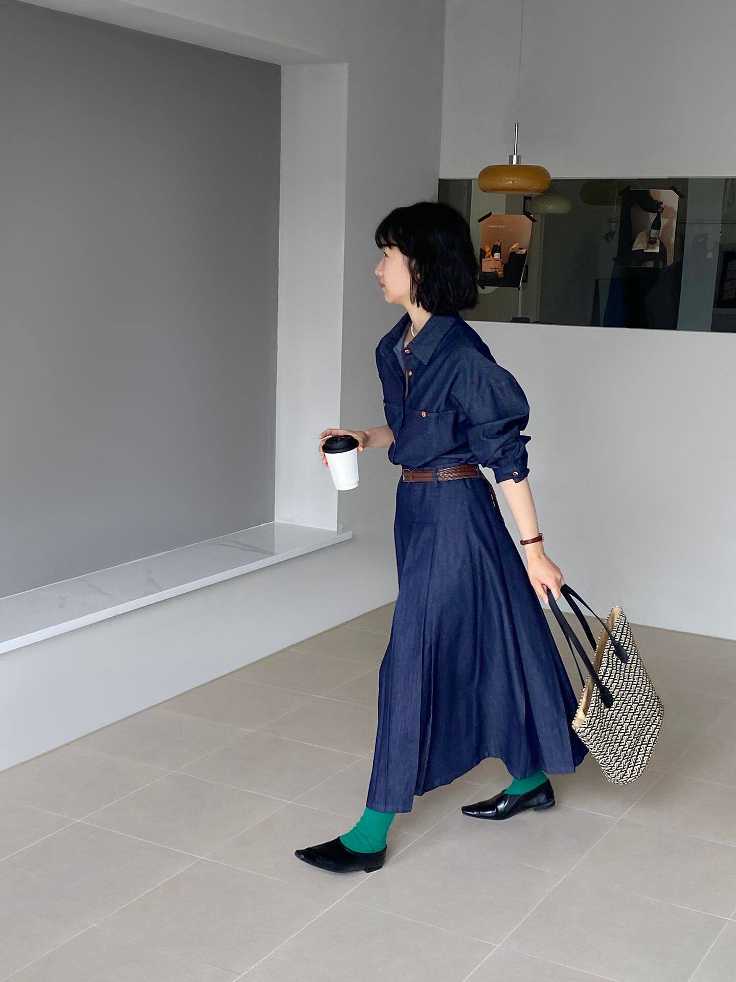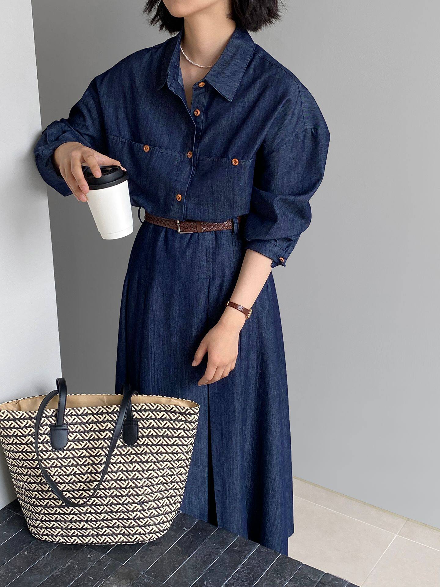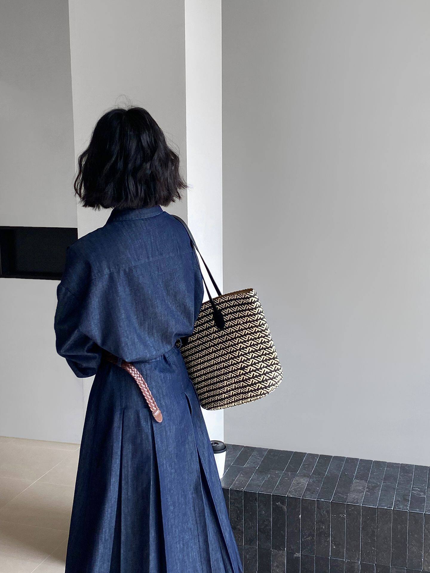 【商品名】【ボトムス】春秋 レトロ 通勤 デニムシャツ + ハイウエスト プリーツスカート 上下セット【シリーズ】