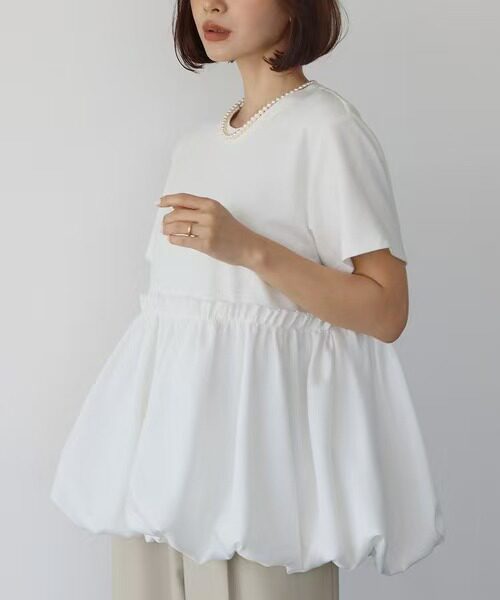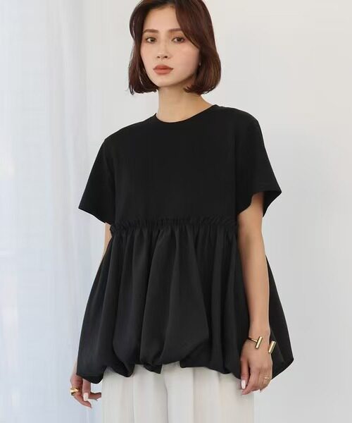 【商品名】【トップス 】夏 切り替え ラウンドネック Tシャツ