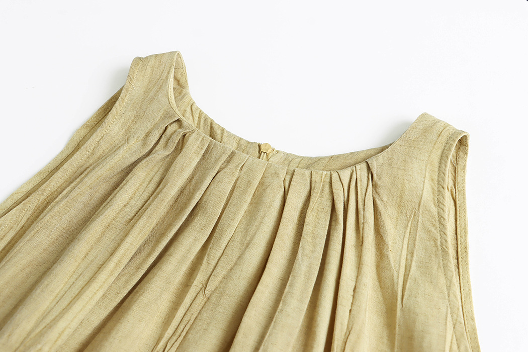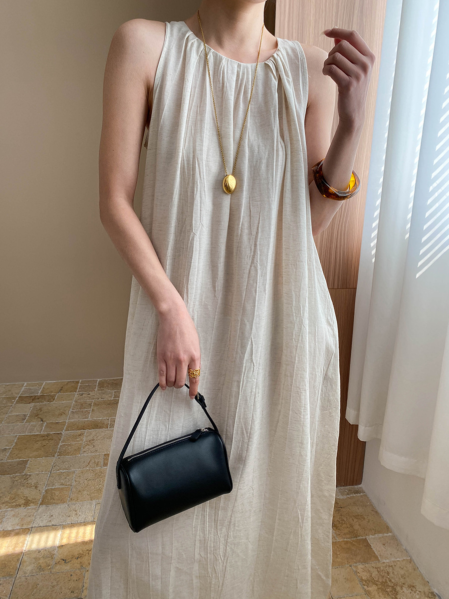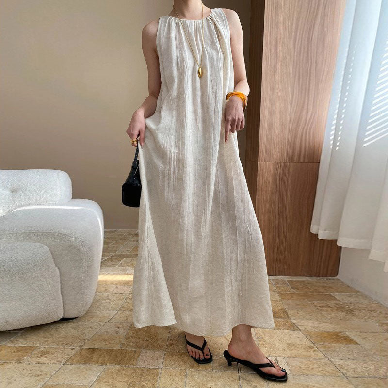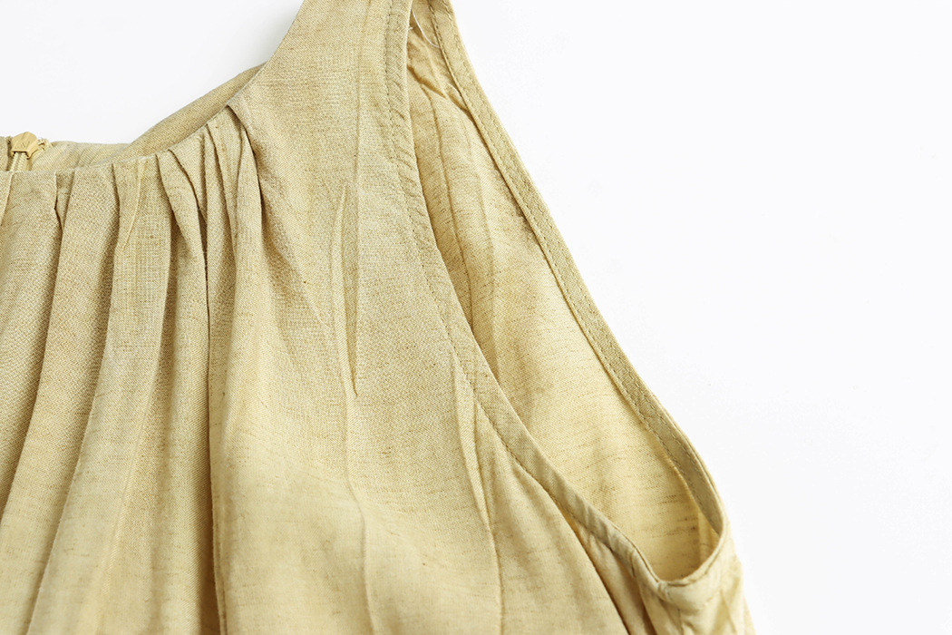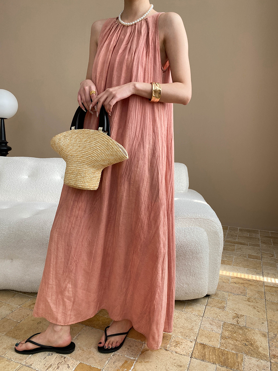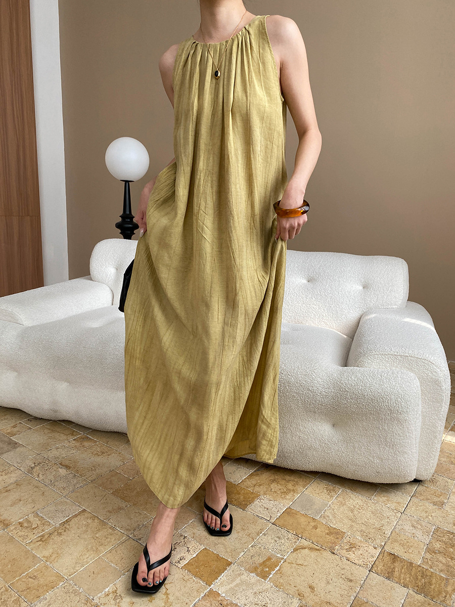 【ワンピース】リラックス感 ホリデースタイル クルーネック ギャザーデザイン ノースリーブワンピース【SNシリーズ】