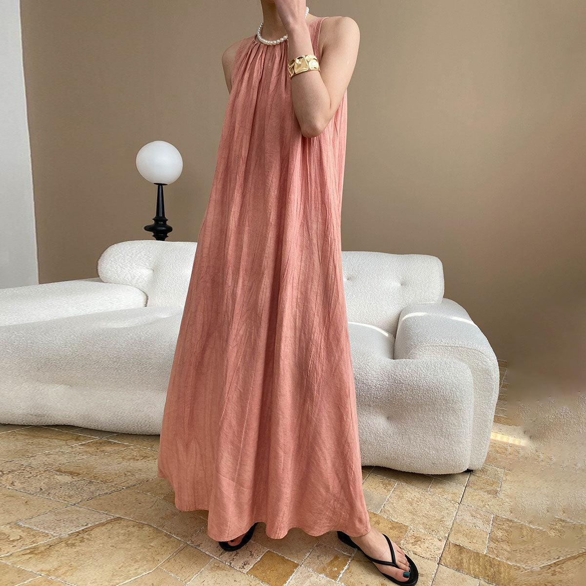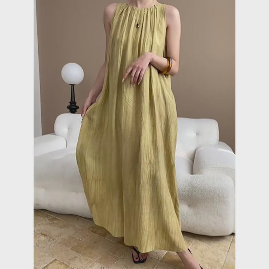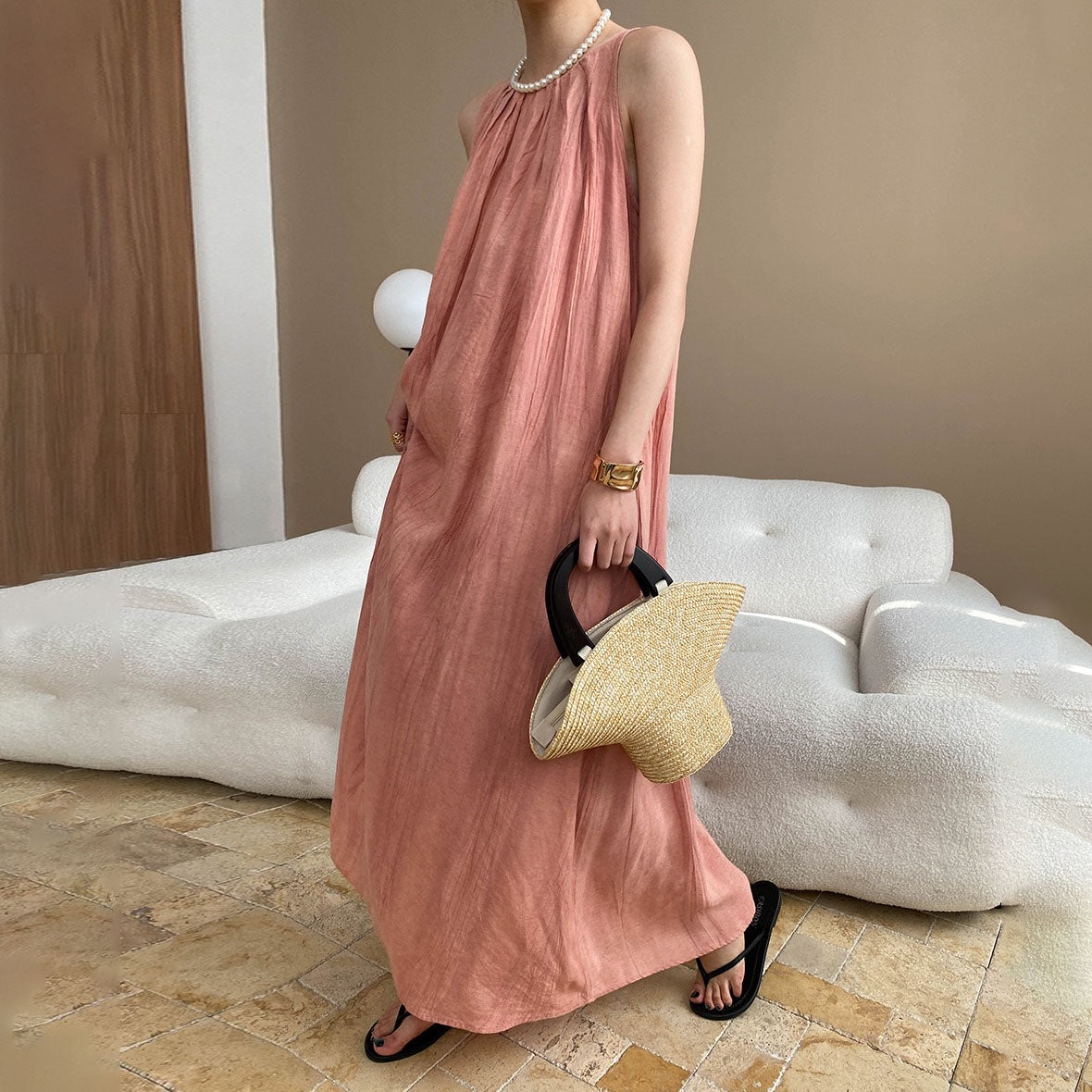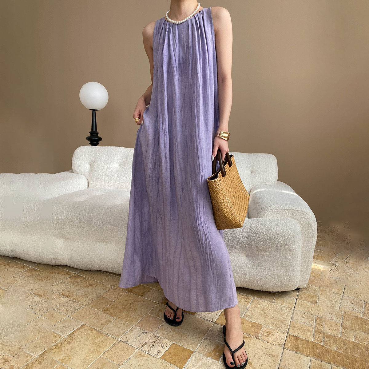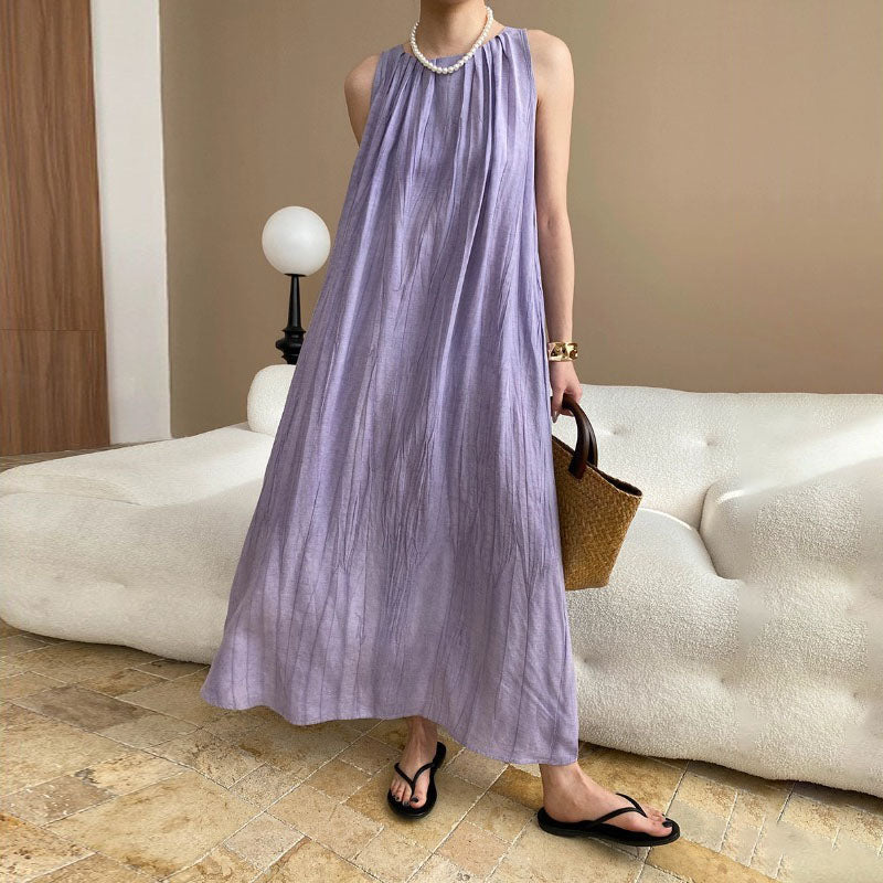 【ワンピース】リラックス感 ホリデースタイル クルーネック ギャザーデザイン ノースリーブワンピース【SNシリーズ】
