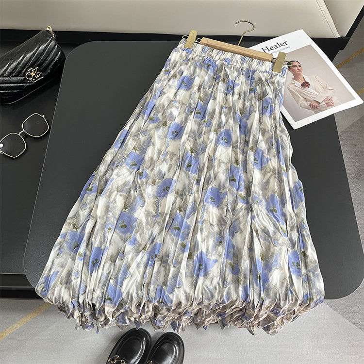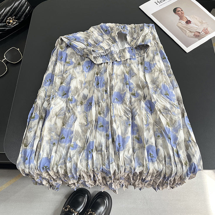 【商品名】【ボトムス】夏 ハイウエスト レトロ 体型カバー 細見え グラデーション とろみ感スカート 【SHシリーズ】