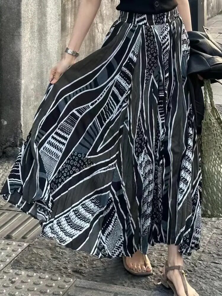 【商品名】【ボトムス】春夏 ハイエンド おしゃれ プリント 高級感 ミモレ丈スカート【SHシリーズ】