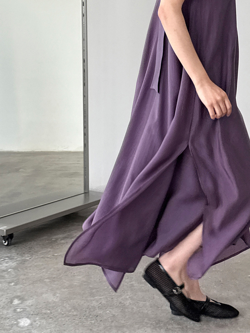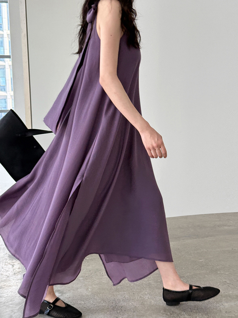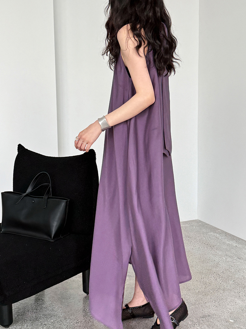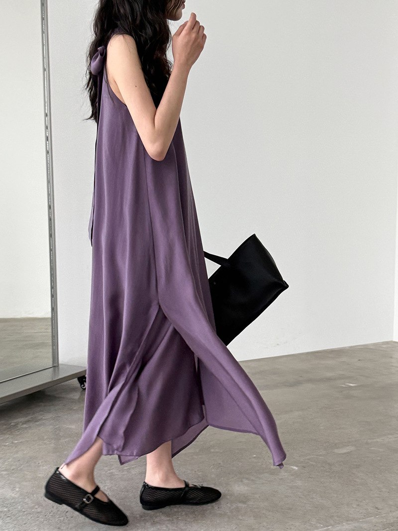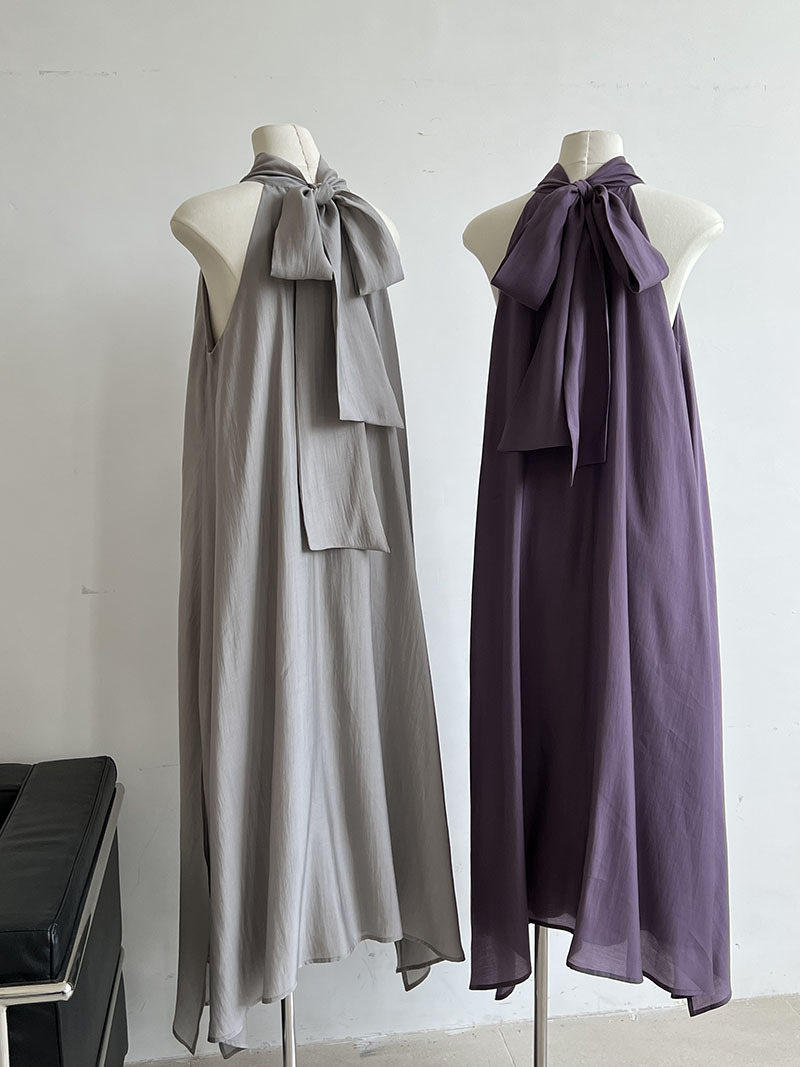 【ワンピース】夏新作 フレンチシック テンセルリボン ノースリーブワンピース|高級感×リゾートムード漂う一枚【SNシリーズ】